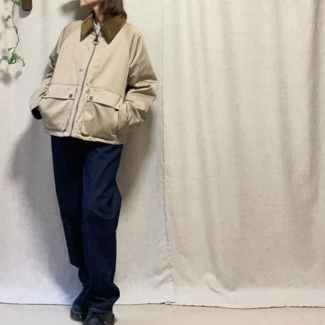 季節の変わり目に活躍する、軽やかでスタイリッシュなジャケット。 どんなコーディネートにも自然に馴染むデザインで、デイリーに取り入れやすいアイテムです。 中綿入りでほどよい暖かさをキープしつつ、バブアーらしいコーデュロイの襟と、内側にはタータンチェックのキルティングライニングを施して、上品さとクラシックなムードをプラス。 羽織るだけでこなれ感のあるスタイルが完成する、秋口から春先まで長く使える万能ジャケットです。 ●素材 表地:ポリエステル 65% 綿 35% 裏地:ポリエステル 100% 衿部分:綿 100% 詰物:ポリエステル 100% ●カラー BEIGE ●サイズ 10(L) 身幅58㎝ 着丈58㎝ 裄丈73㎝