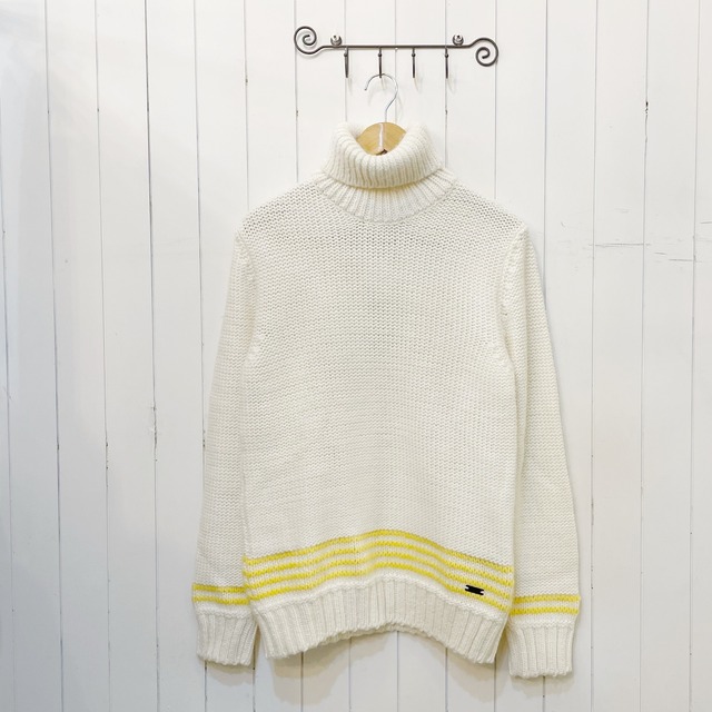 裾に二本のラインがオシャレなイタリアンタートルニット。 上品な柔らかい大人のテイストに仕上がっています。 ブルゾンなどカジュアルなアイテムからコートなどきれいめカジュアルのスタイルまでどんなスタイリングにもハマってくれる使いやすい一枚。 タートルで暖か! ●素材 アクリル70% ウール30% ●サイズ M SSEINSE/センス 2012年に生み出された新鋭のイタリアブランド。 魅力的なデザイン、ディテールのこだわり、新しい生地感、がこのブランドの強みところになっています。 若いターゲット層だけではなく、大人の男性にも支持されています。