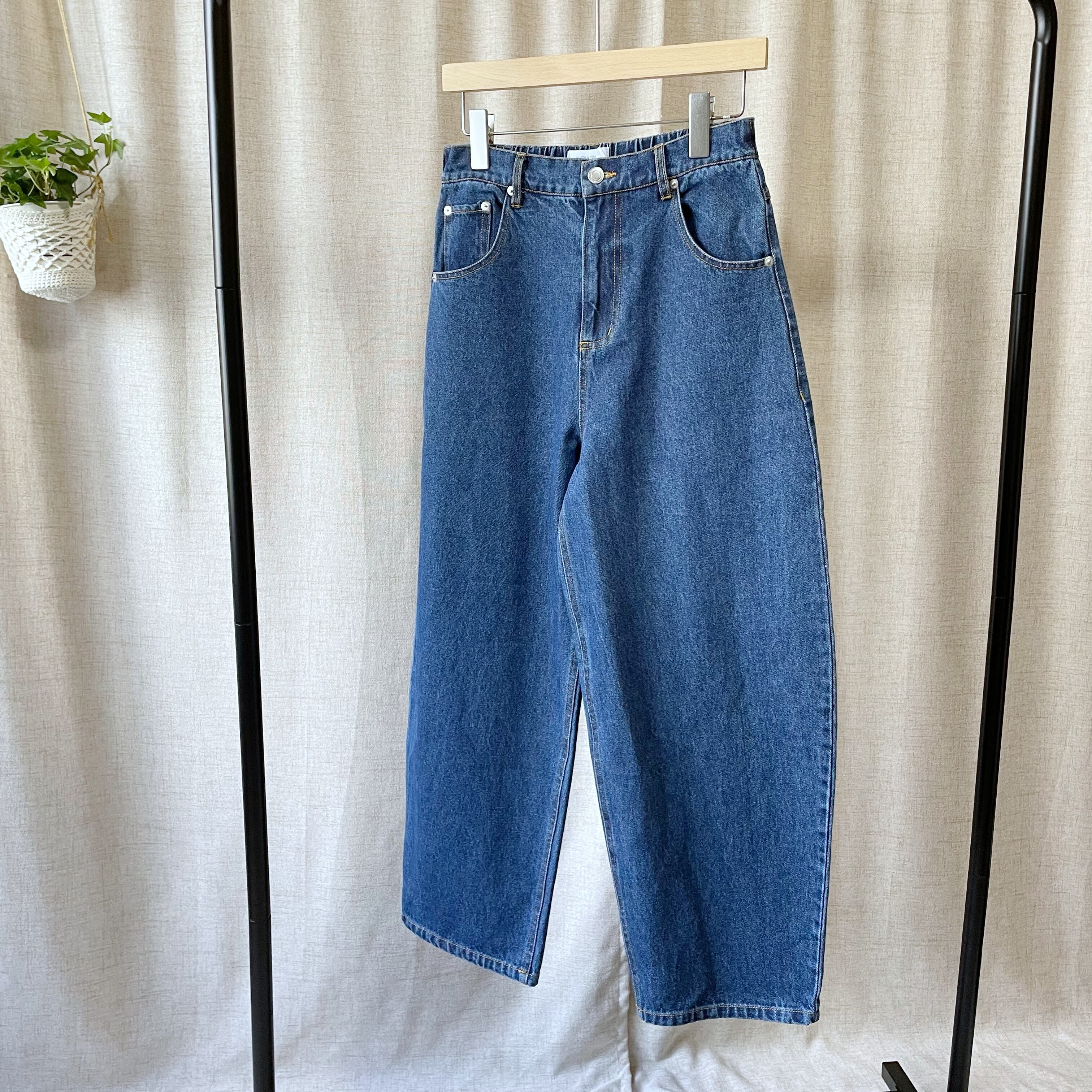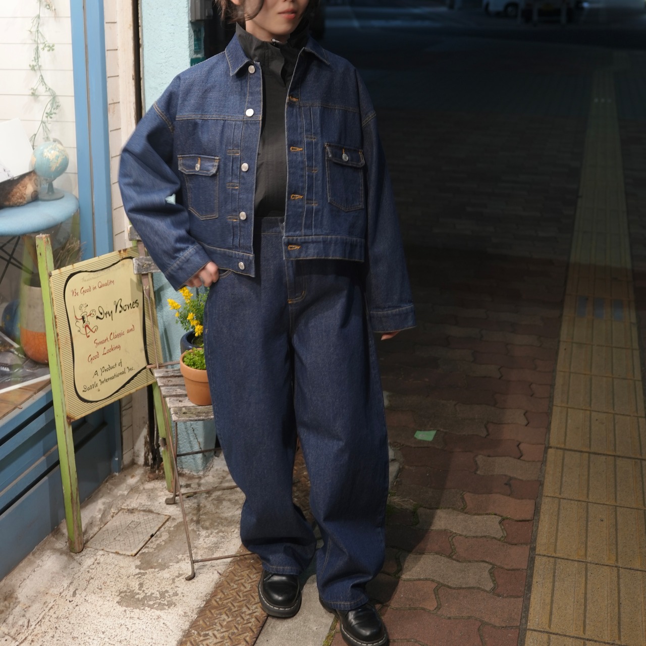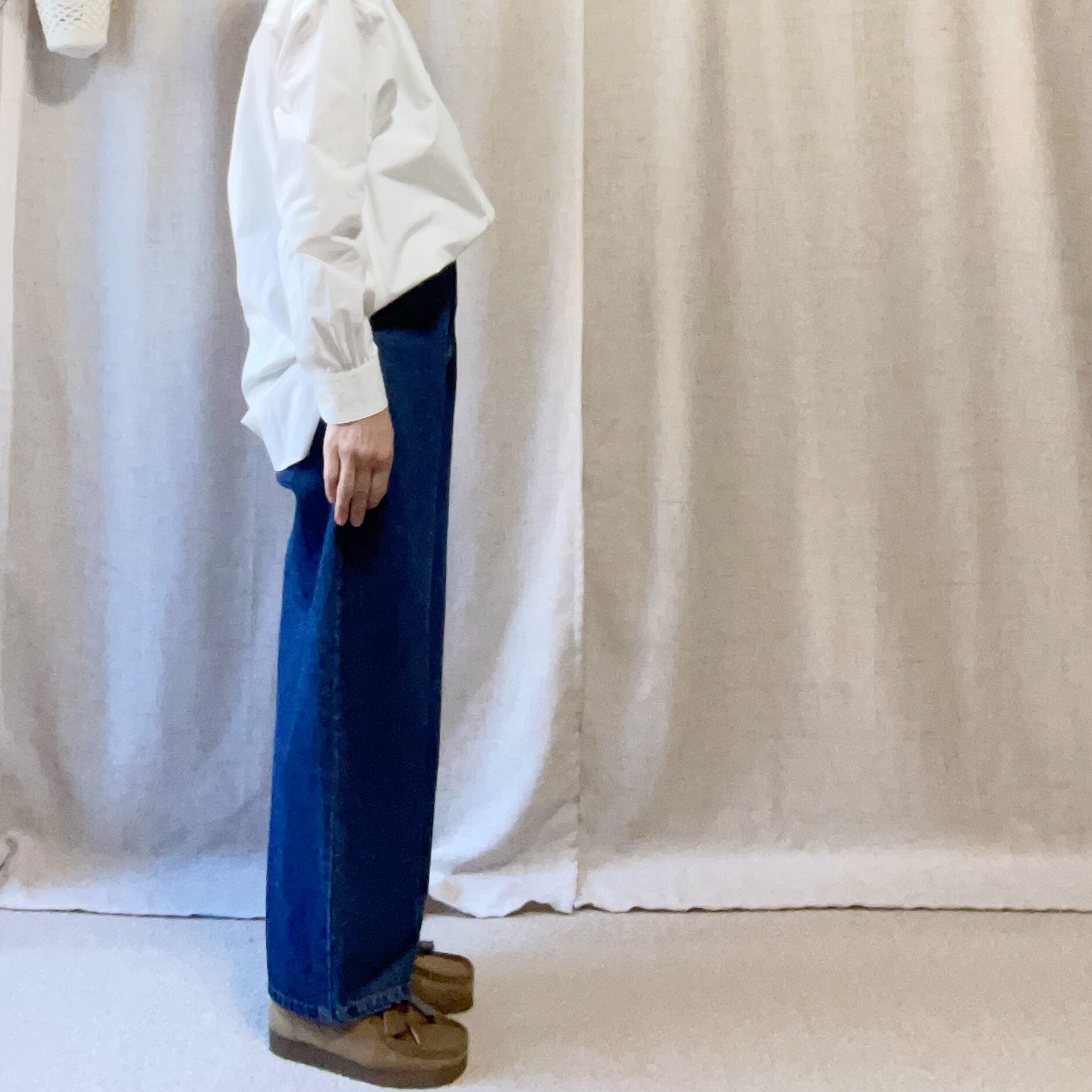 肉厚デニムを使用したAUG デニムカーブパンツ。