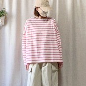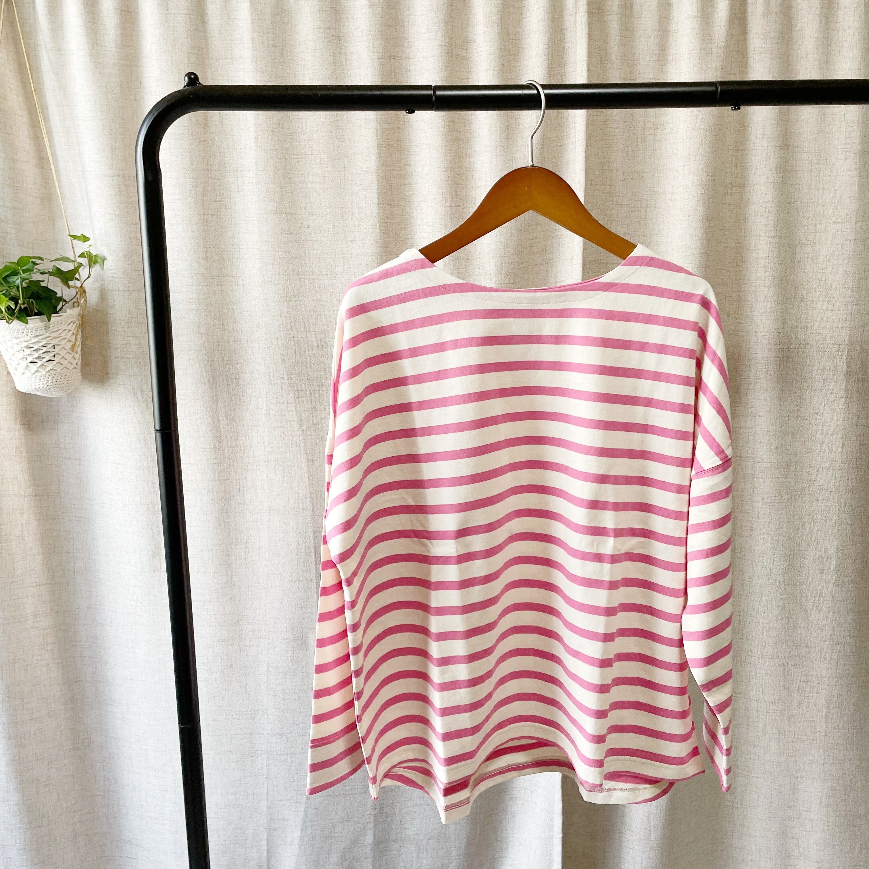 春の訪れを感じるボーダーデザインのダブルカフスロンT。