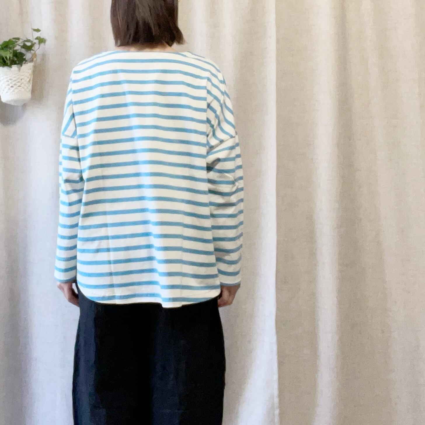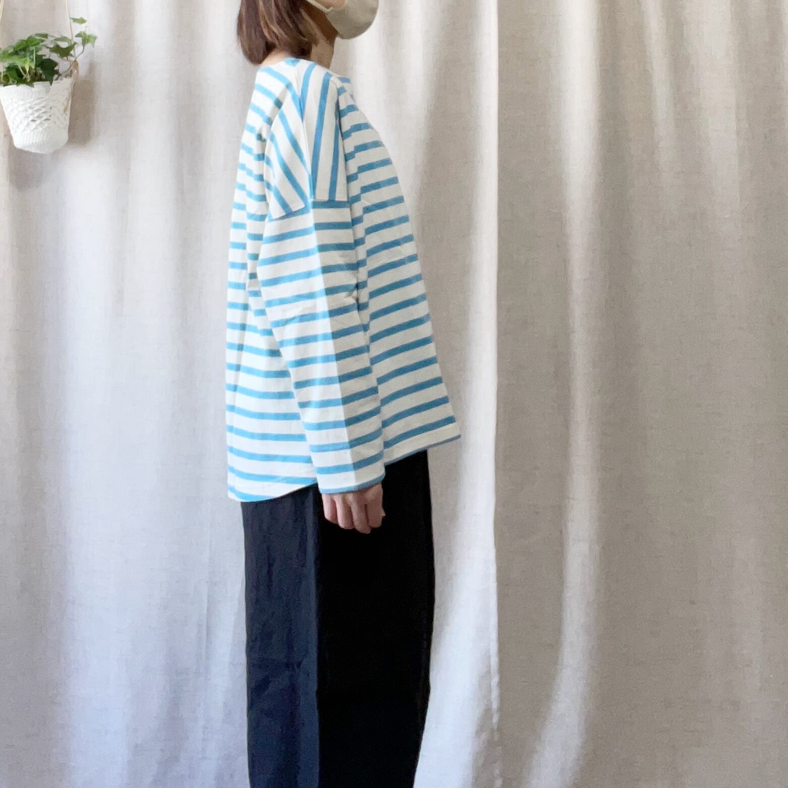 16番手の空紡糸を使ったボーダー生地。厚すぎず、薄すぎない程よい肉感。