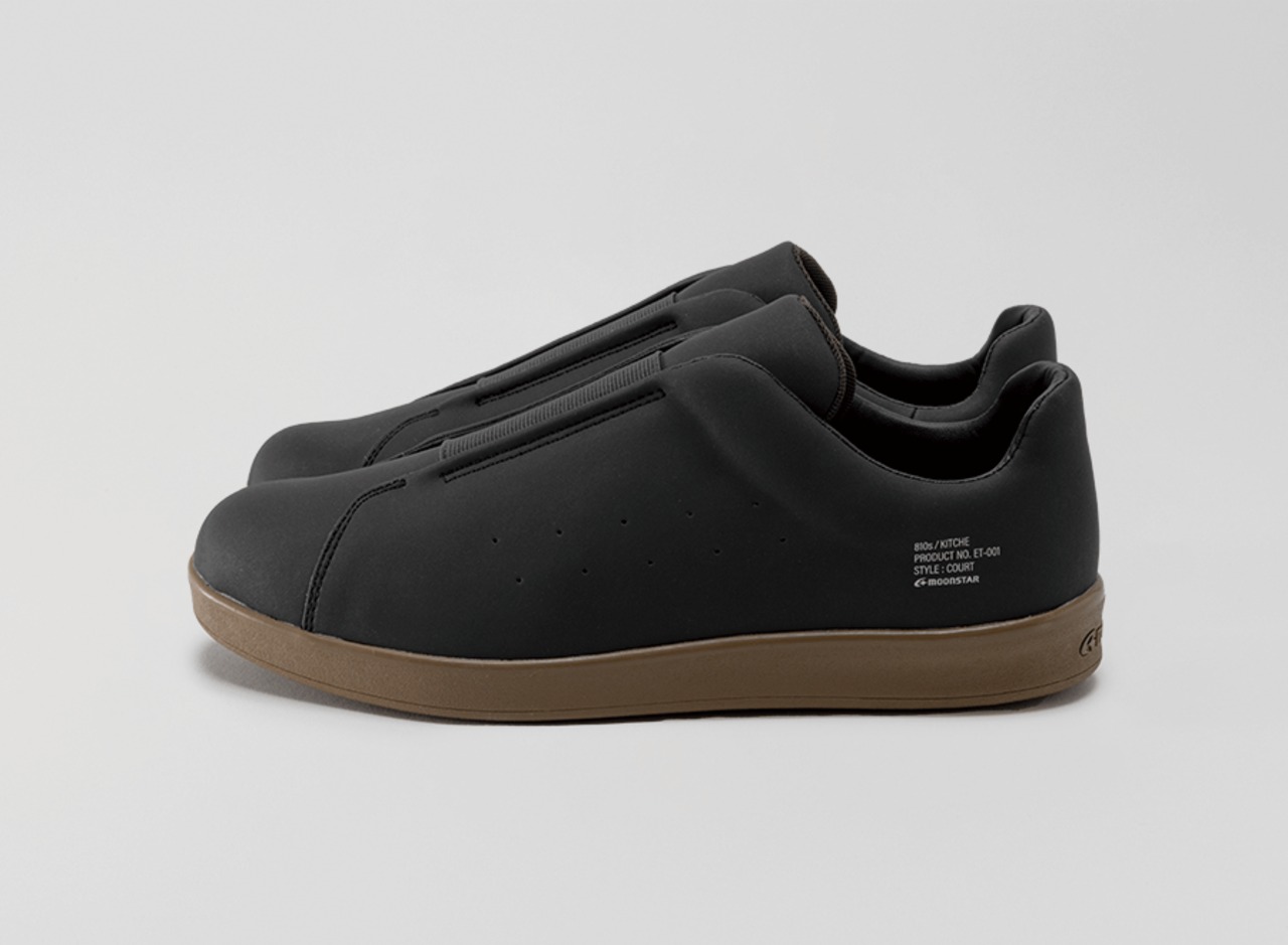 KITCHEのルーツモデル「KITCHENSTAR 01」は、ロングセラーの食品・厨房シューズ。水や油で濡れた場所でも滑りにくいように、床面に吸い付くマルチストッパーソールを搭載。アッパーには丈夫で耐油性に優れた合成皮革を使用。