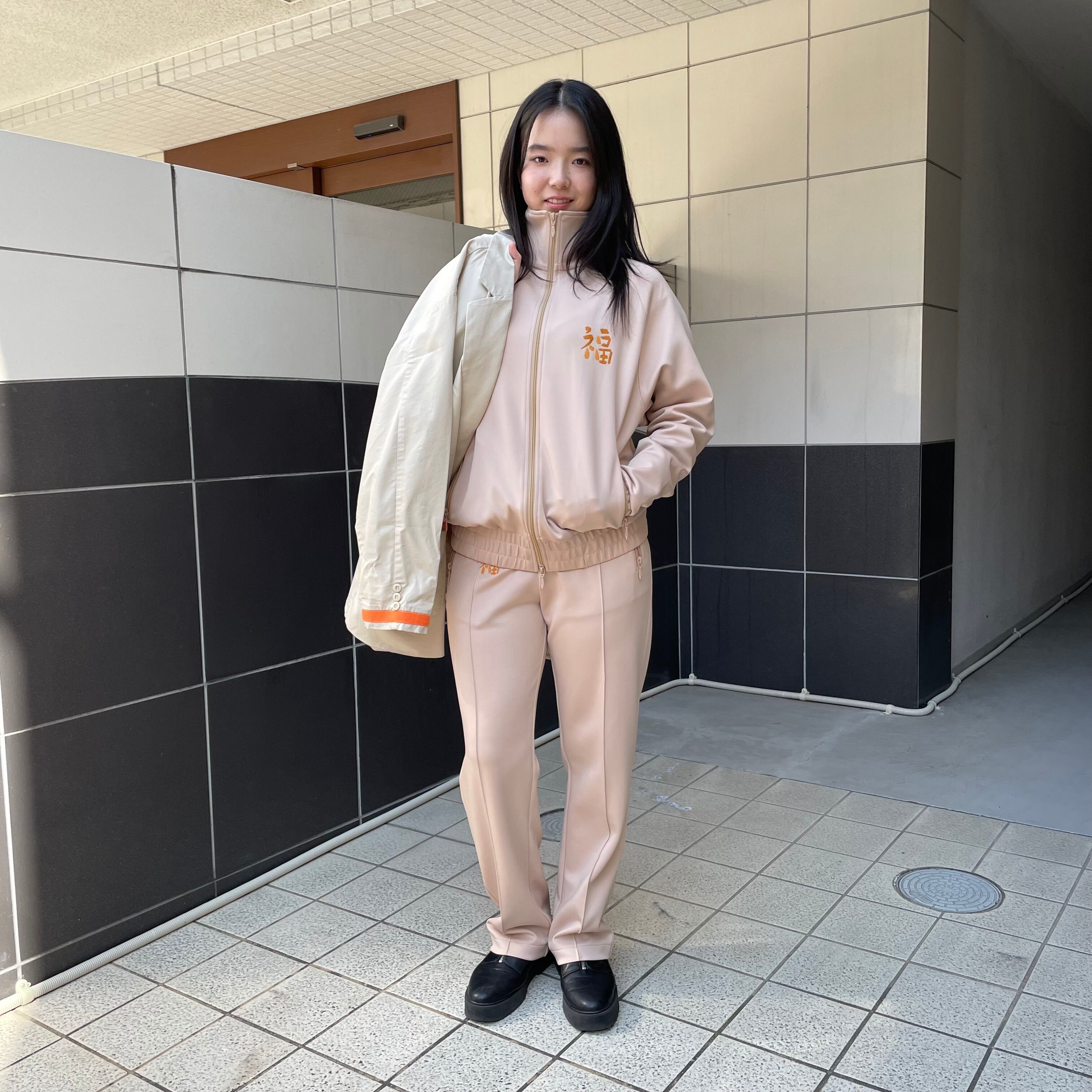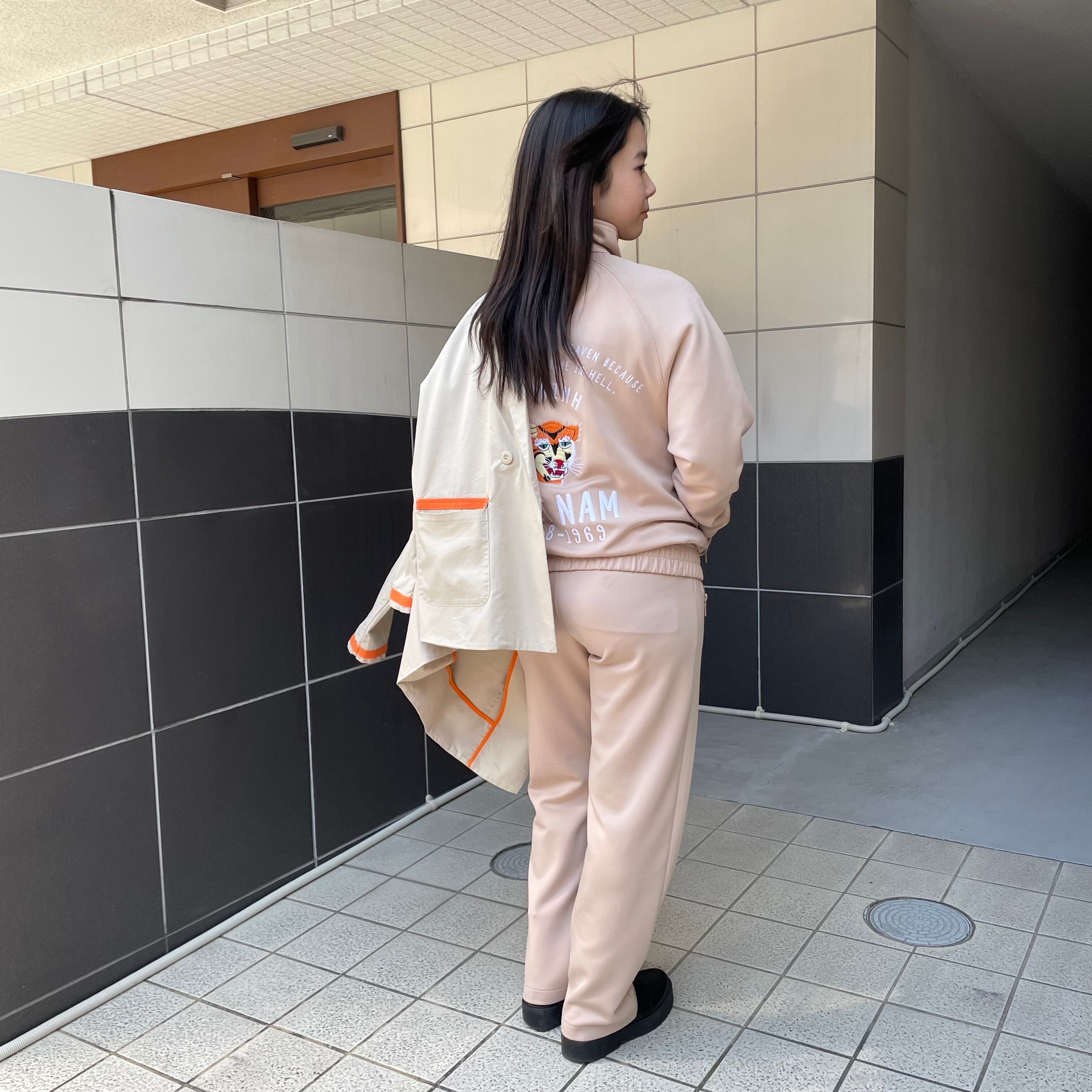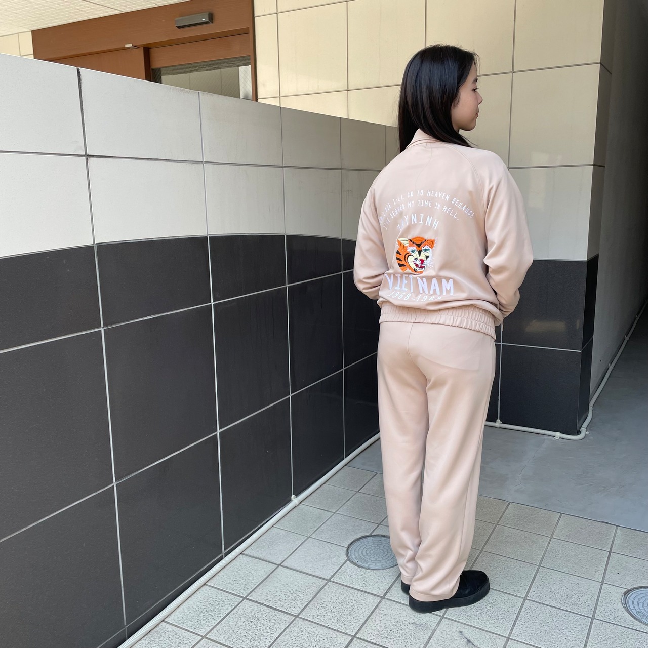 スーベニアジャケットでよく見られるトラの刺繍を前身に刺繍したインパクト大のジャージです。細身でスッキリとしたシルエットなので、野暮ったくならずスタイリッシュなトラックジャージです。