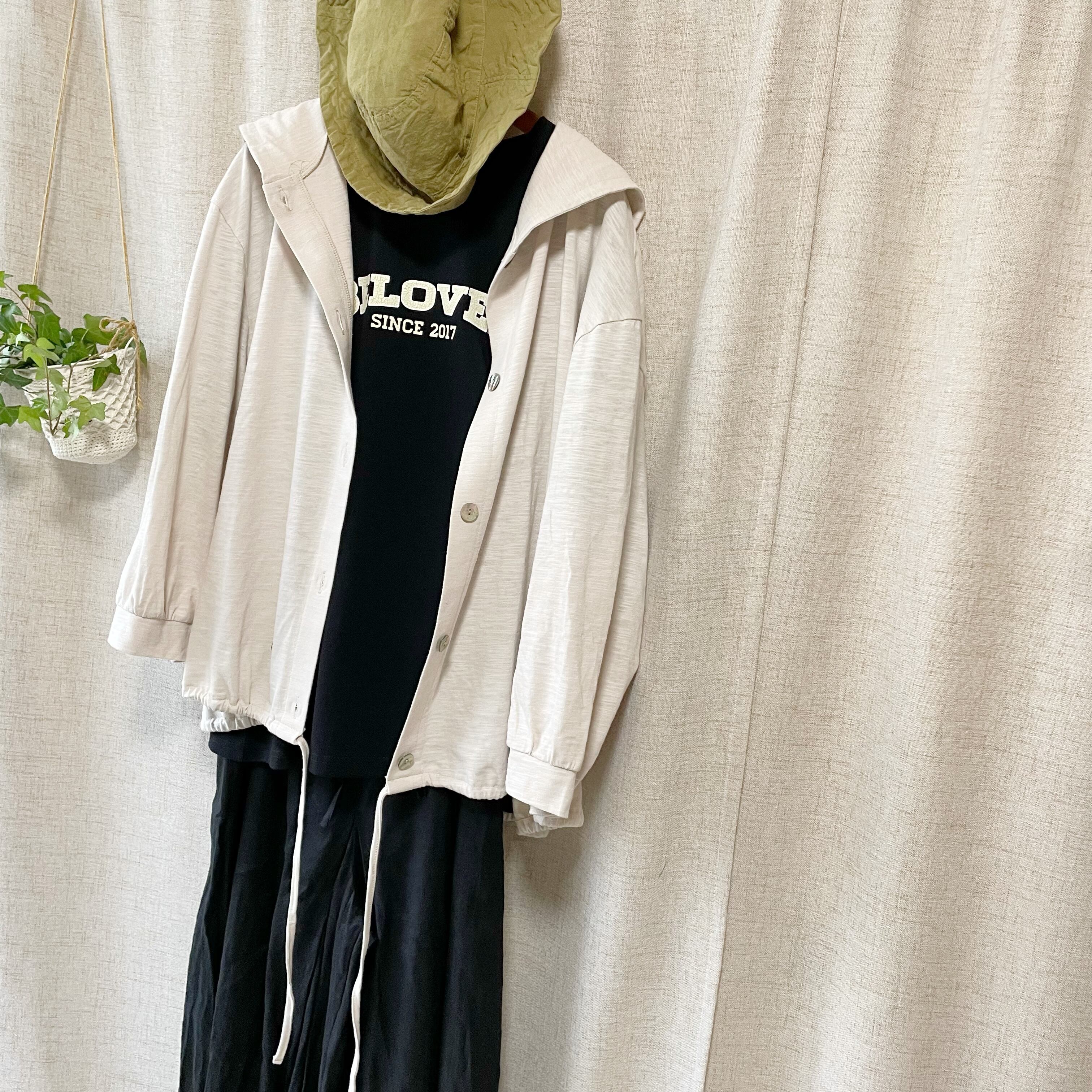 ボタンタイプの前開きデザインで、カジュアルでありながらもスタイリッシュな印象を与え、デイリーからお出かけまで幅広く活躍します。日差しの強い日や冷房の効いた室内でも安心して着用できるアイテムです。