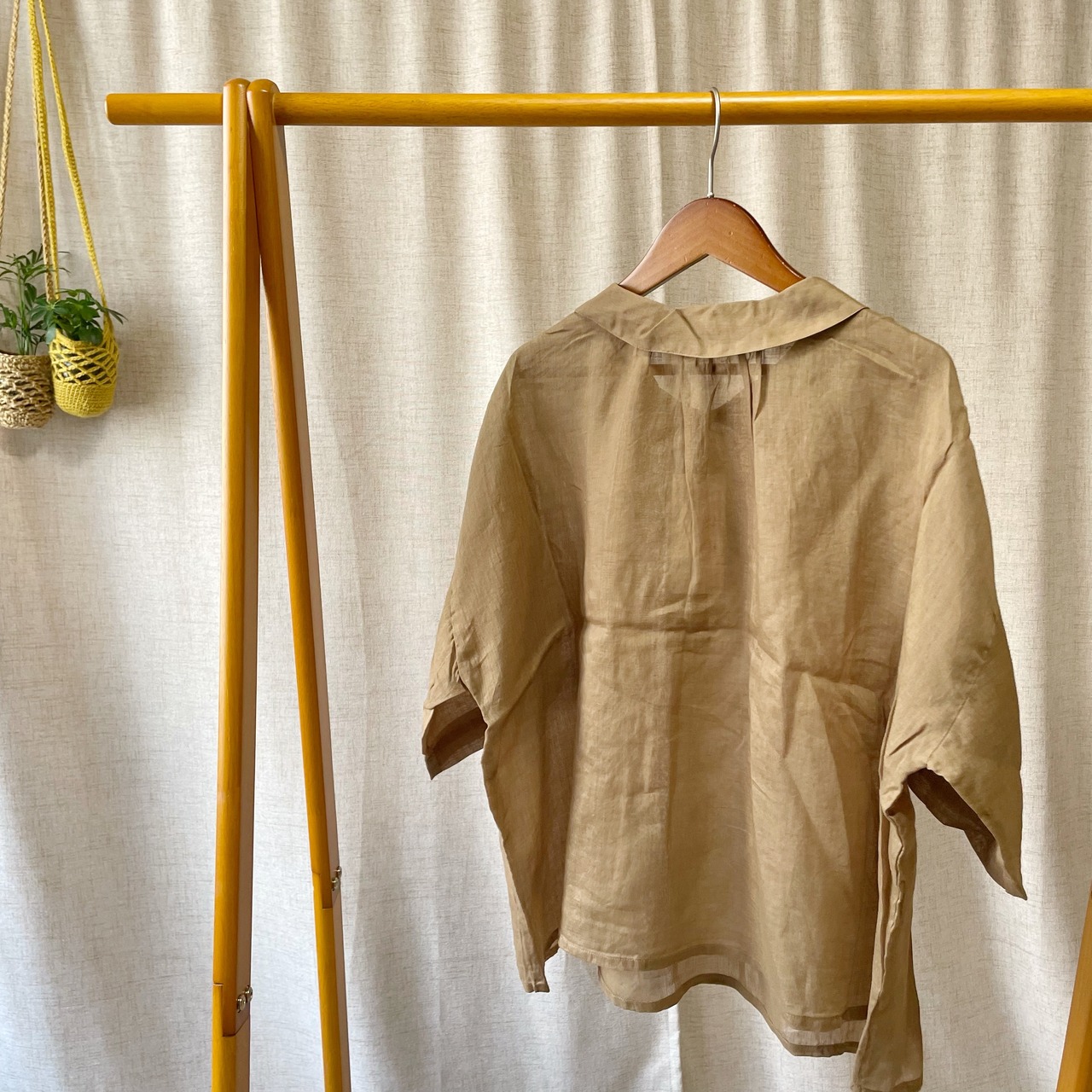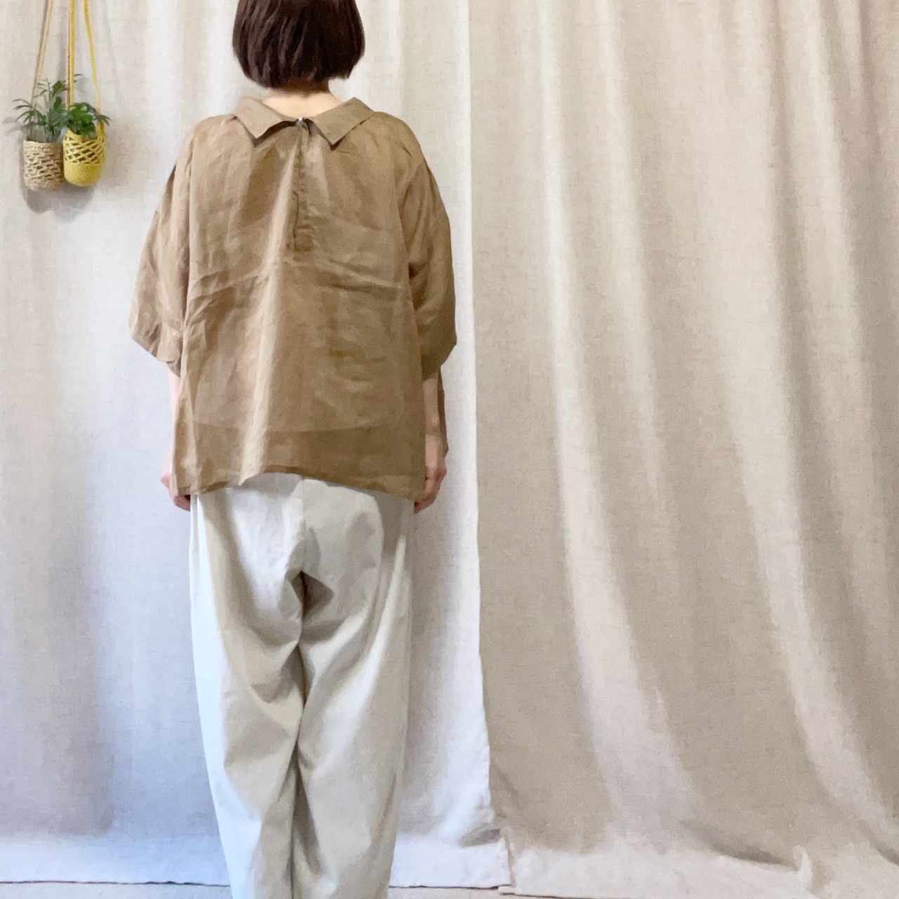 ラミー素材は通気性に優れ、これからの季節にぴったりの一枚です。透け感のある生地が、軽やかさを演出しつつ、上品なスタイルにもマッチします。前後2WAYタイプで、気分やスタイルに合わせてお楽しみいただけるのも魅力です。七分袖デザインは、春から秋にかけての幅広いシーズンで活躍します。