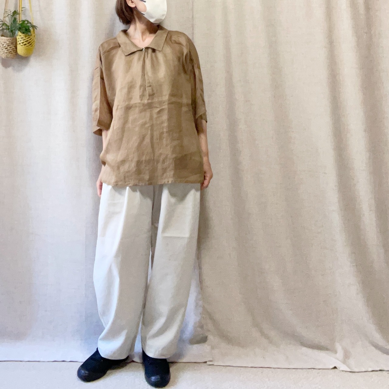 ふんわりとしたサラッとした肌触りの60/1ラミーギャザースモック。