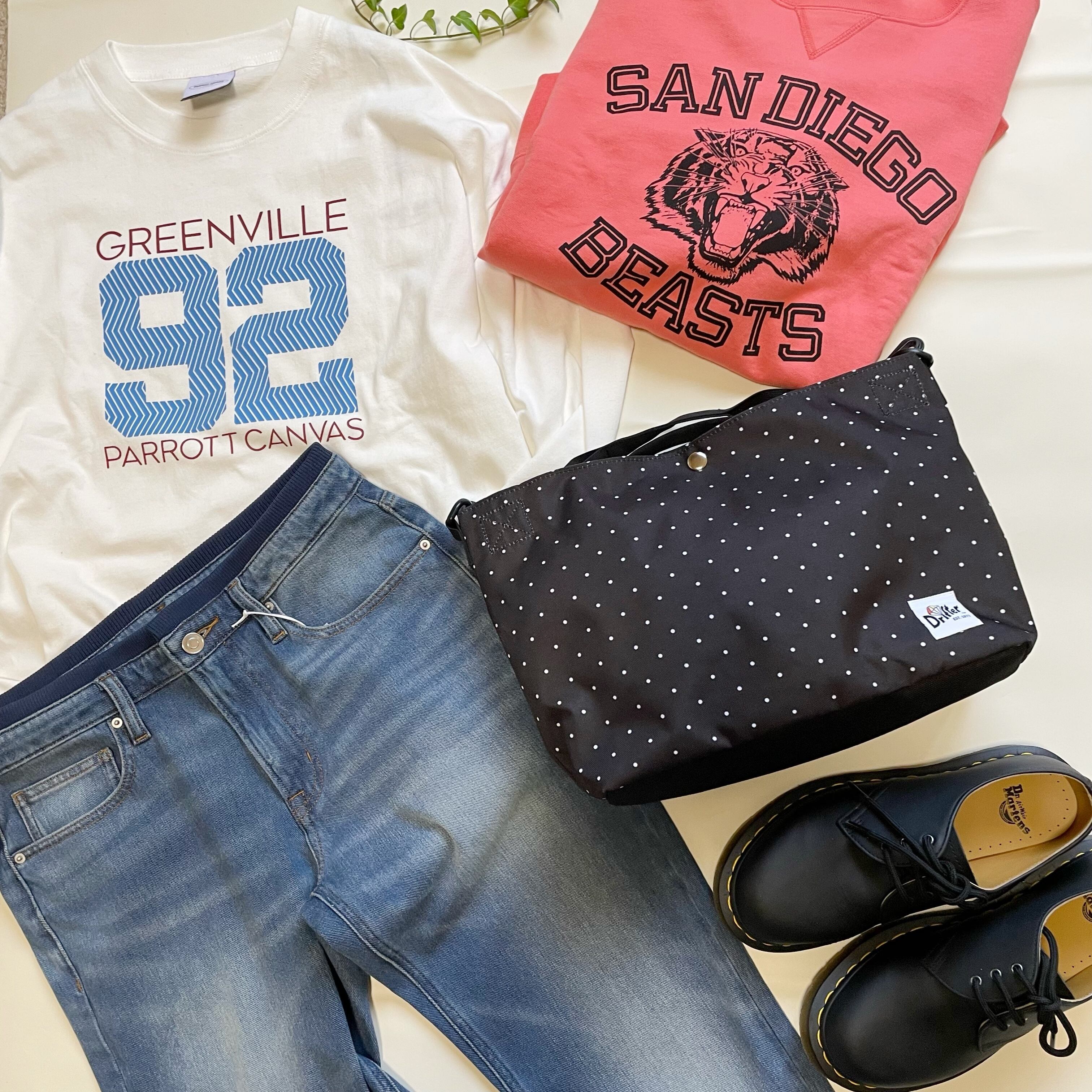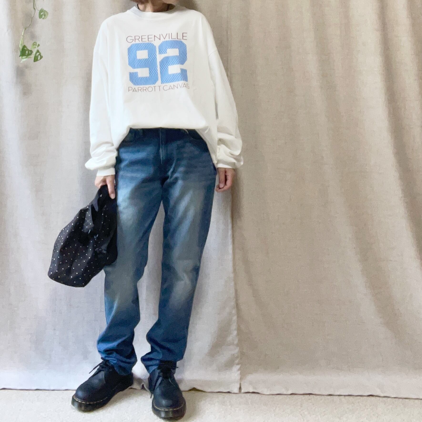 長めの着丈なので、デニムやカーゴパンツと相性よいです。