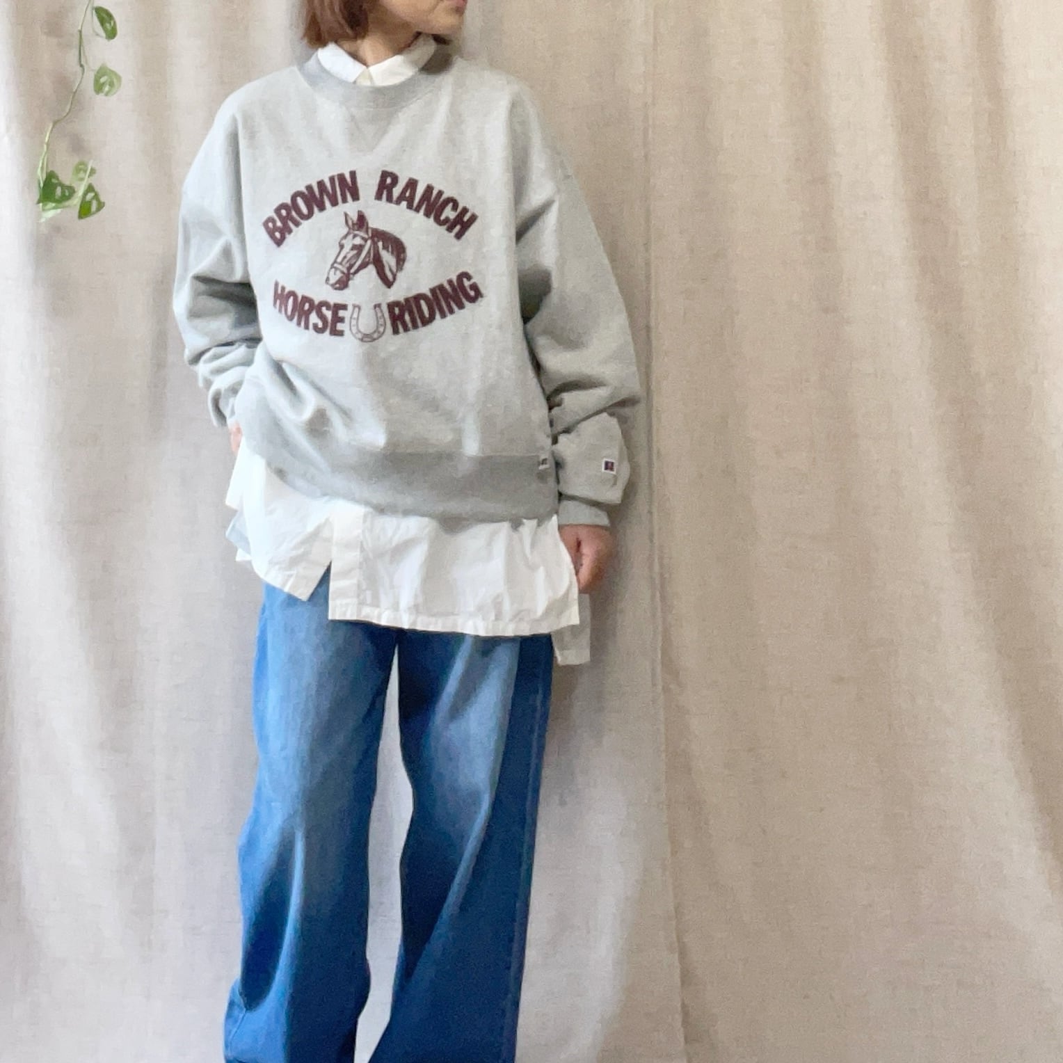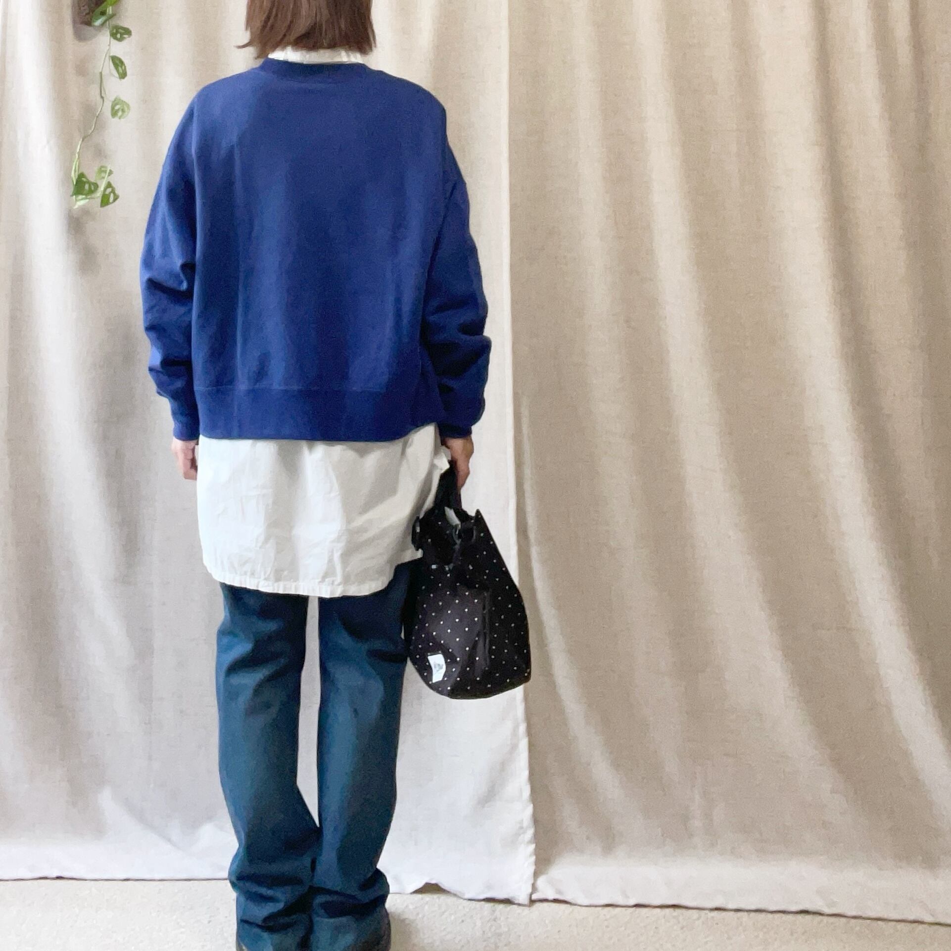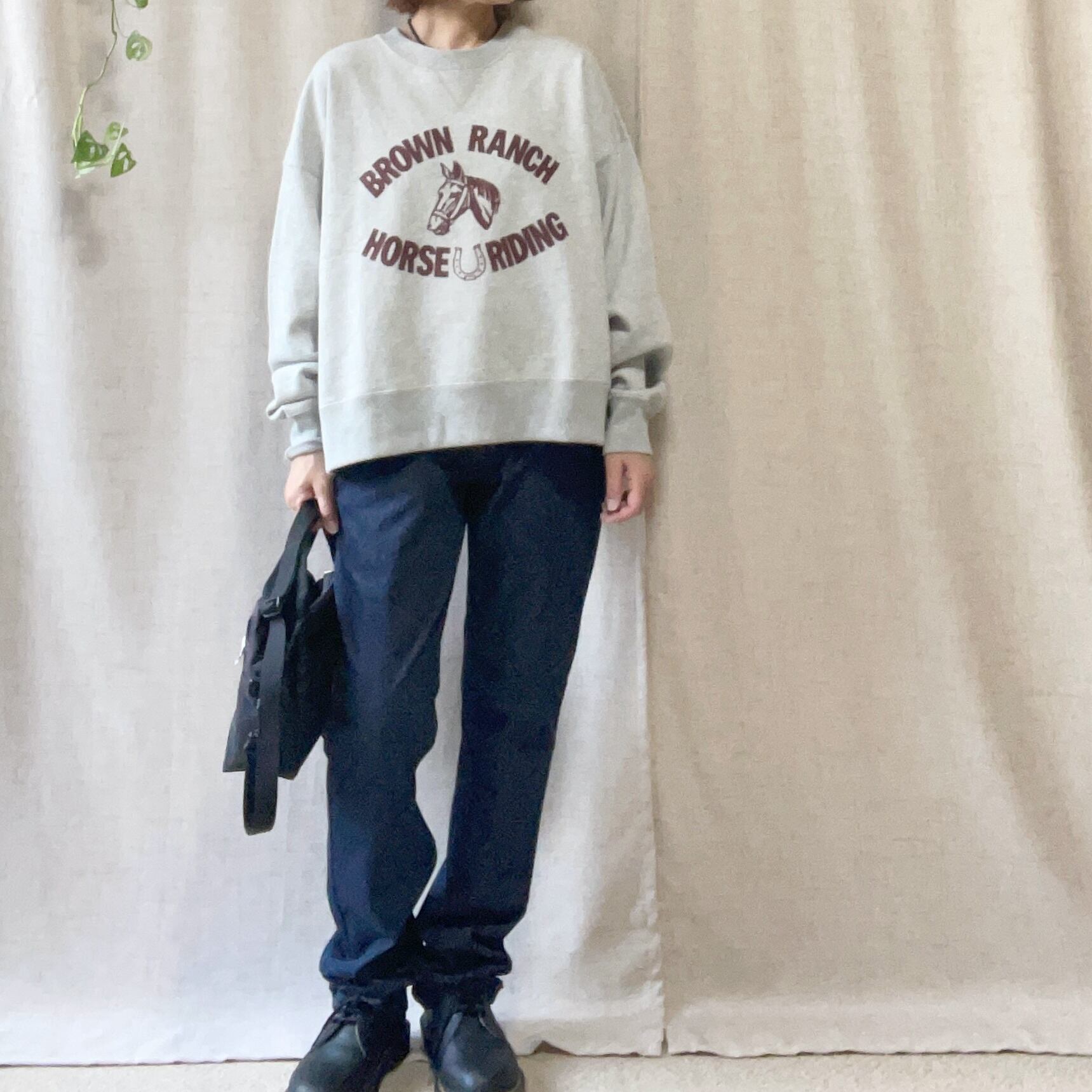 起毛素材の心地よさと、ゆったりとしたサイズ感が魅力。重ね着しやすく、シーズンを問わず様々なコーディネートに活躍します。古着のような渋さを持ち合わせ、スカートとの相性も抜群な着丈が嬉しいポイントです。