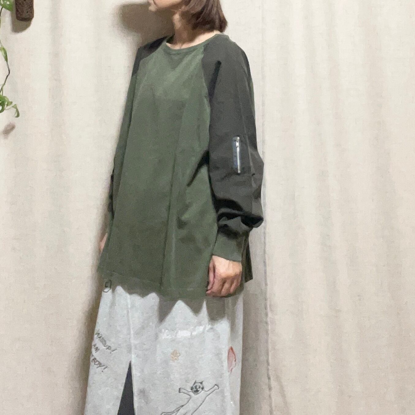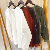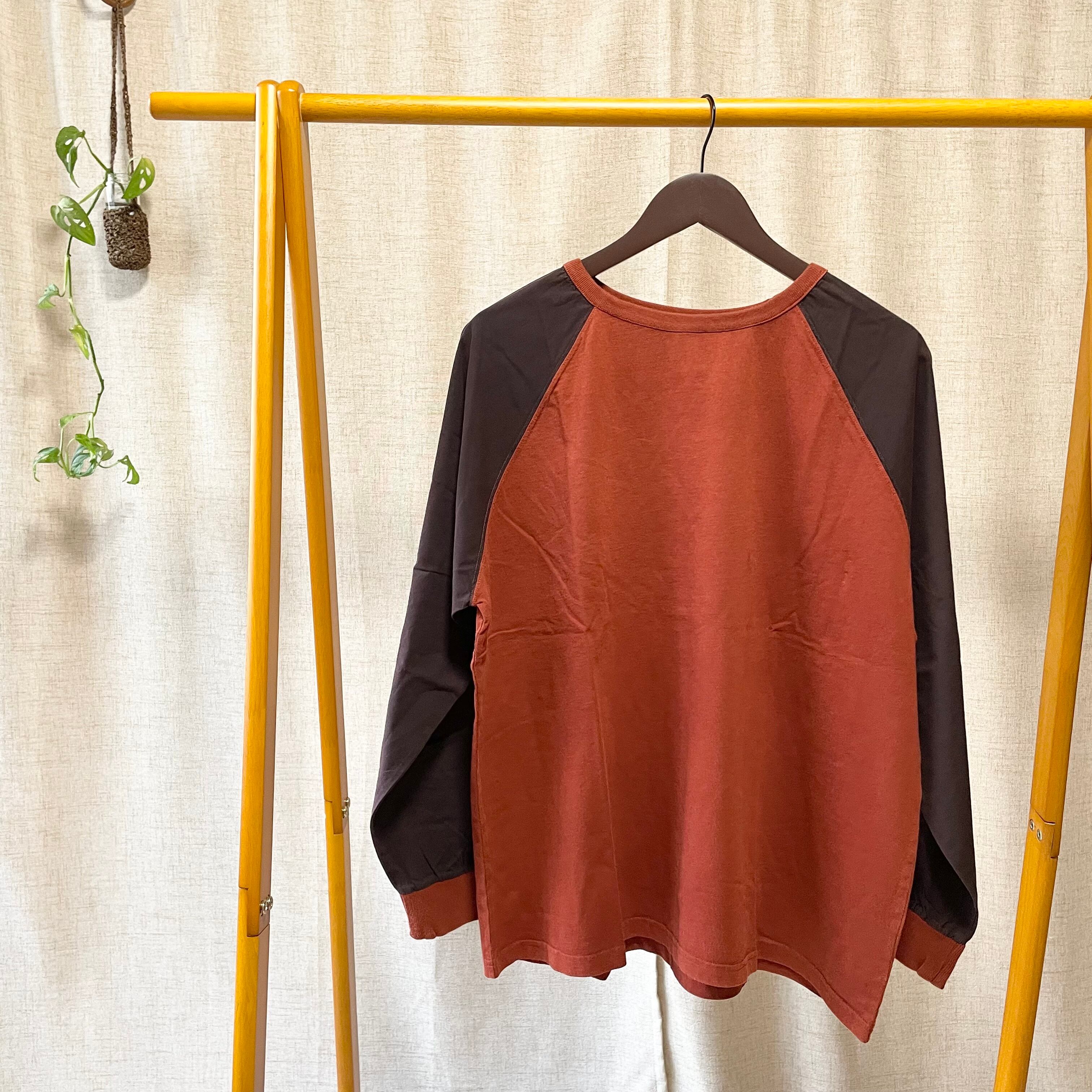 袖部分で切り替えたラグランデザインでシンプルながらも存在感のあるロンT。