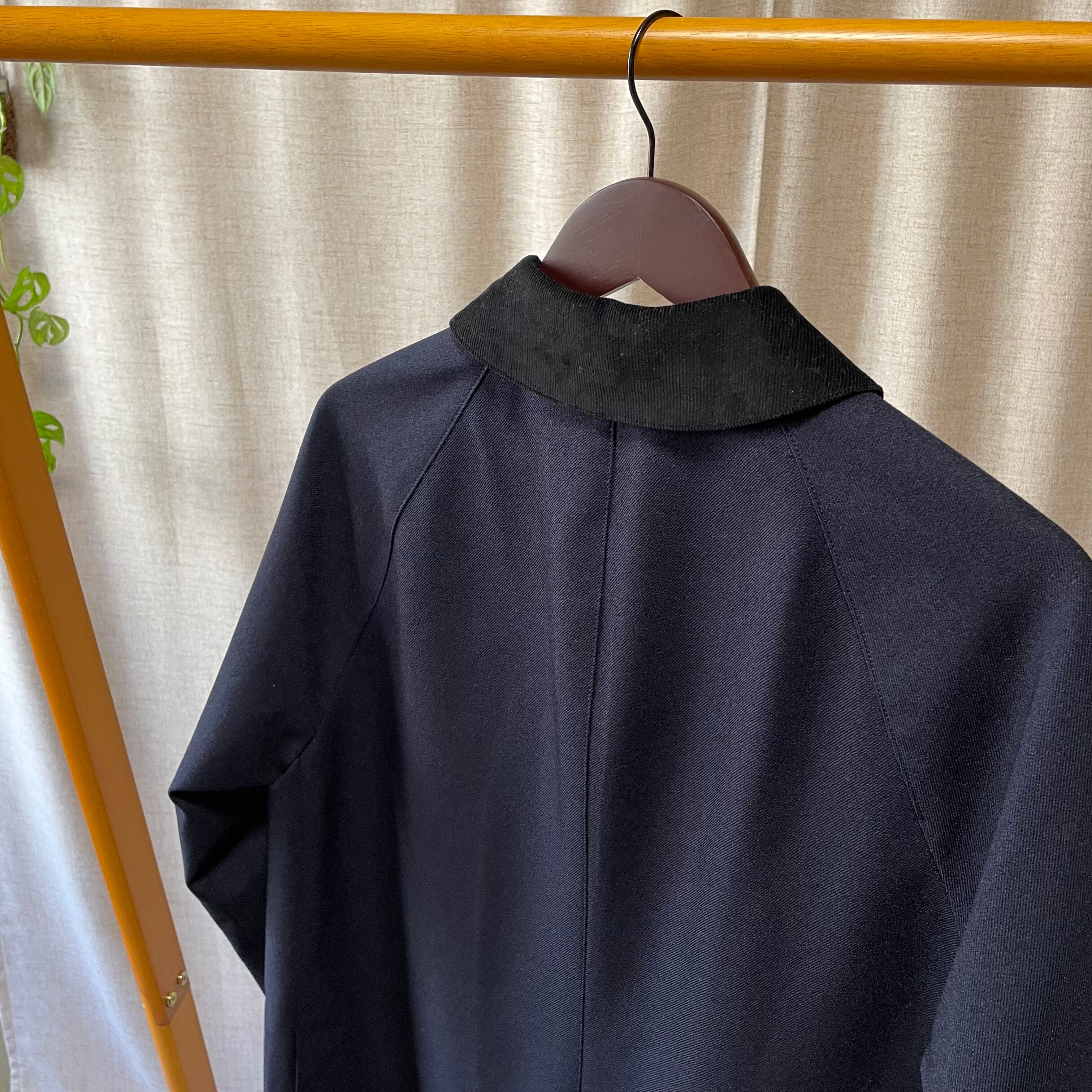 英国のオーセンティックなハンティングコートをモダンファブリックで仕立てたコート。コーデュロイ衿、ラグランスリーブ、オーセンティックなポケットなど、クラシックなデザインがブリティッシュテイストたっぷりのコートです。