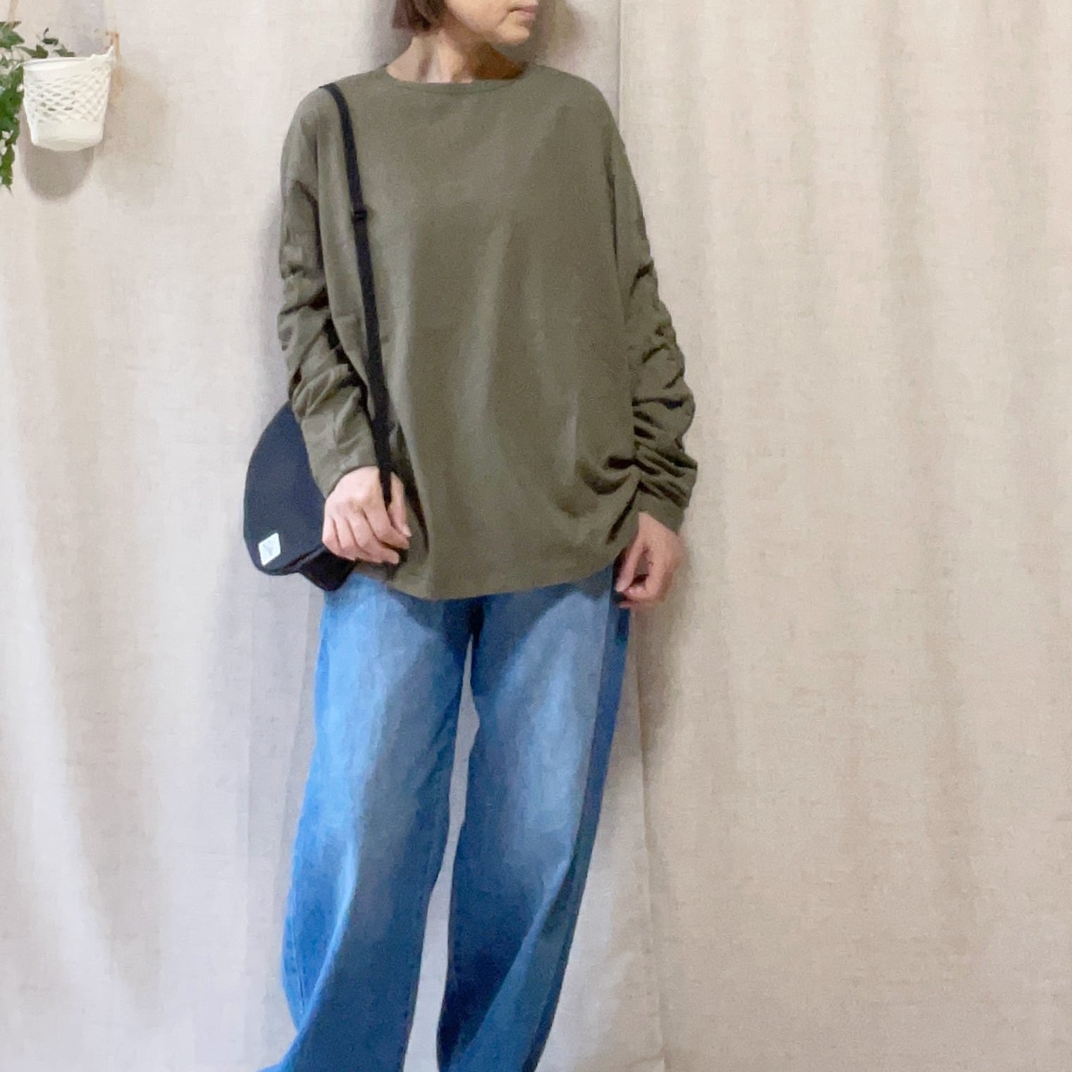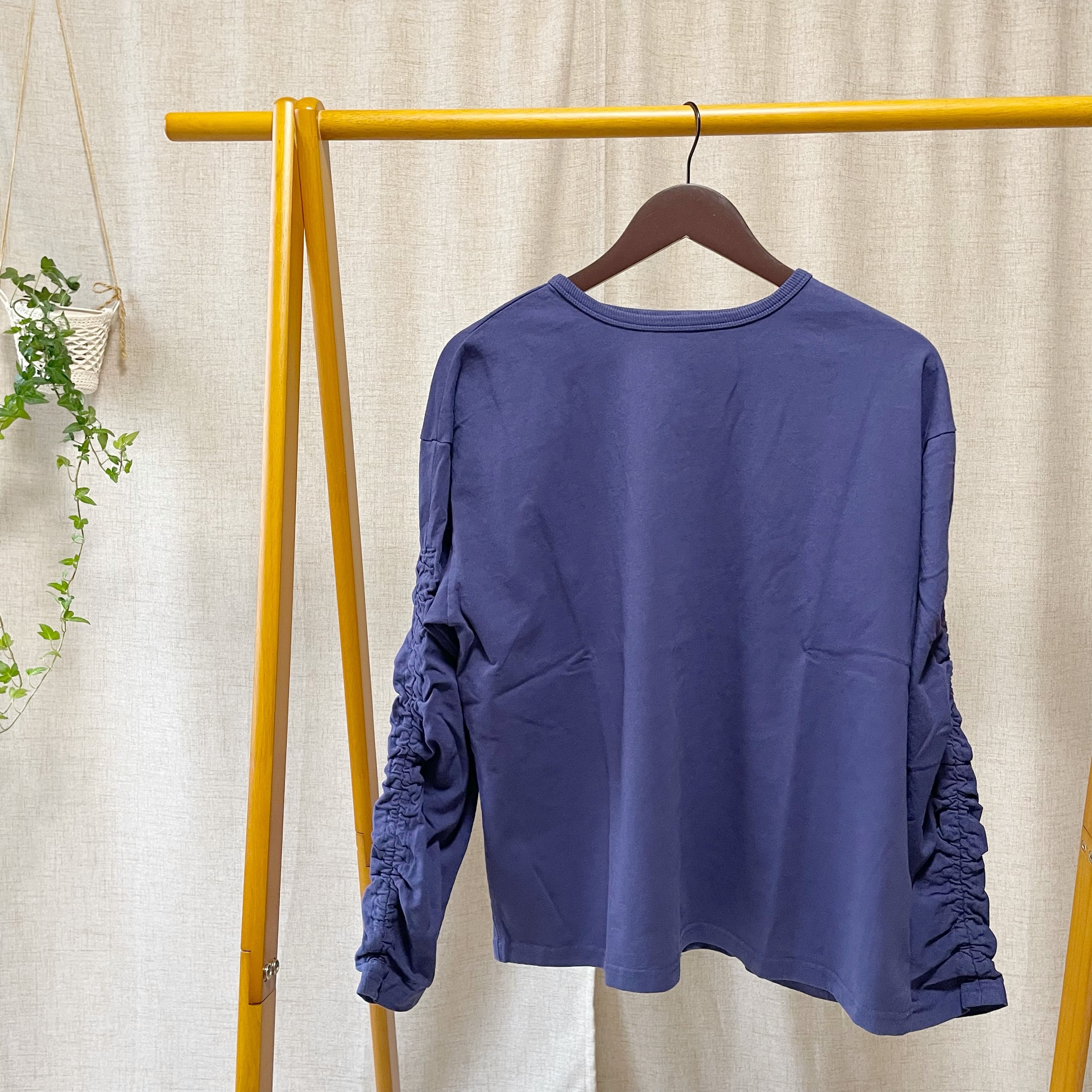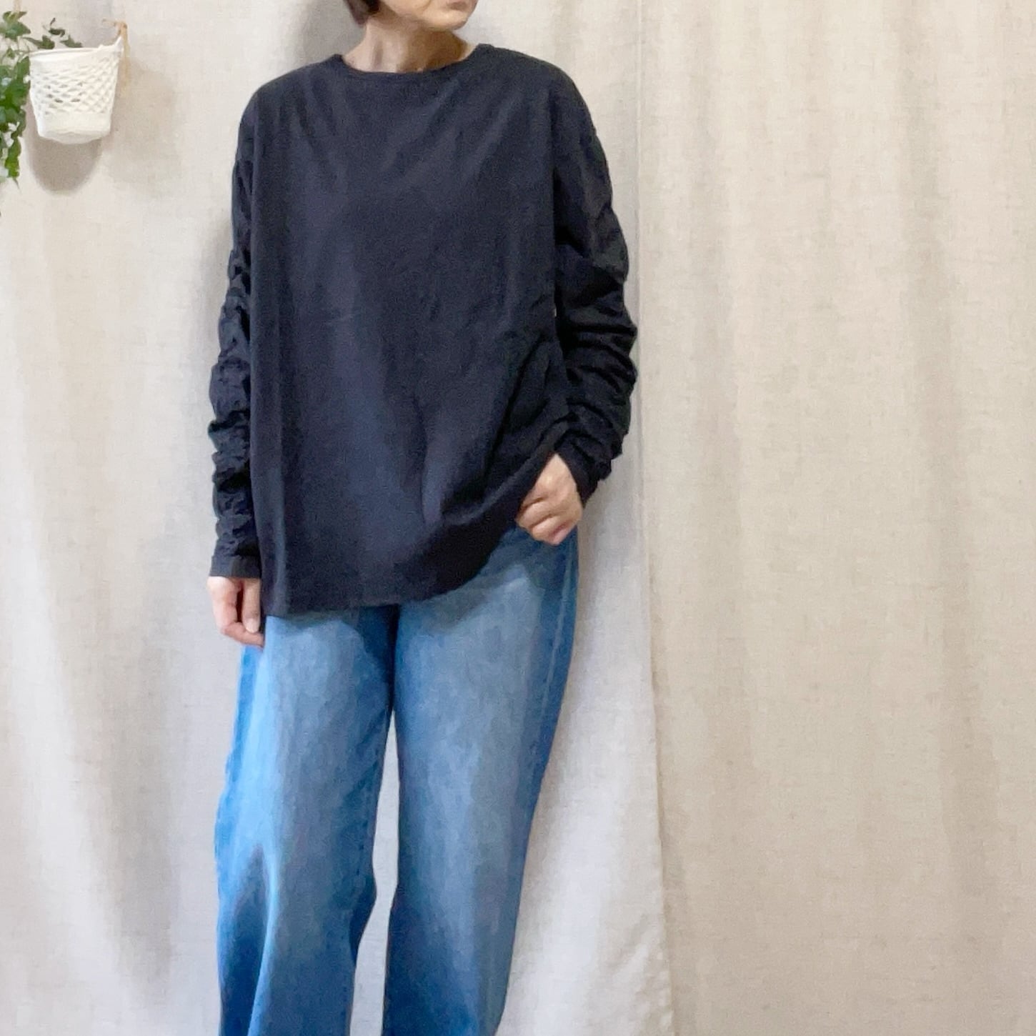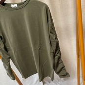 女性らしさを引き立てるシャーリングスリーブロンT。