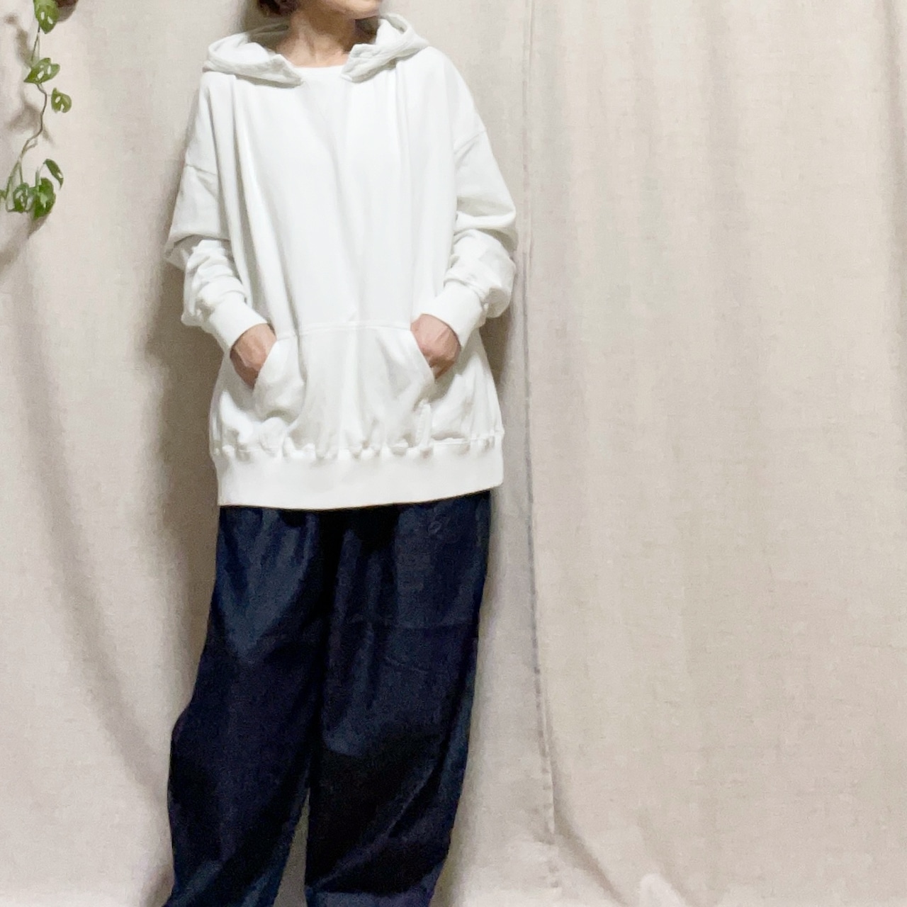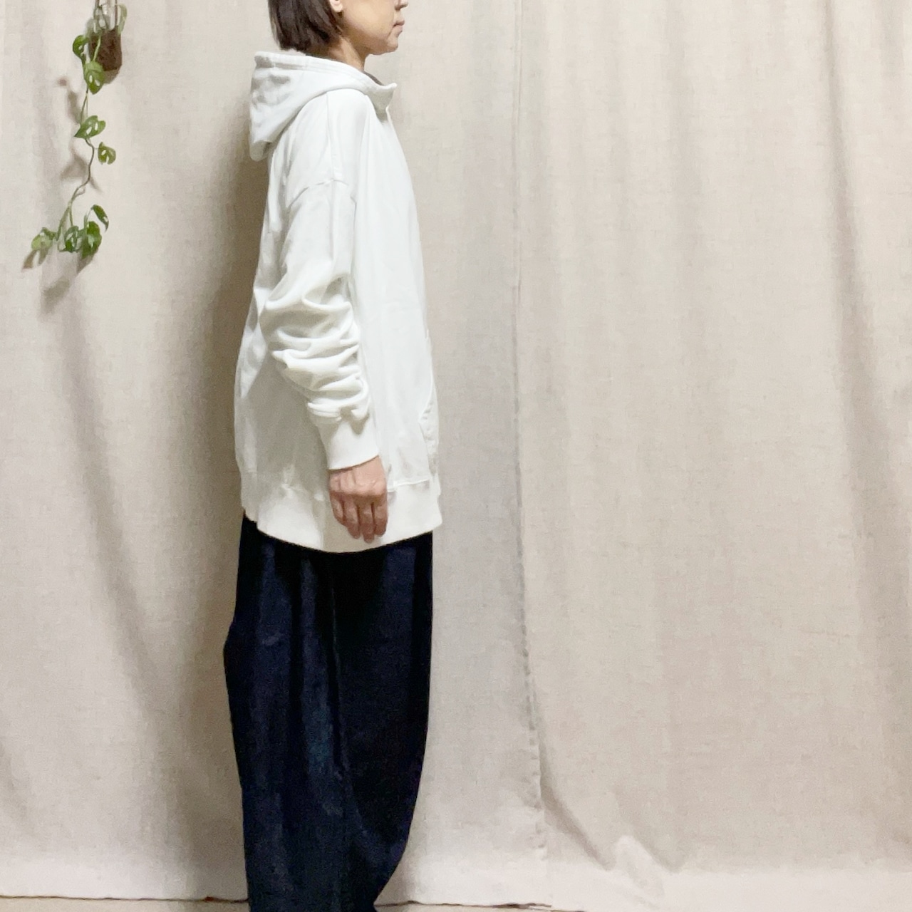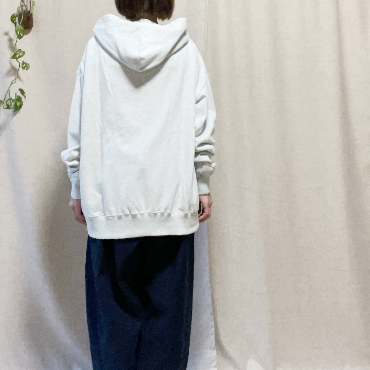 後付けフードと両サイドのリブ使いが特徴的で、スタイリッシュな印象に。裏毛素材を使用しており、軽やかな着心地が一日中続き、カジュアルなコーディネートに最適です。ゆったりとしたサイズ感で、リラックスした時間を楽しむことができます。
