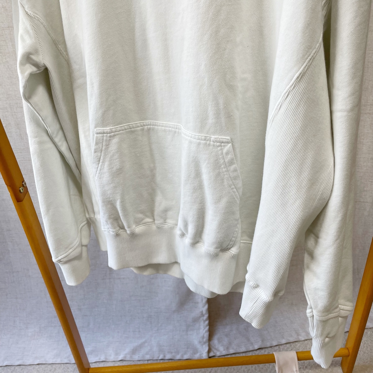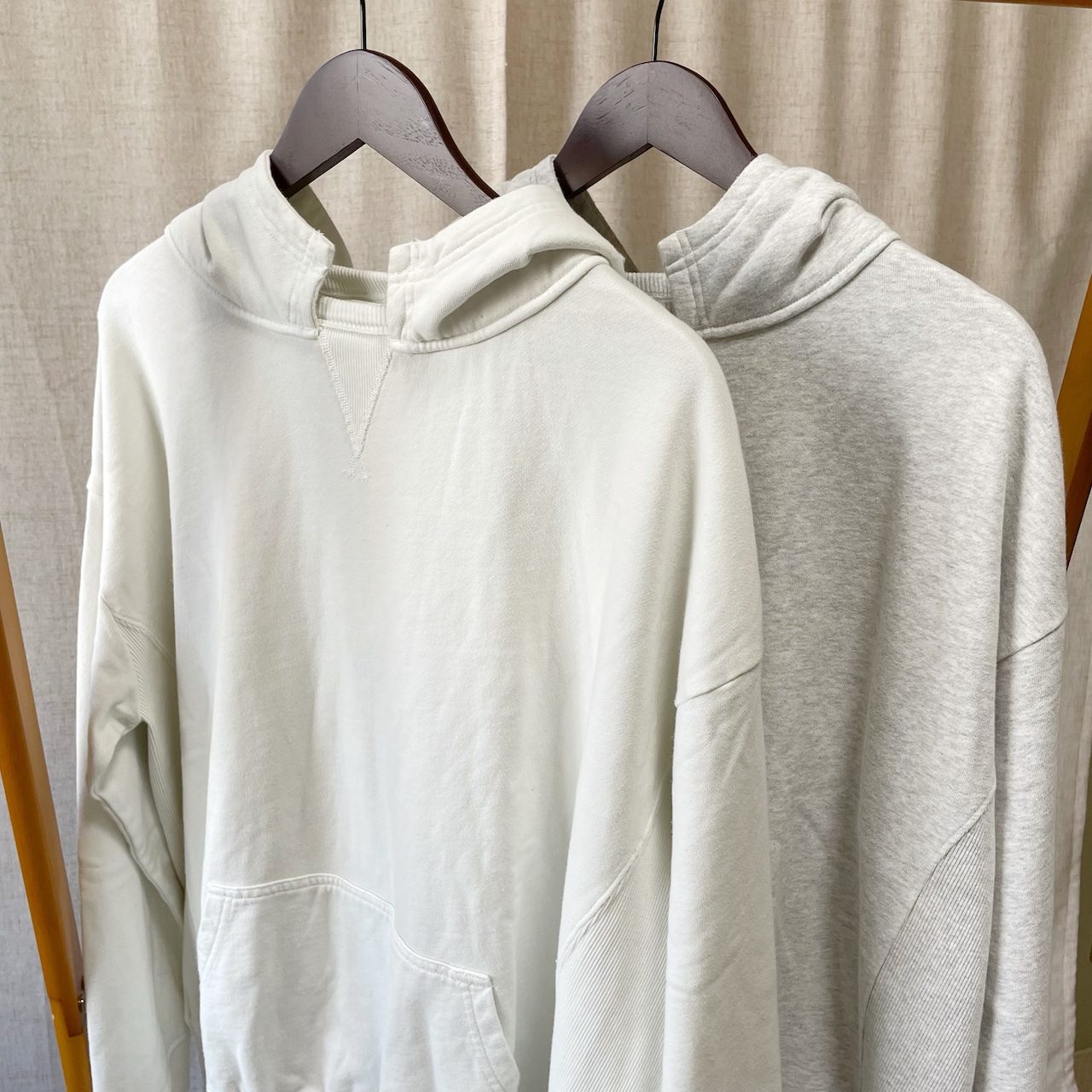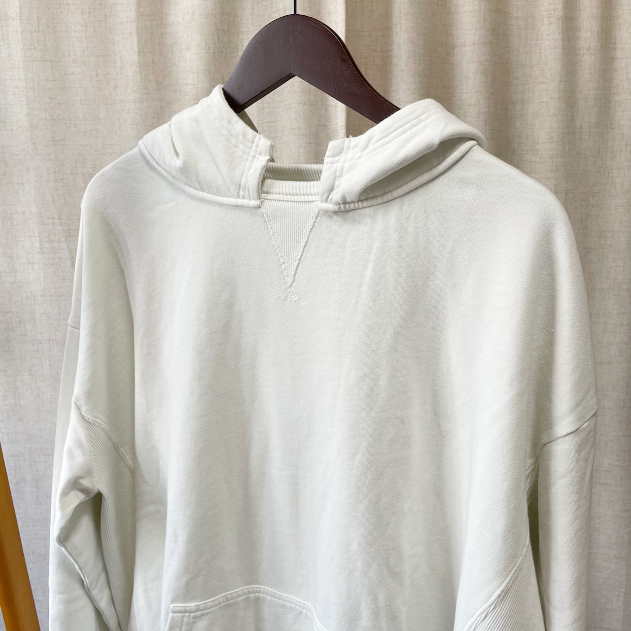 後付けフードと両サイドのリブ使いが特徴的で、スタイリッシュな印象に。裏毛素材を使用しており、軽やかな着心地が一日中続き、カジュアルなコーディネートに最適です。ゆったりとしたサイズ感で、リラックスした時間を楽しむことができます。