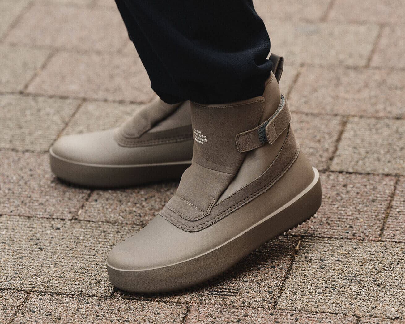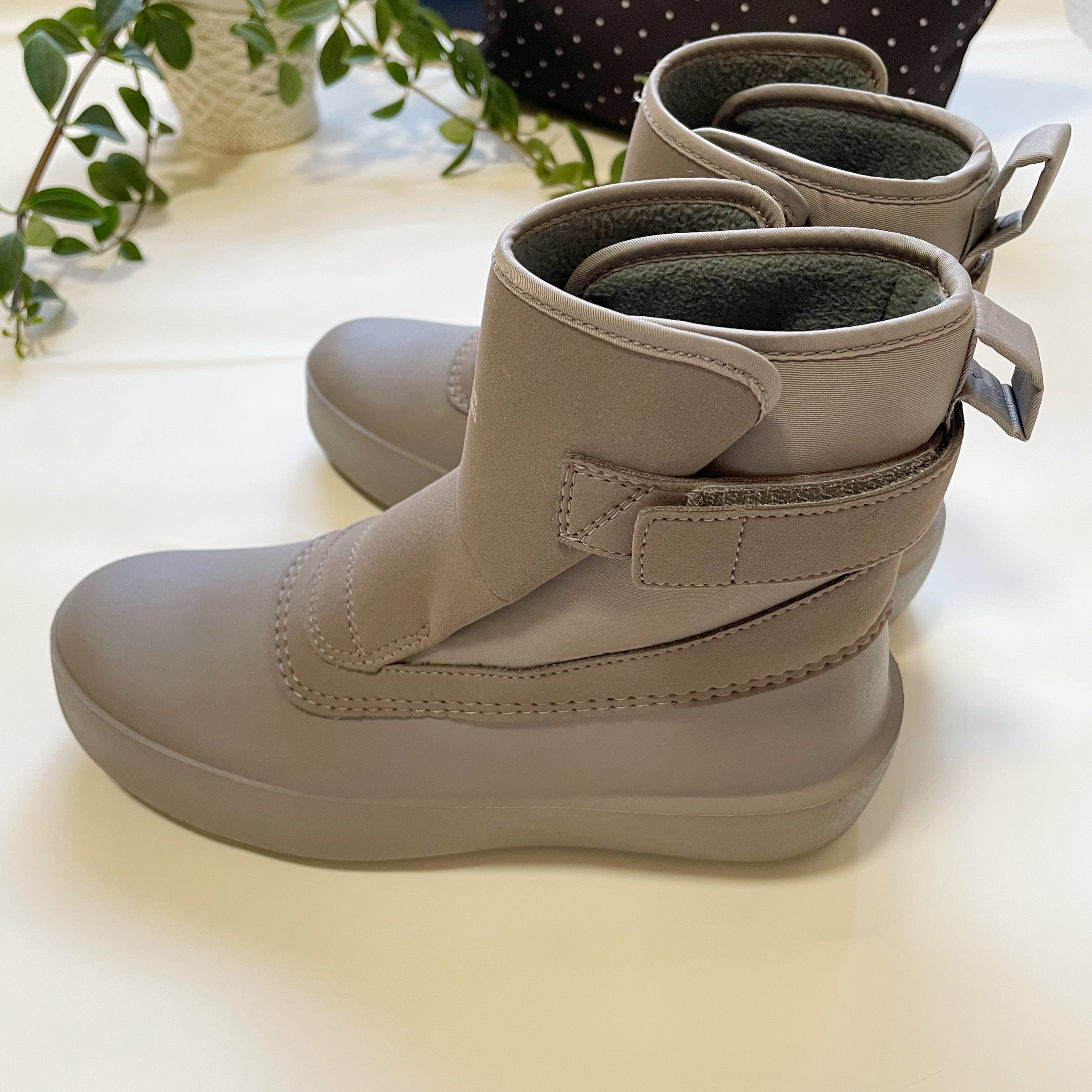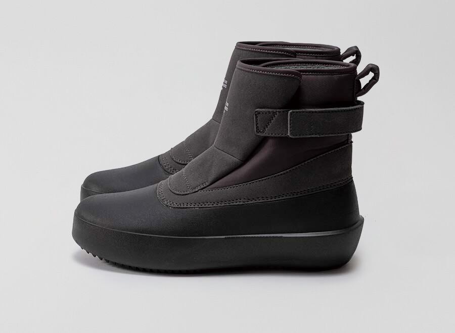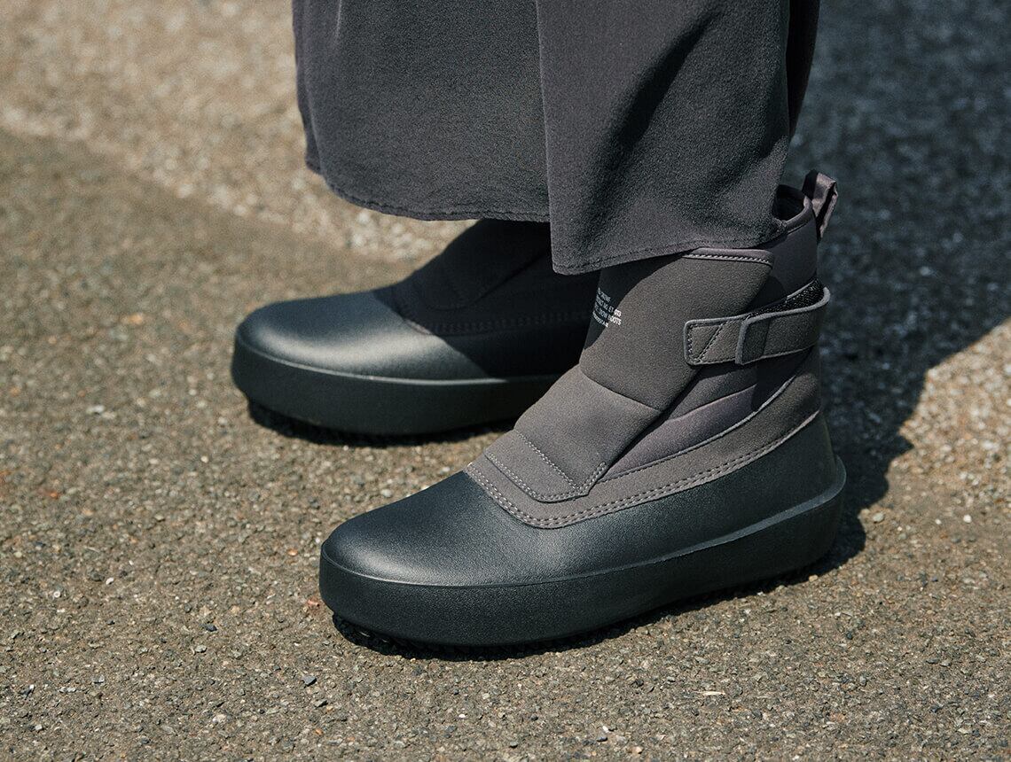 南極観測隊をルーツに持つウィンターシューズ製造のノウハウをデイリーユースに。着脱が簡単なアッパー構造と、軽量で防水性のある立体成型EVAのソールを組み合わせた仕様。靴底に氷上で優れた防滑性を発揮するガラス繊維配合ラバーを搭載したミニマルなブーツタイプ。