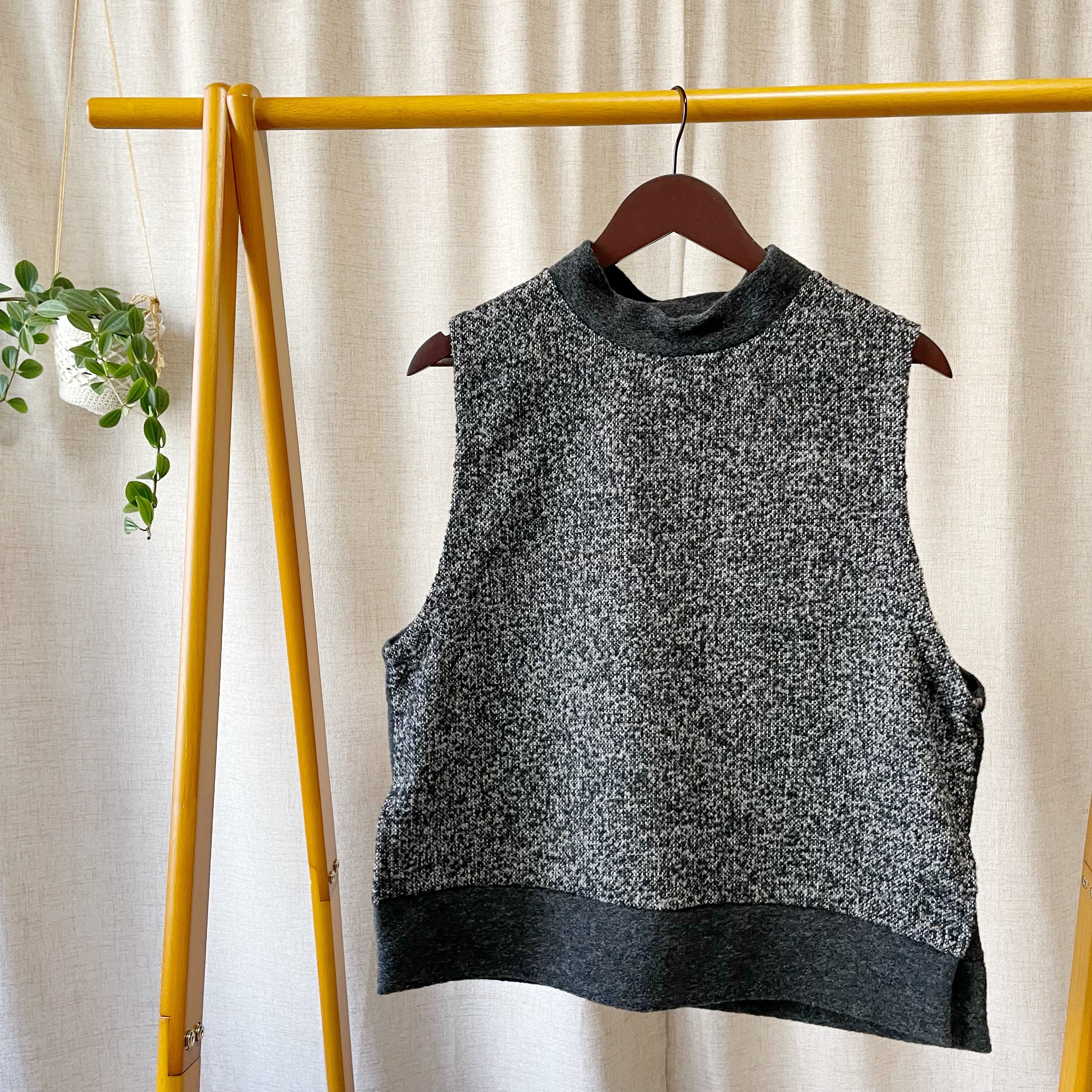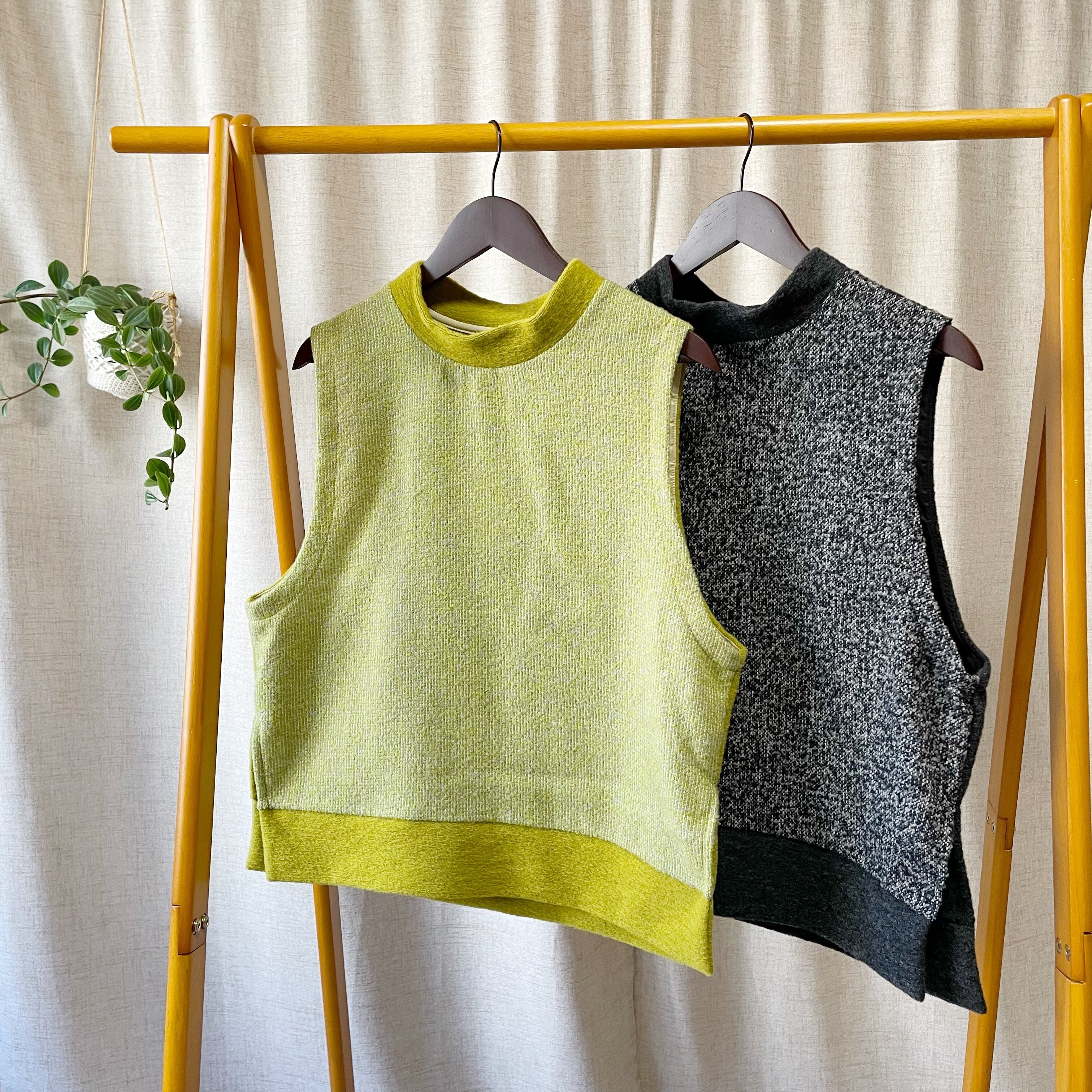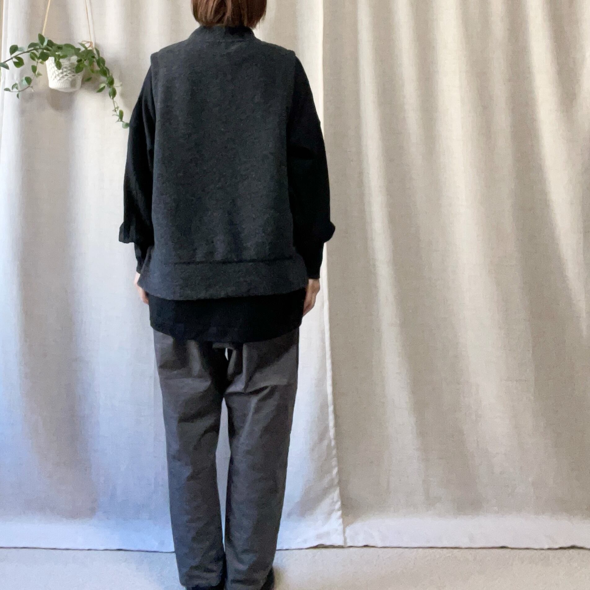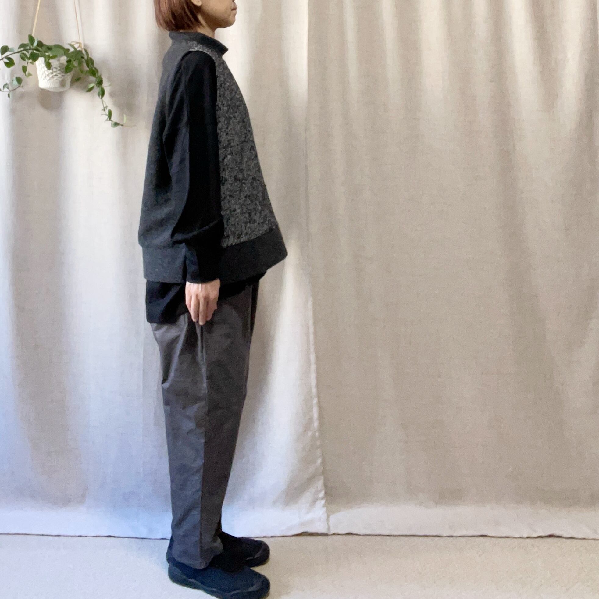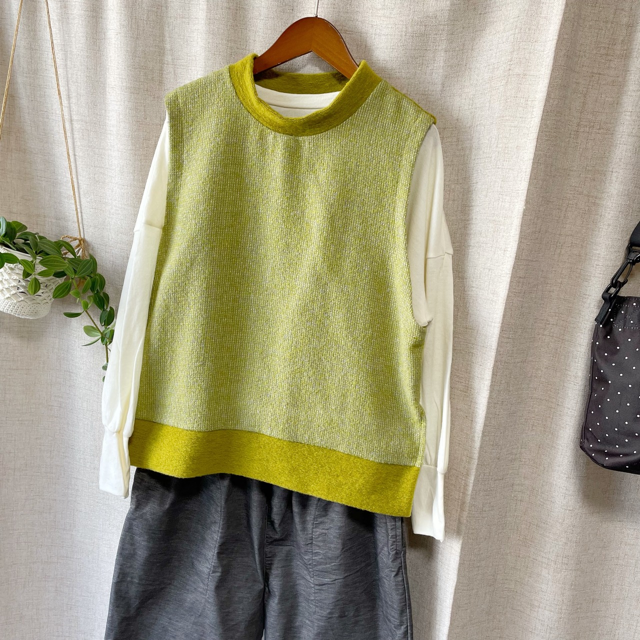 ツイード調の異素材切替が効いたおしゃれなプルオーバーベスト。