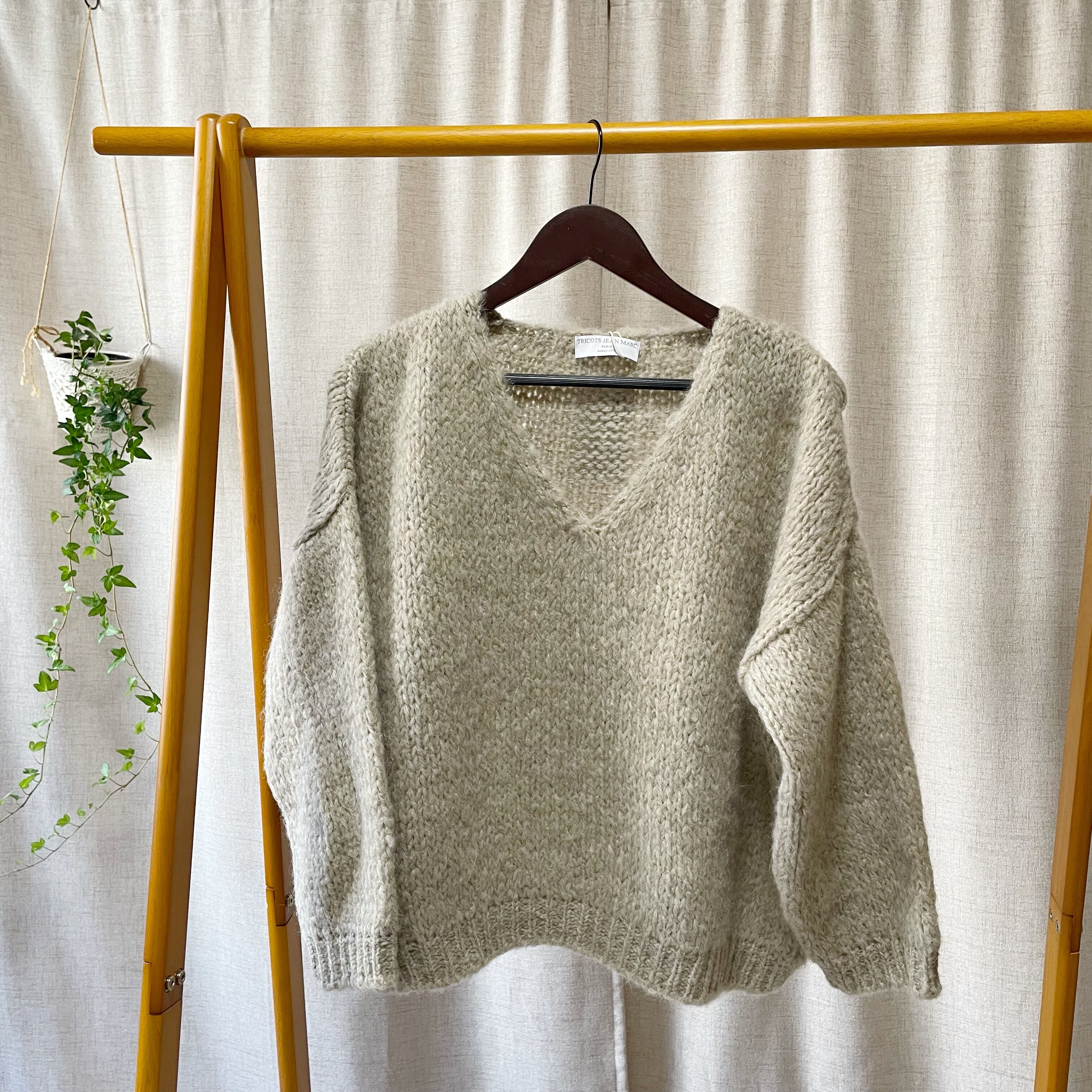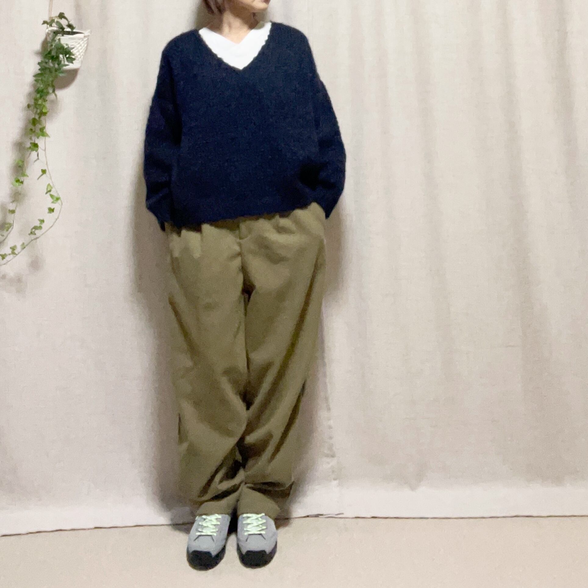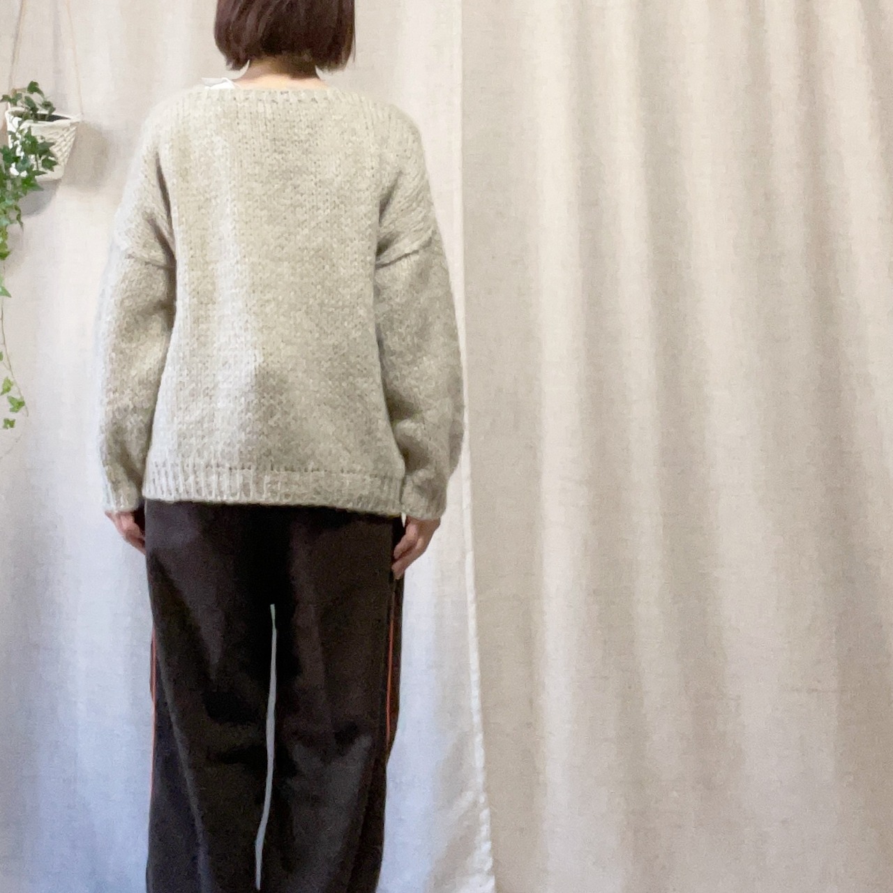 ふんわりとしたニット素材は、柔らかな肌触りで、心地よい着用感を実現。Vネックデザインが顔周りをすっきりと見せ、レイヤードスタイルにぴったりなスッキリ丈で仕上げています。