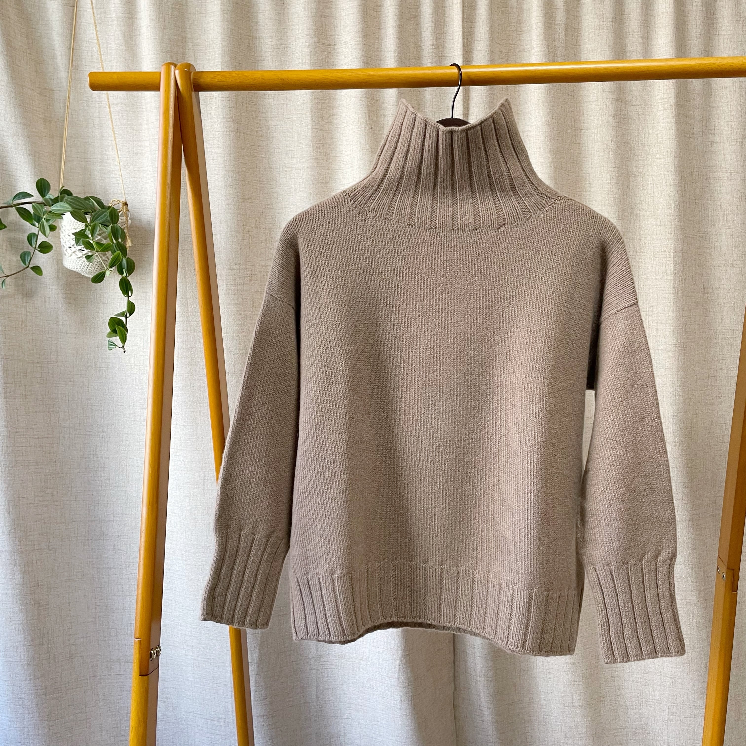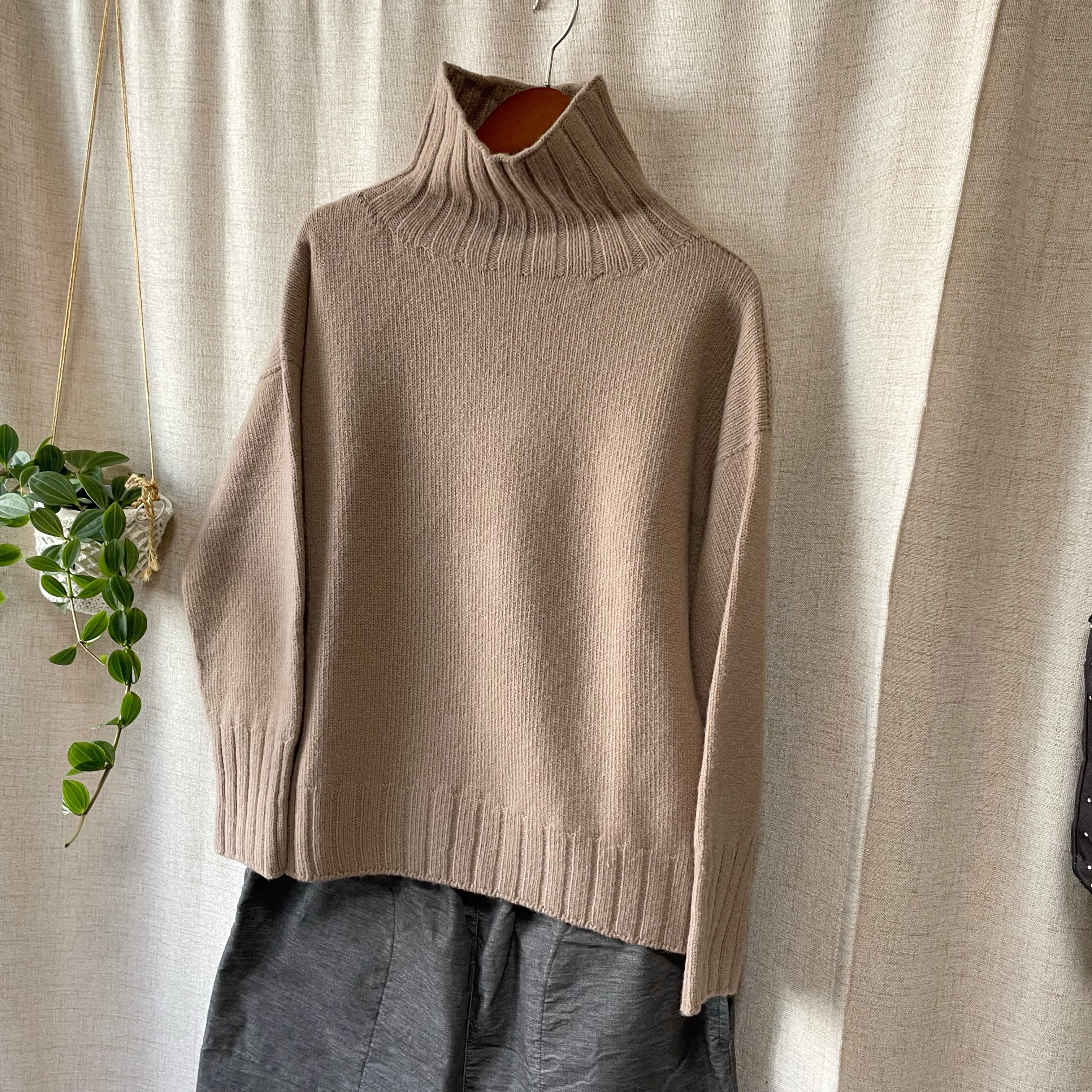 英国上質なニット素材を使用した、上品ゆったりタートルネックニットプルオーバー。