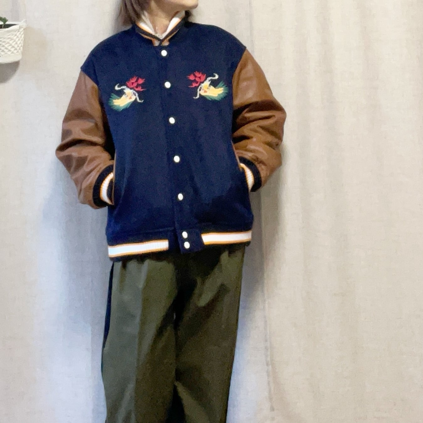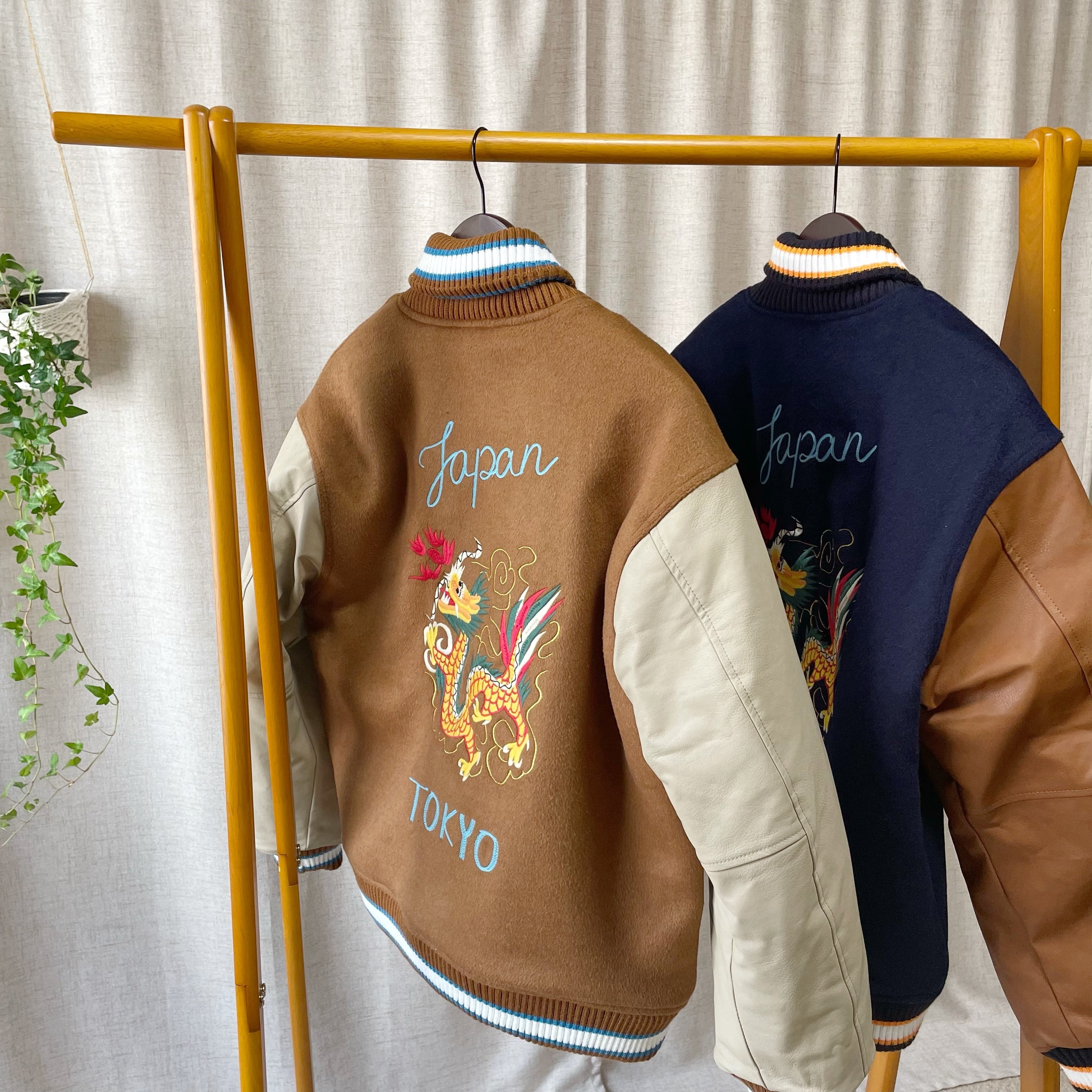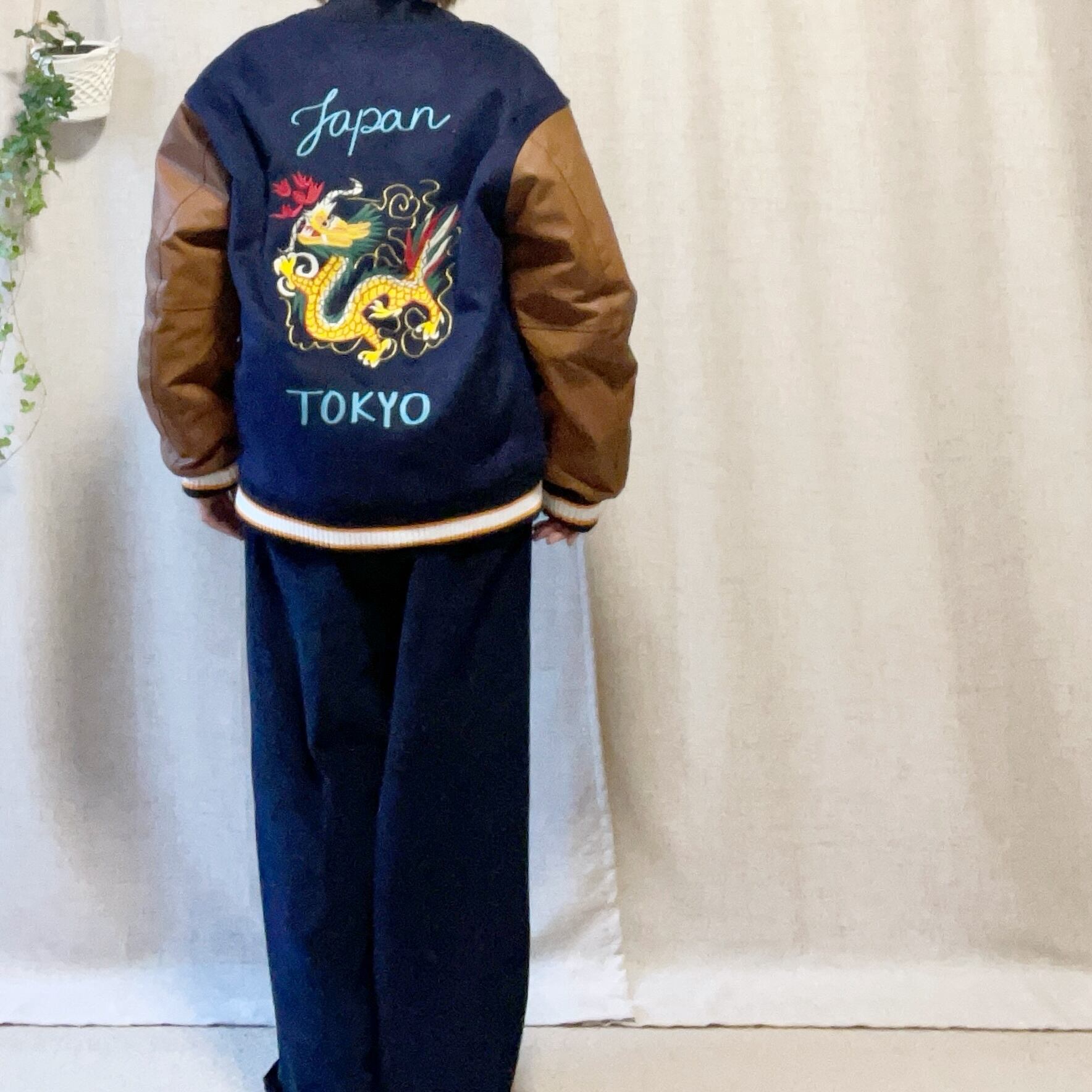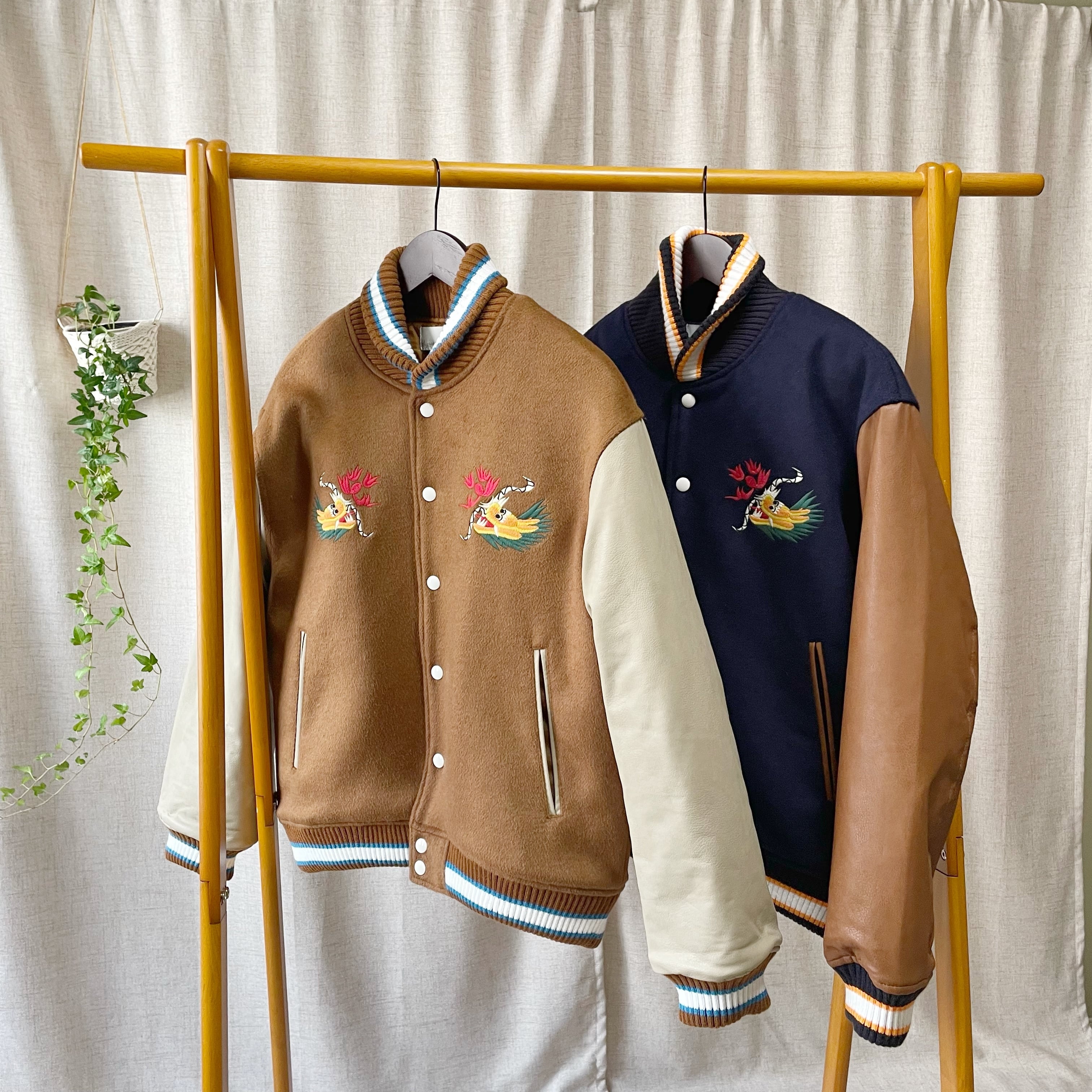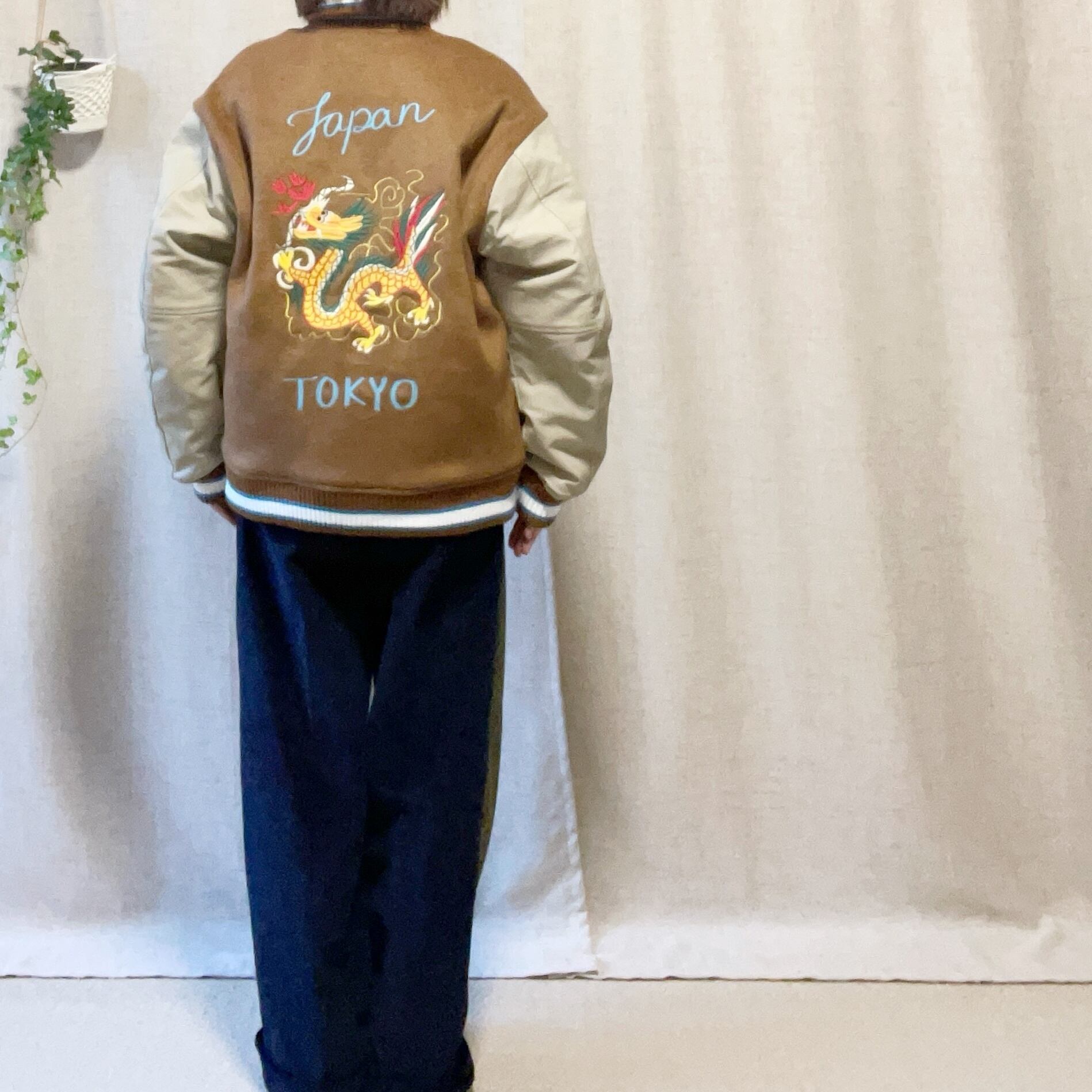 スカジャンをベースにしたこのスカジアムジャケットは、遊び心溢れる魅力的なデザイン。