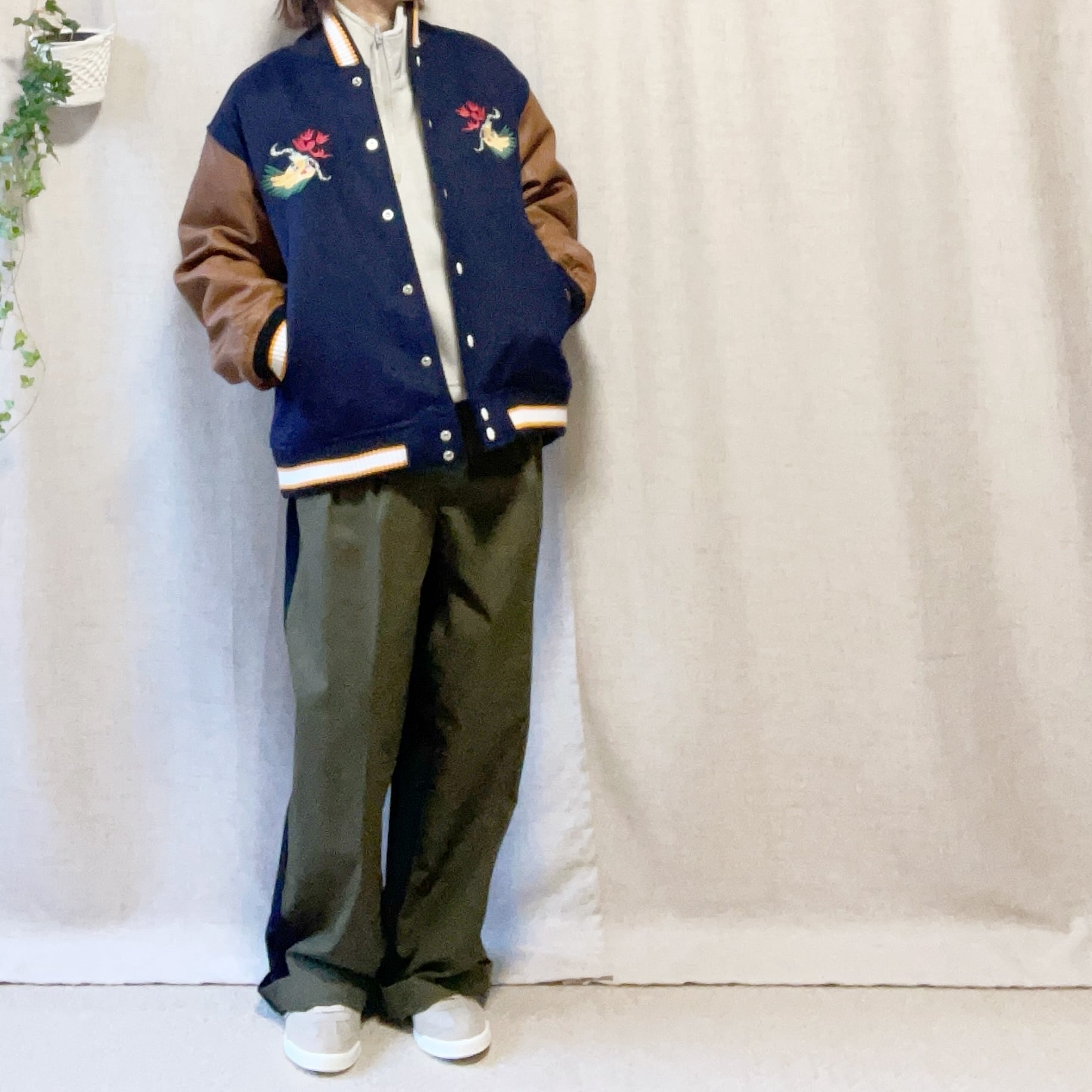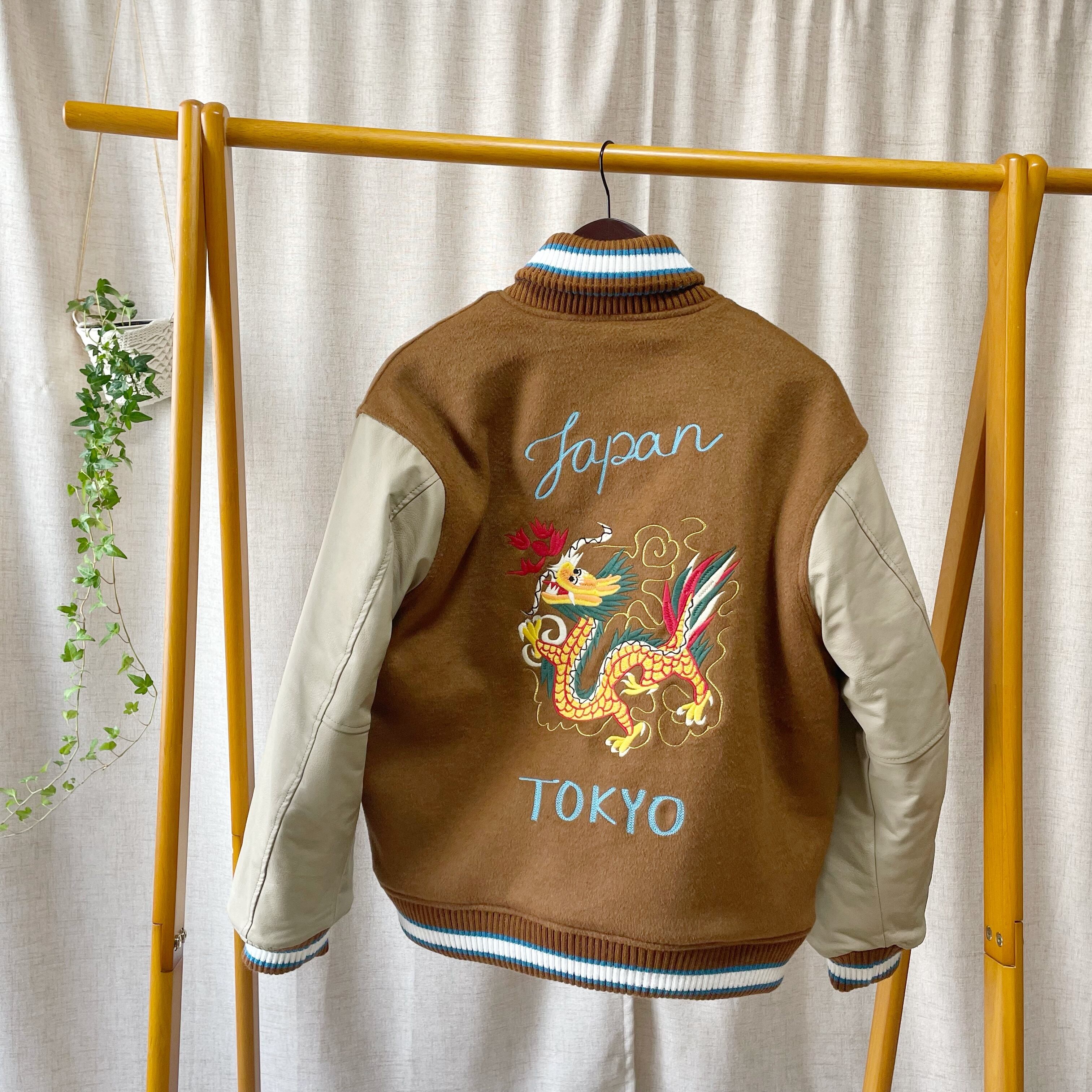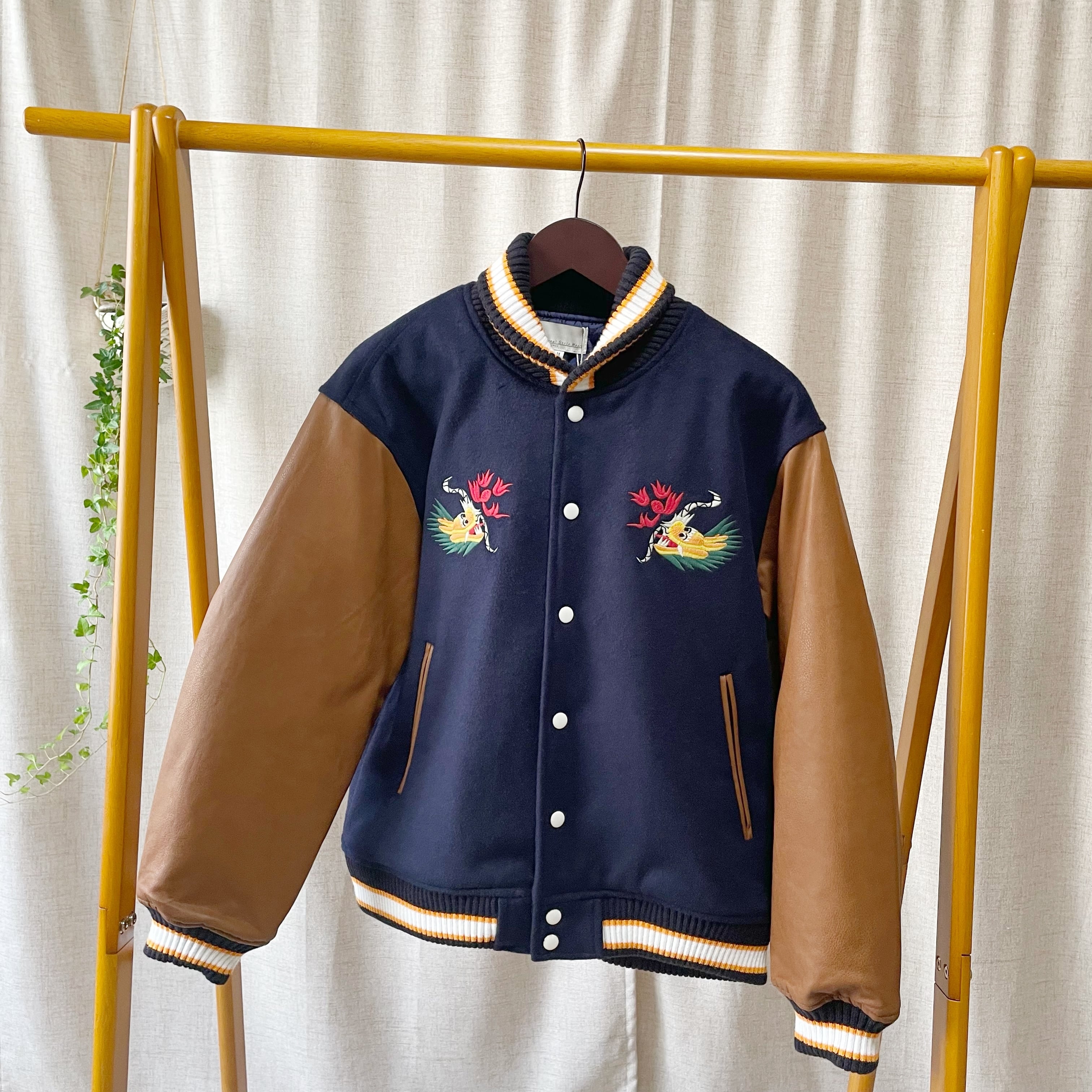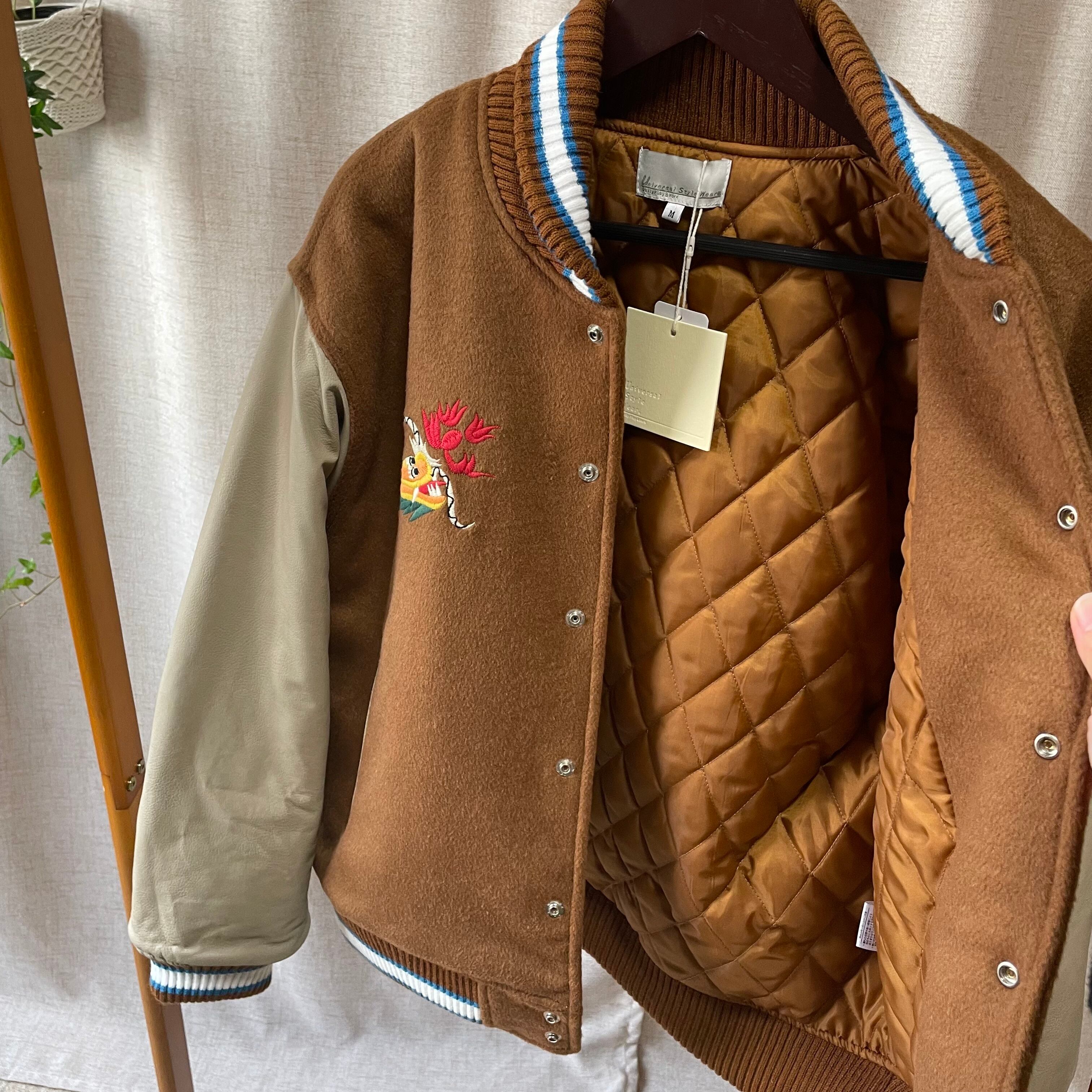スカジャンをベースにしたこのスカジアムジャケットは、遊び心溢れる魅力的なデザイン。