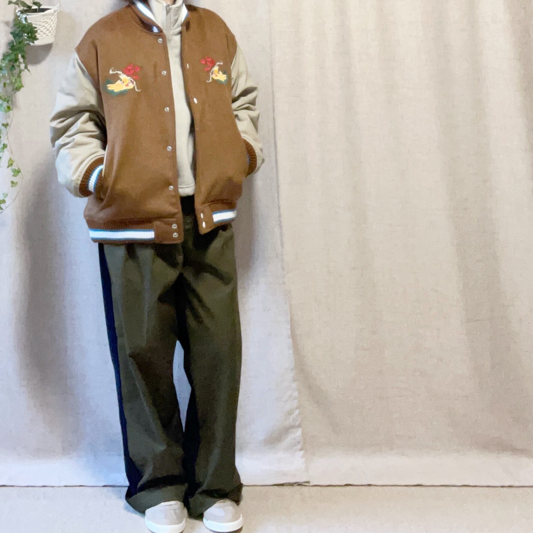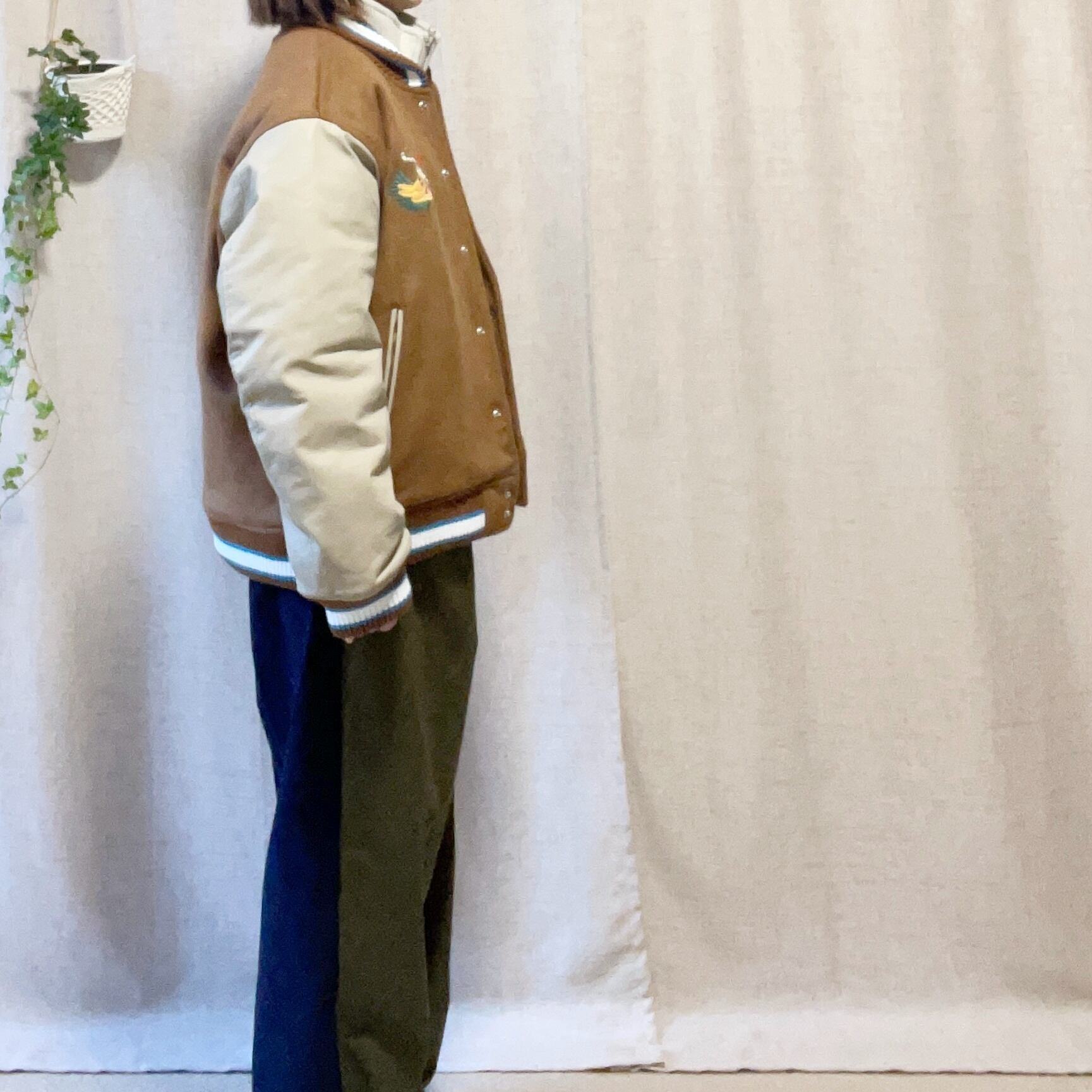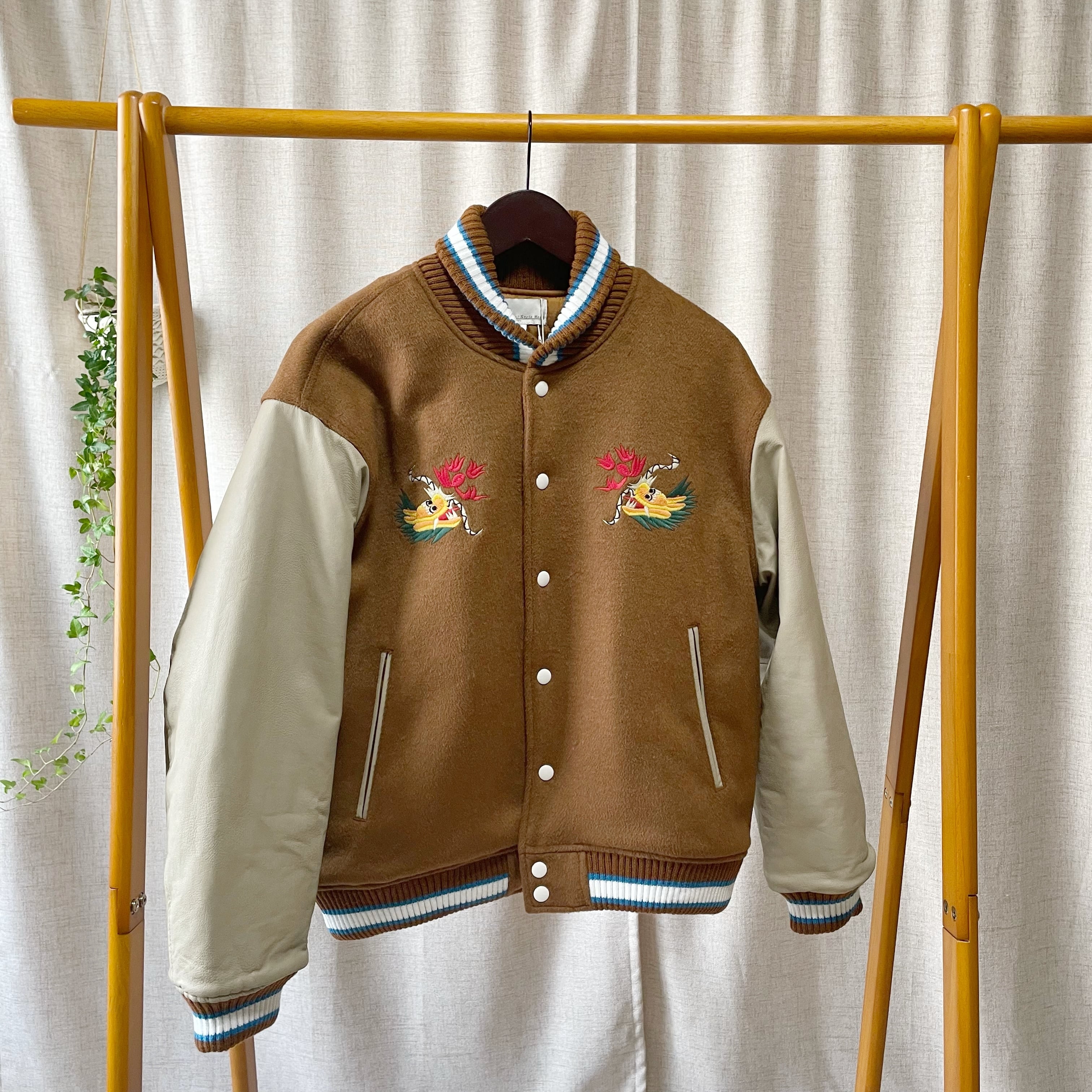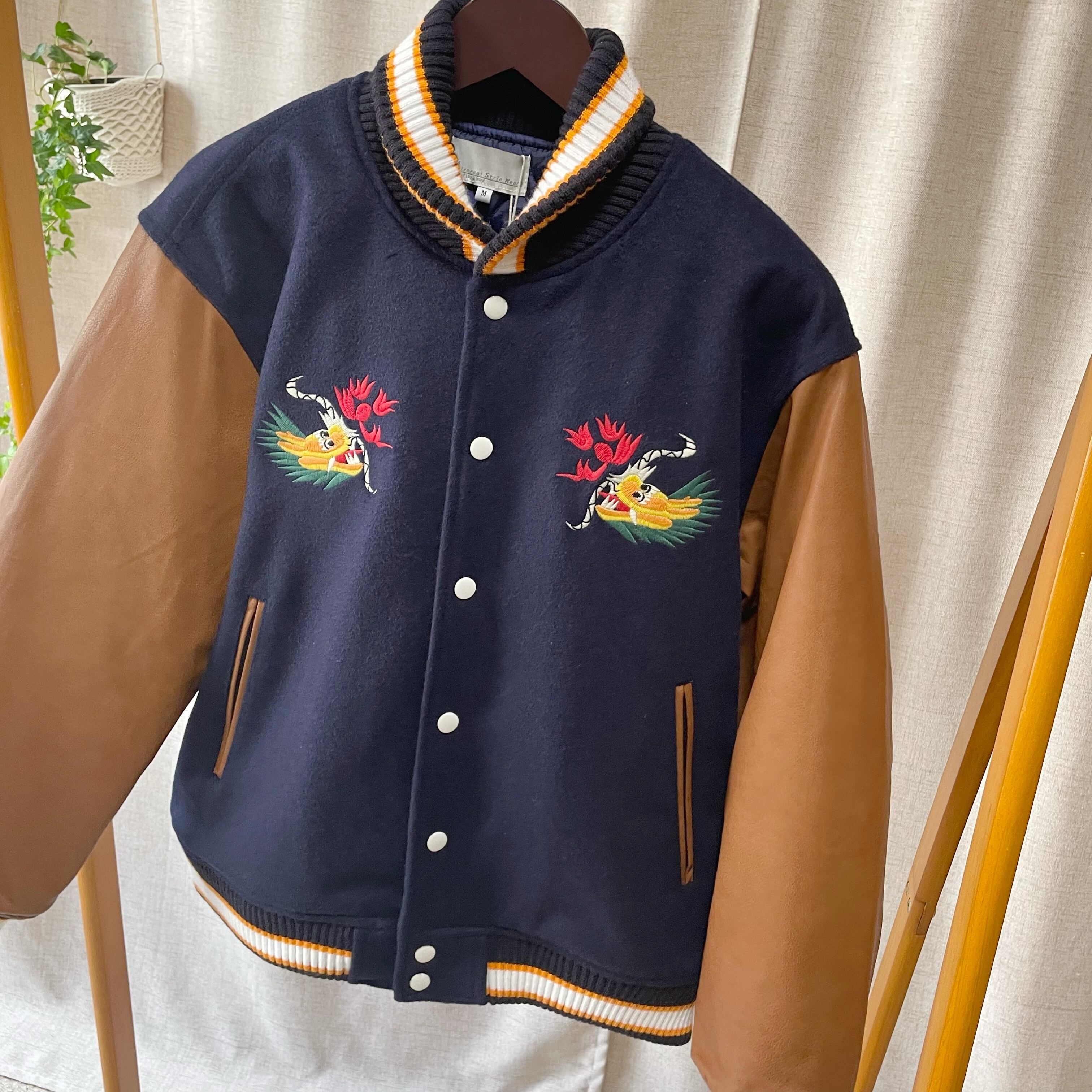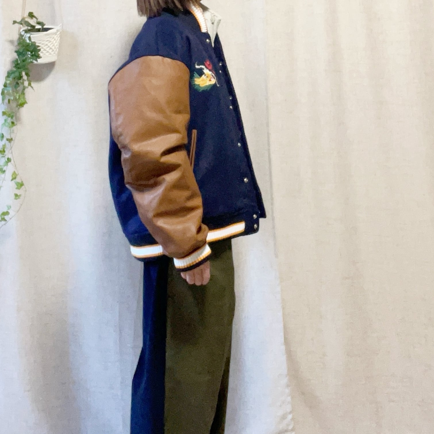 スカジャンをベースにしたこのスカジアムジャケットは、遊び心溢れる魅力的なデザイン。