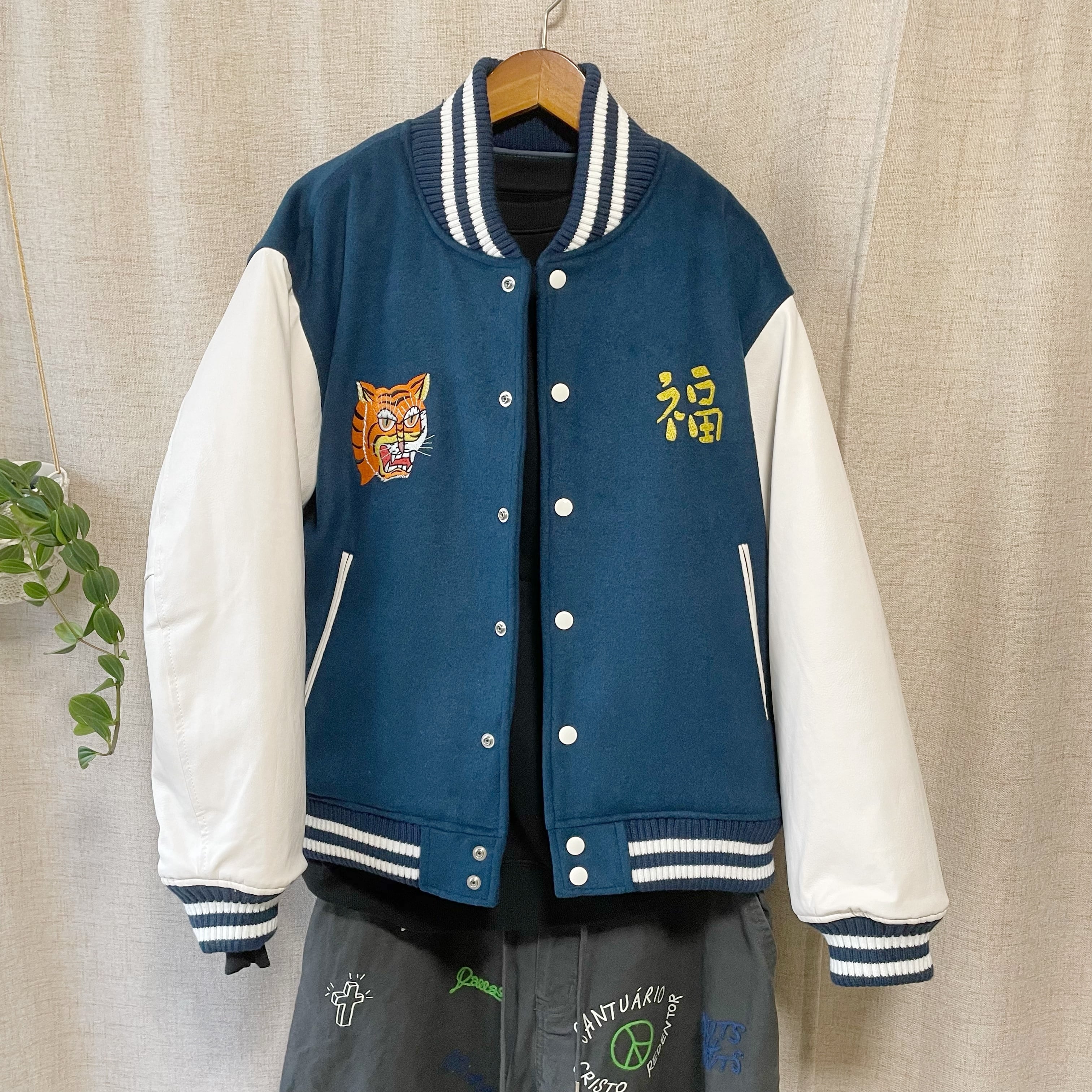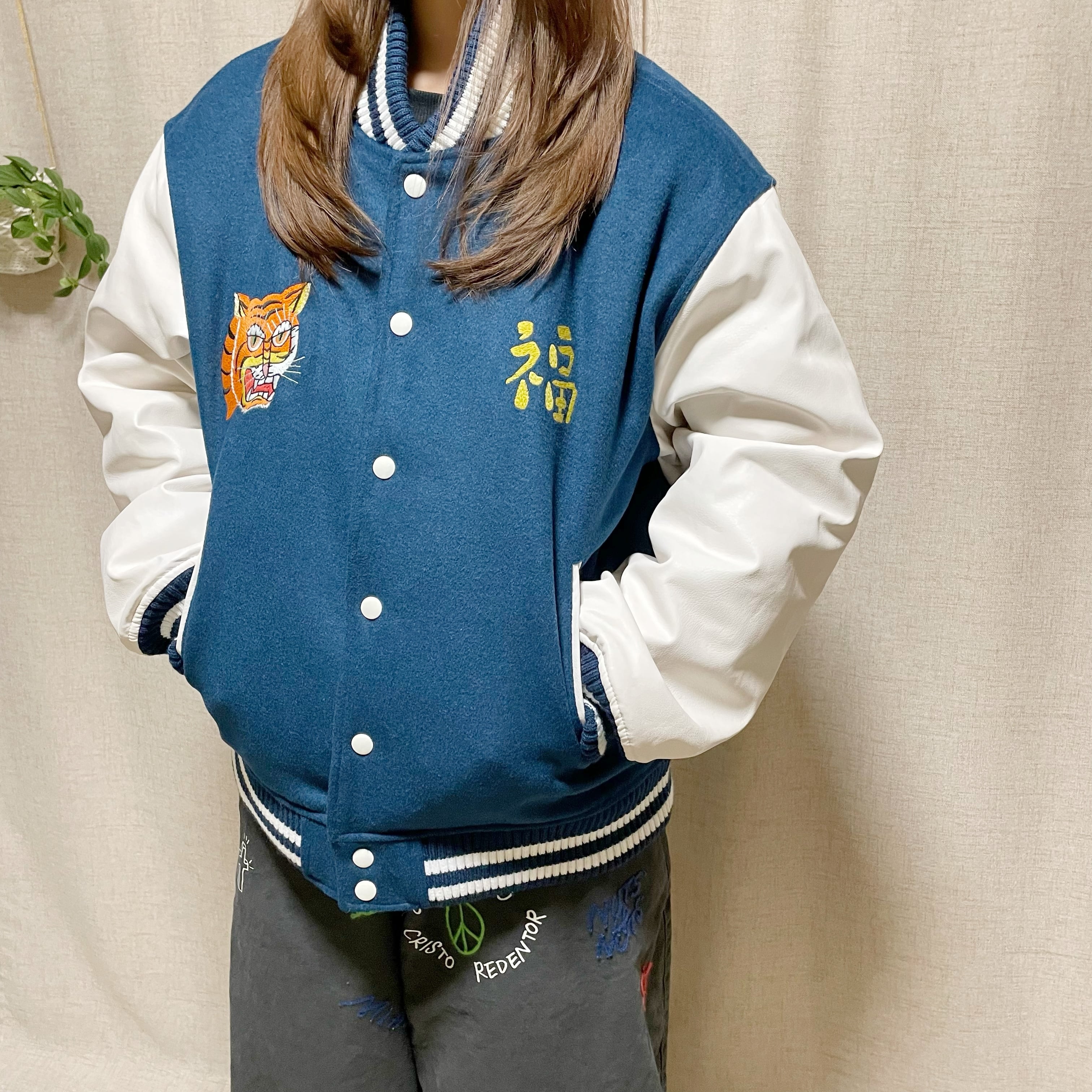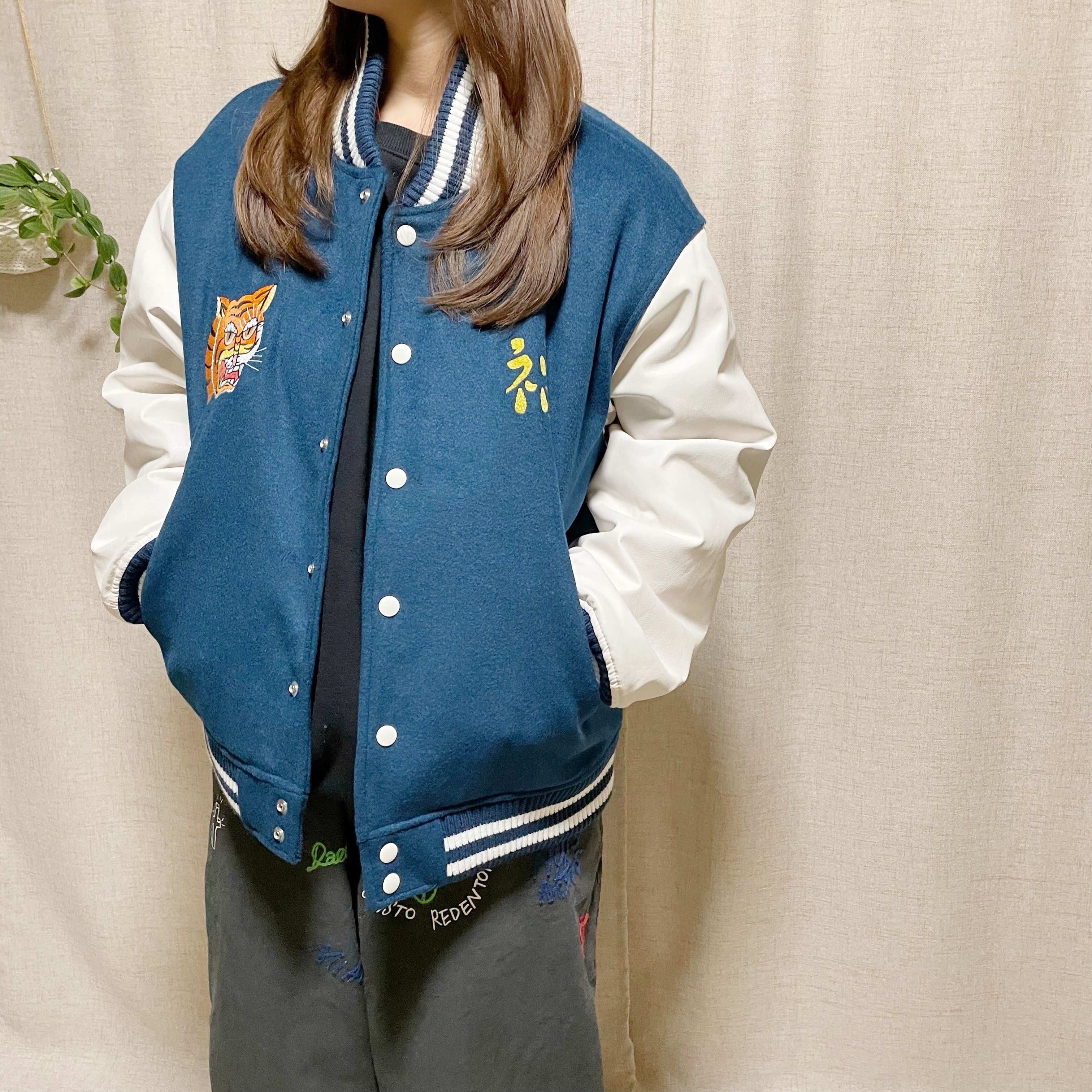 スカジャンをベースにしたこのスカジアムジャケットは、遊び心溢れる魅力的なデザイン。