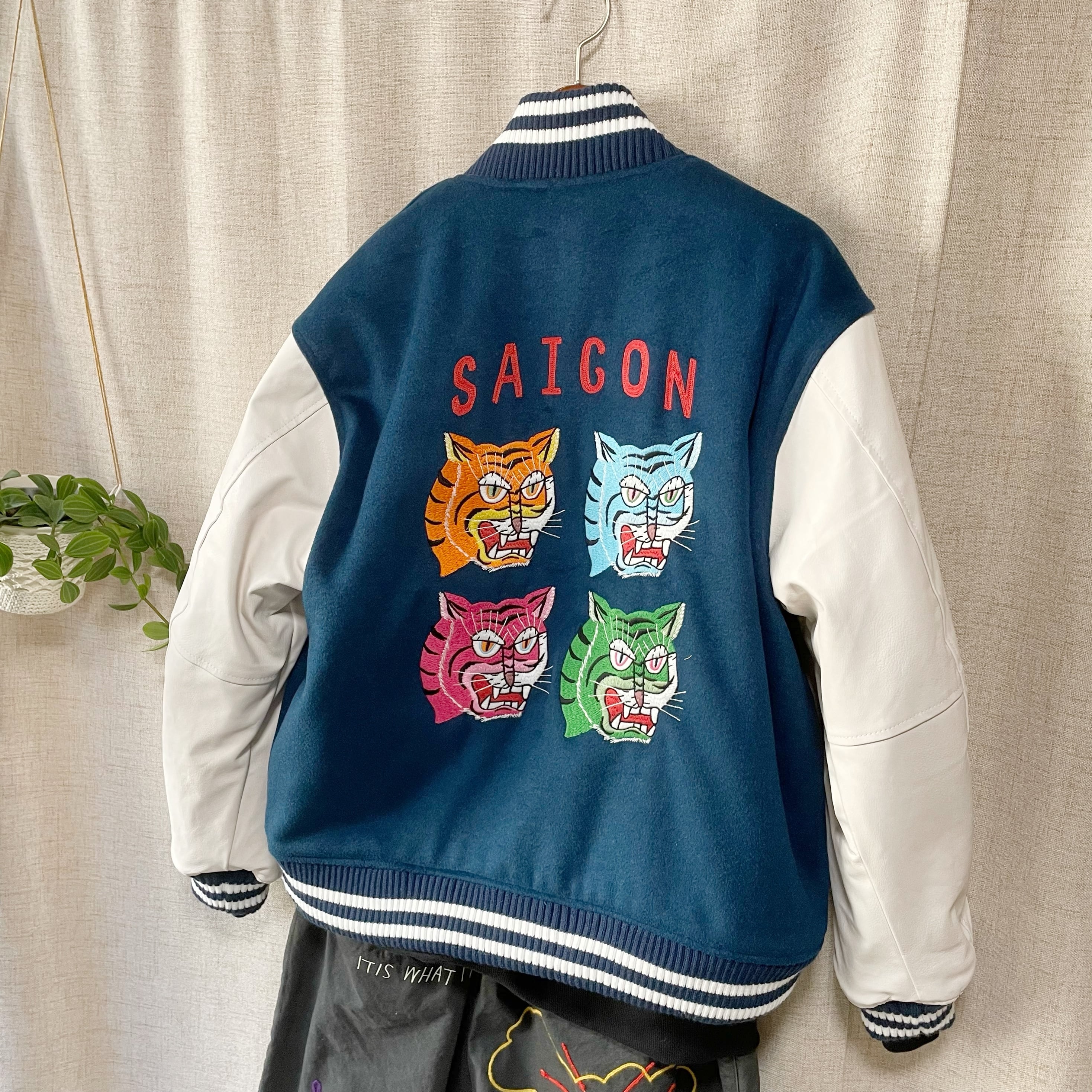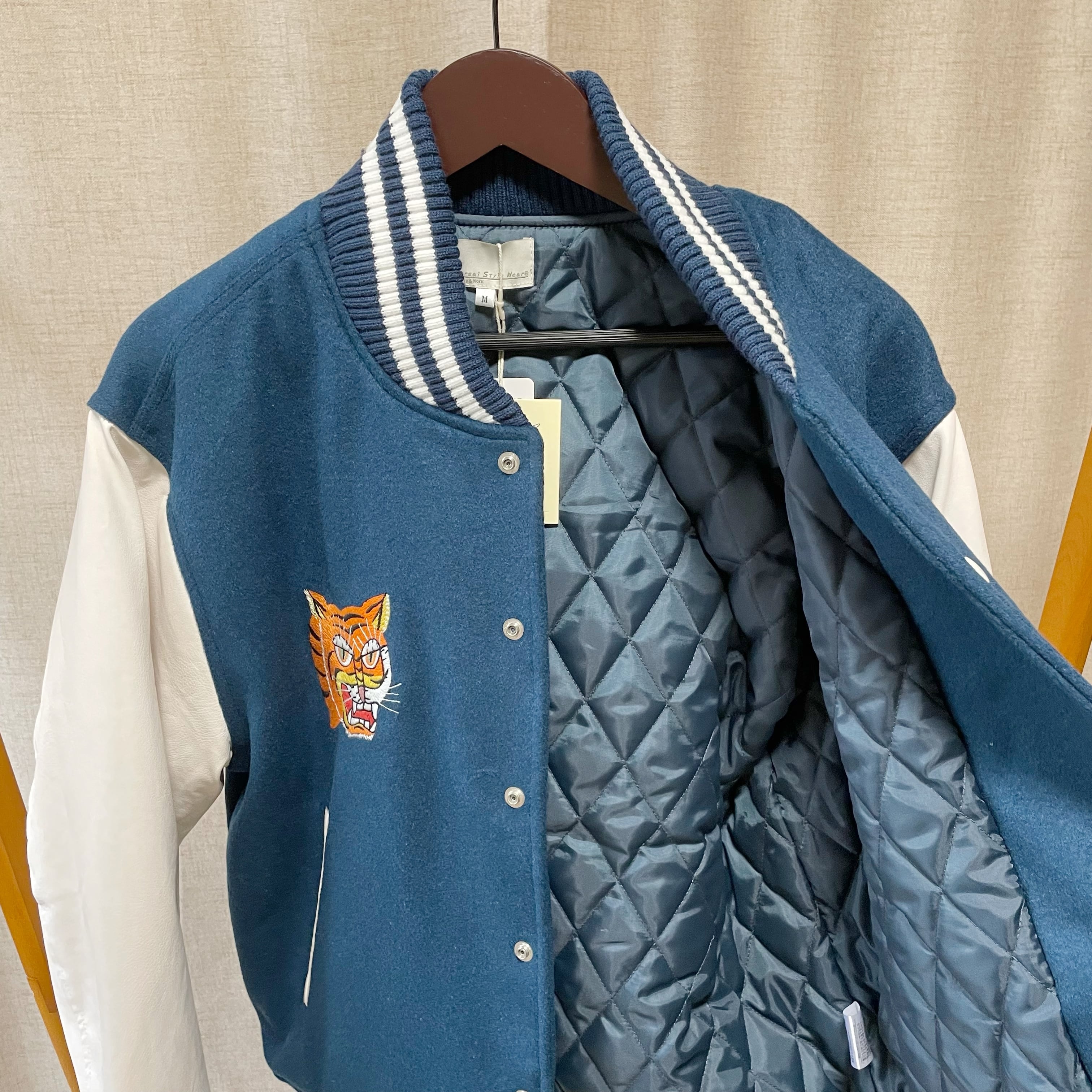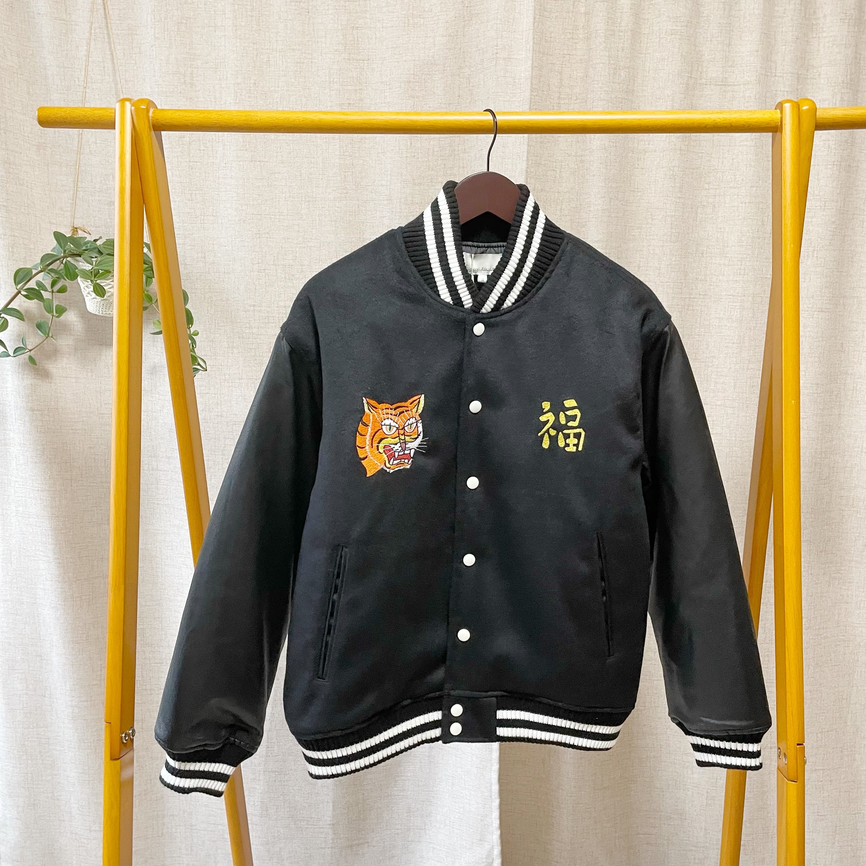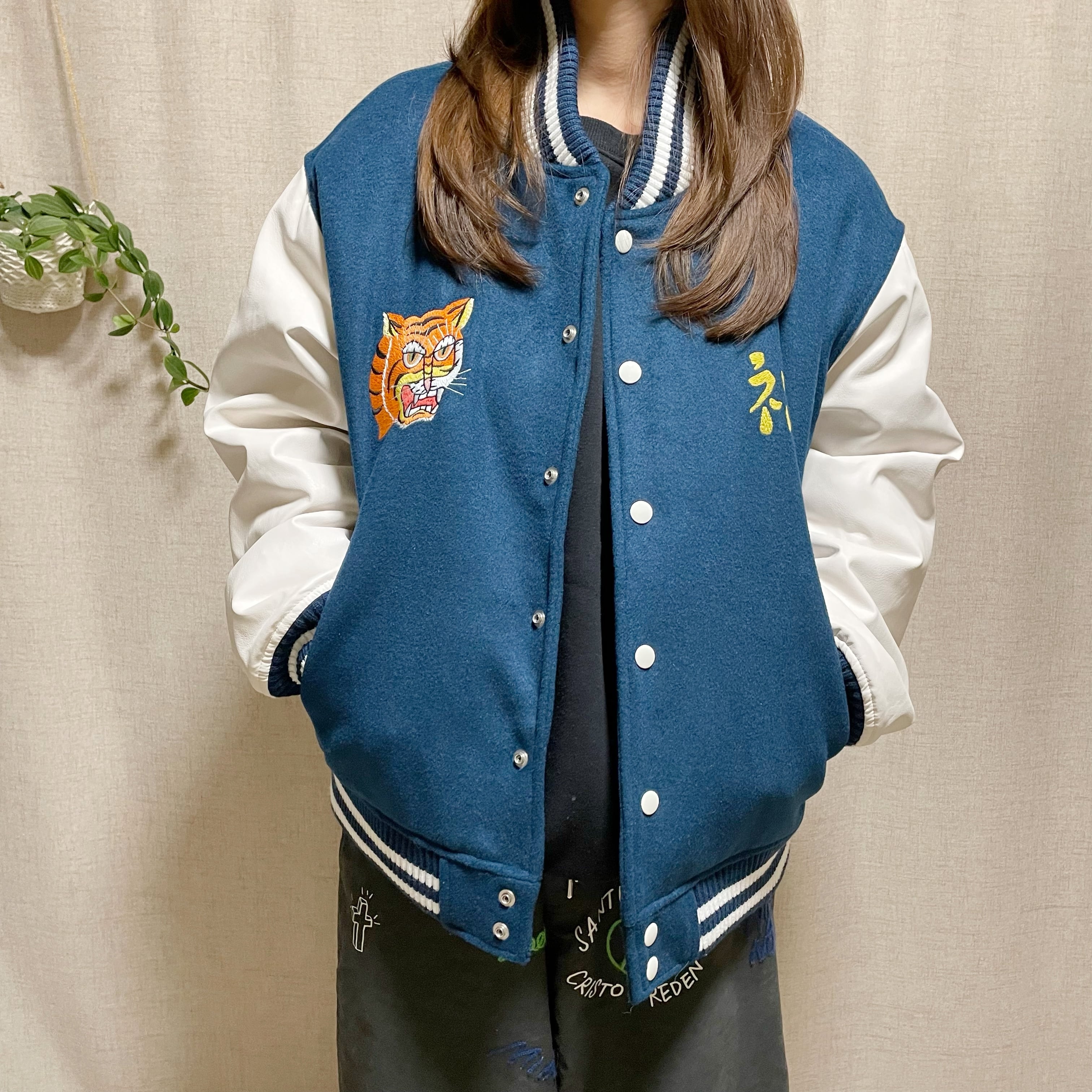 スカジャンをベースにしたこのスカジアムジャケットは、遊び心溢れる魅力的なデザイン。