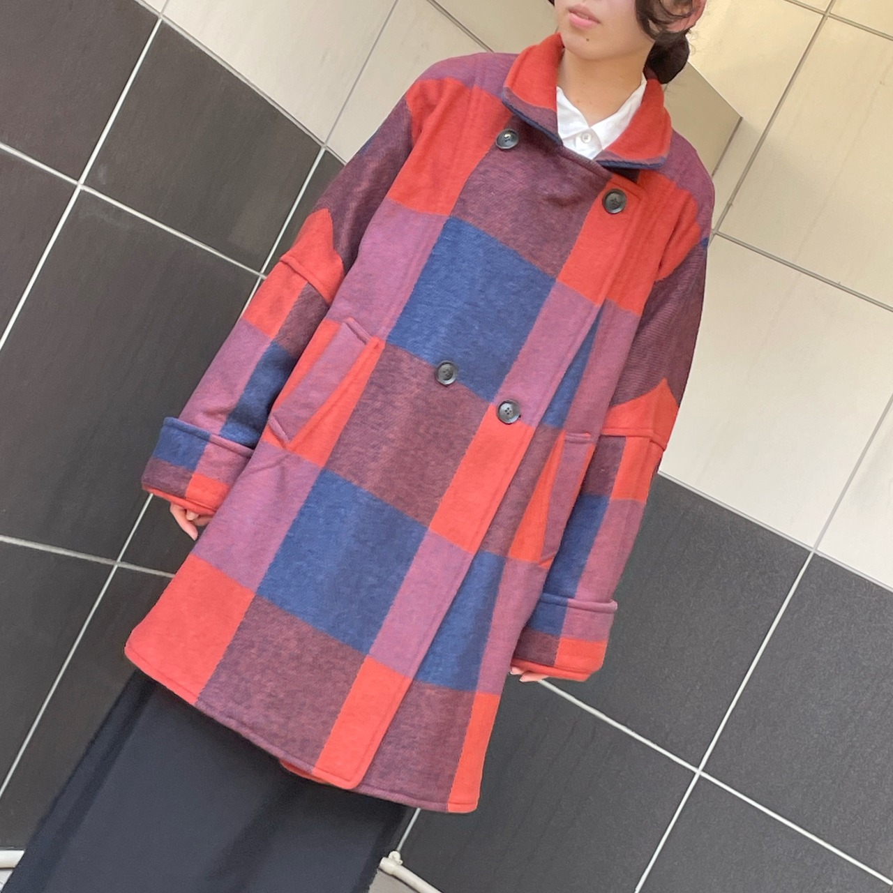 カラフルなチェック柄が印象的なこのウールコートは、英国の伝統を感じさせる特別なデザイン。ツイードの温かみとテーラード仕立てが相まって、洗練された大人のスタイルを演出します。コーディネート次第で、カジュアルにもフォーマルにも違和感なく馴染む、美しい一着です。