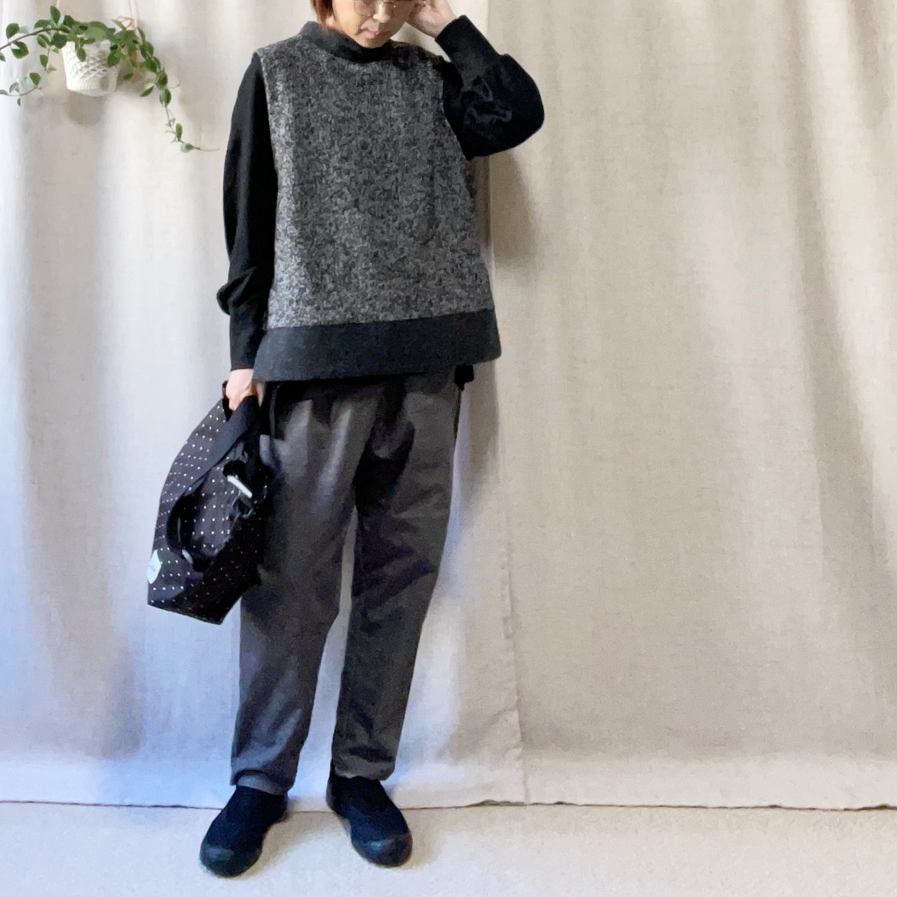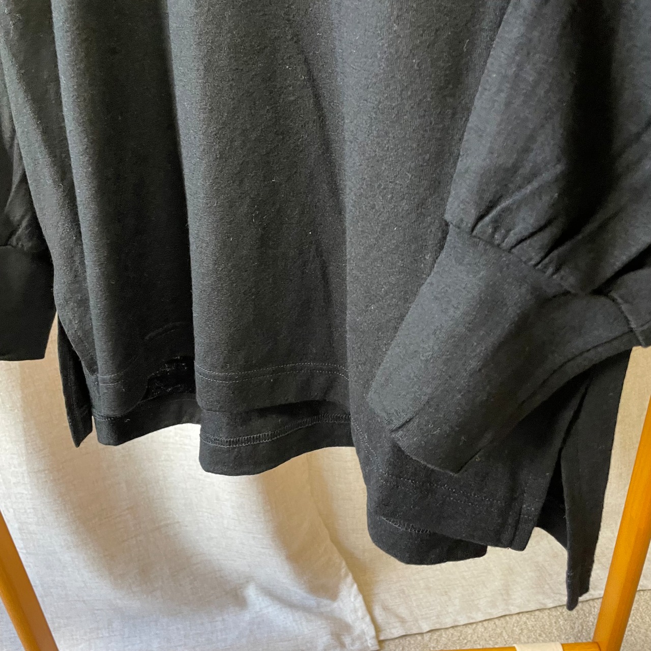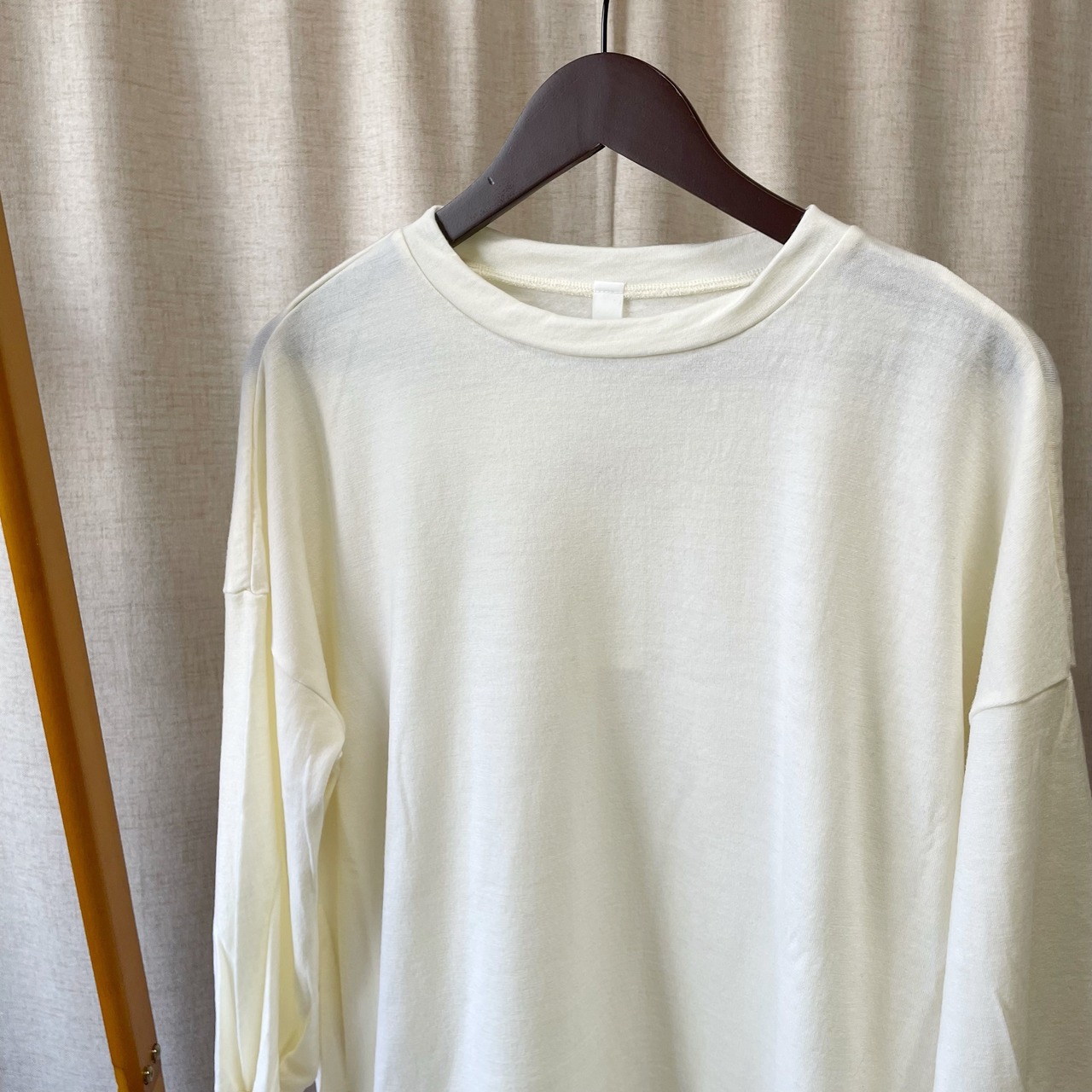 ドロップショルダーで全体的にゆとりがありながら、落ち感がありきれいなシルエットです。