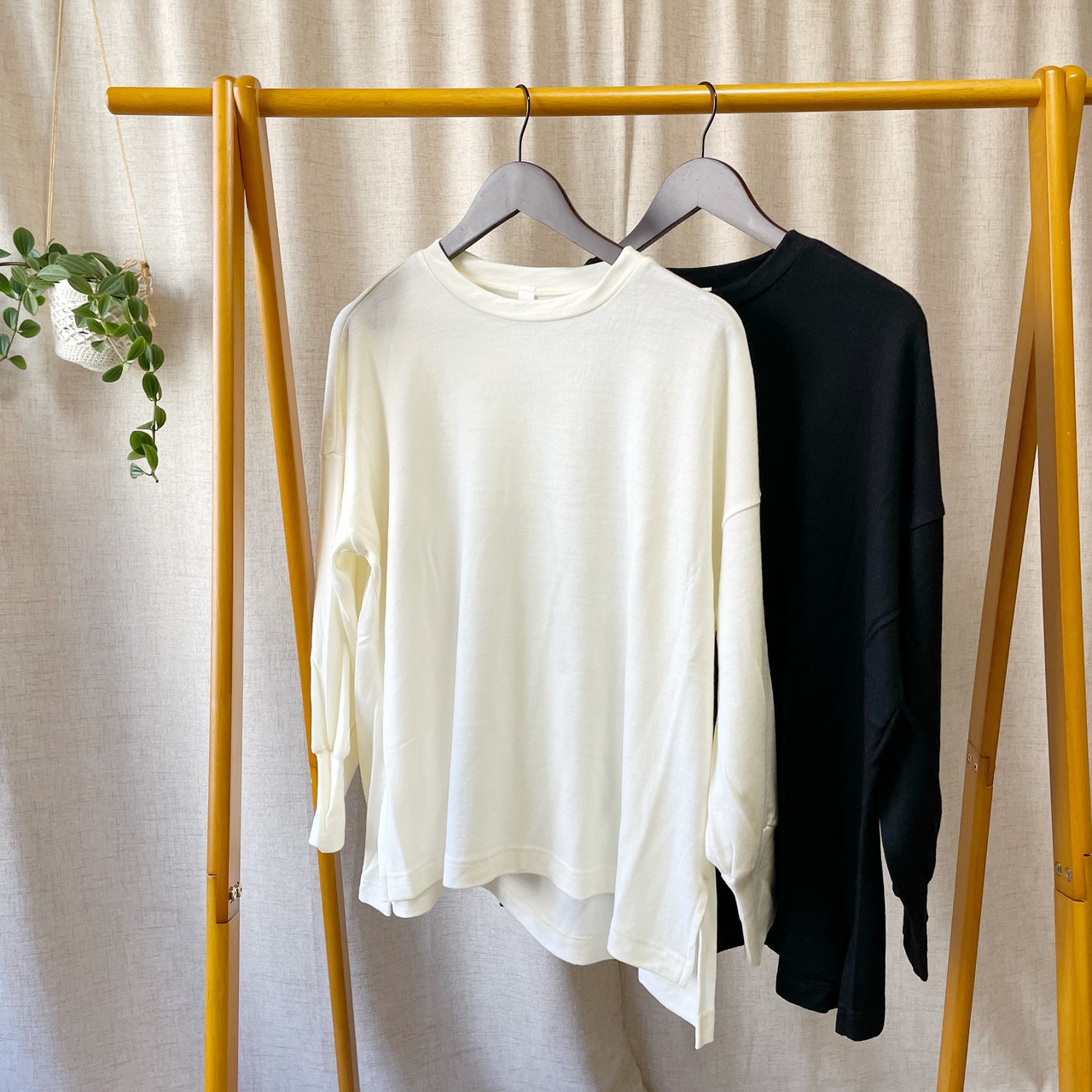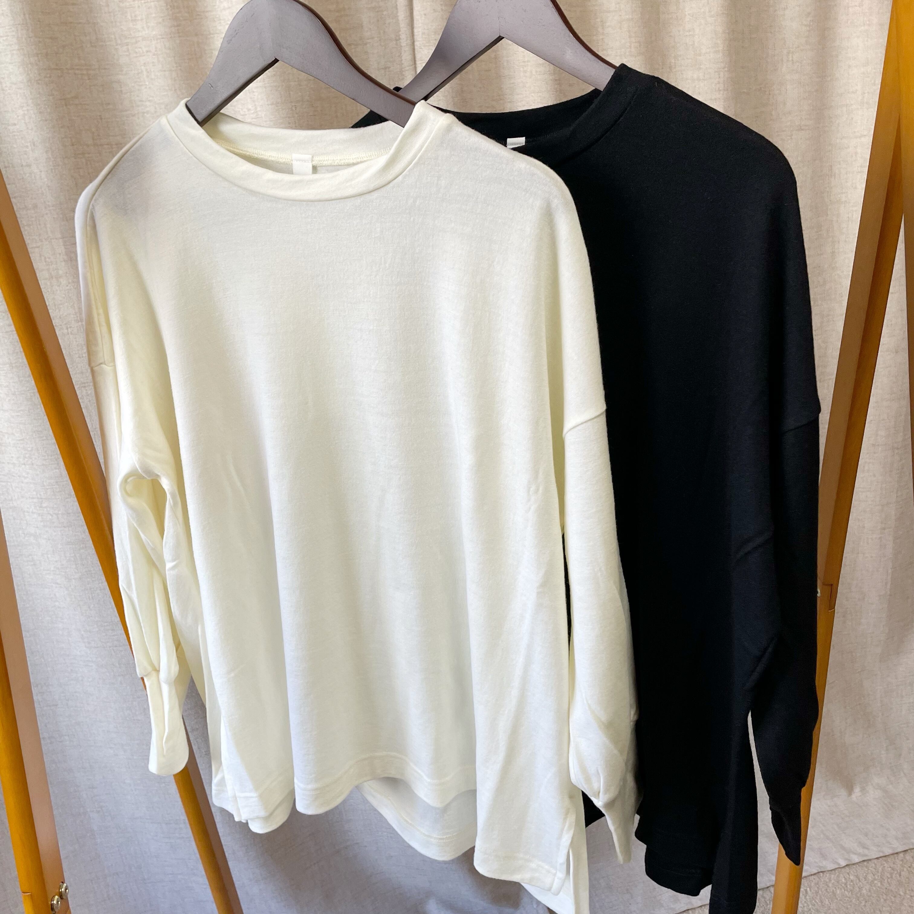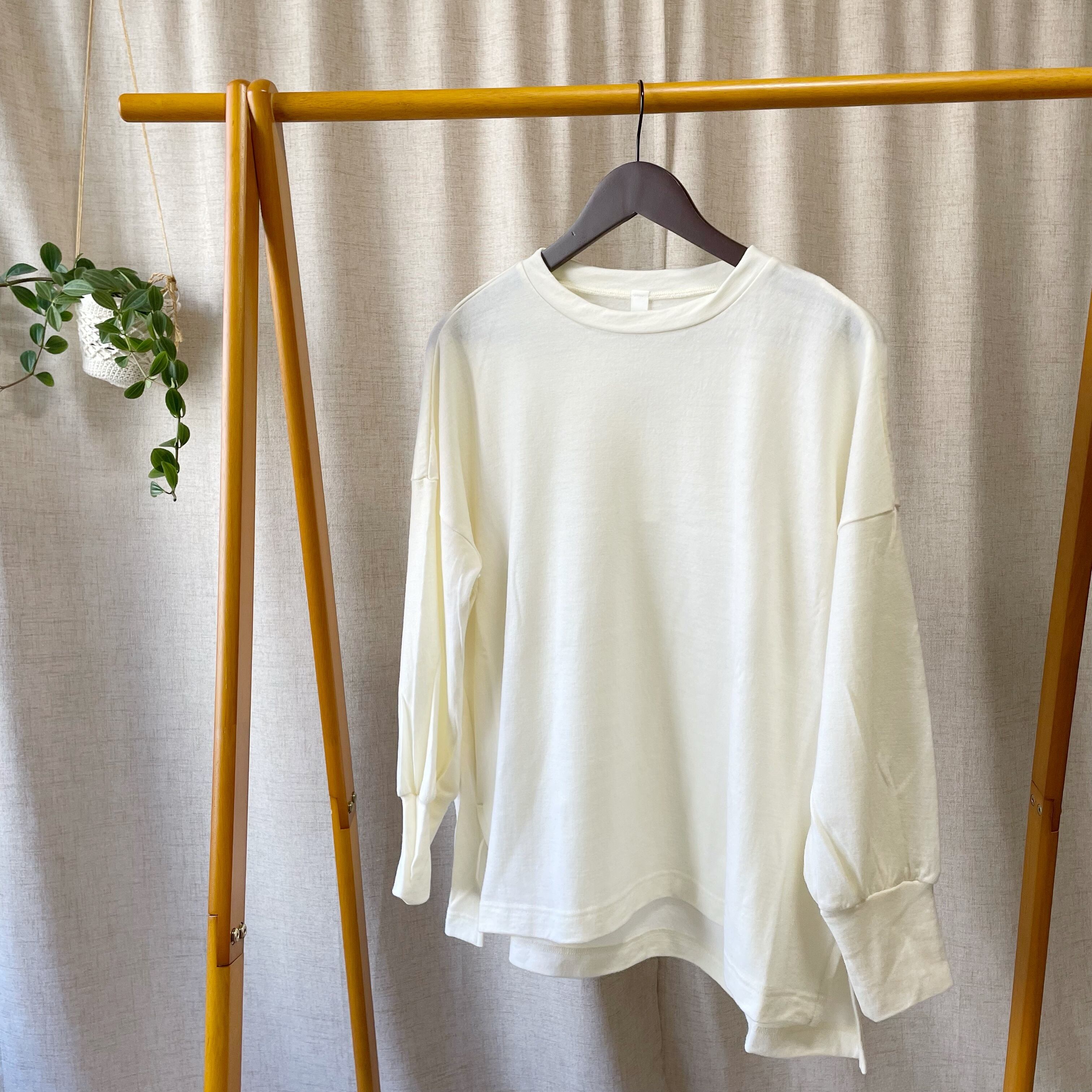ちくちく感は少なく、着心地のよいクルーネックビッグプルオーバーです。