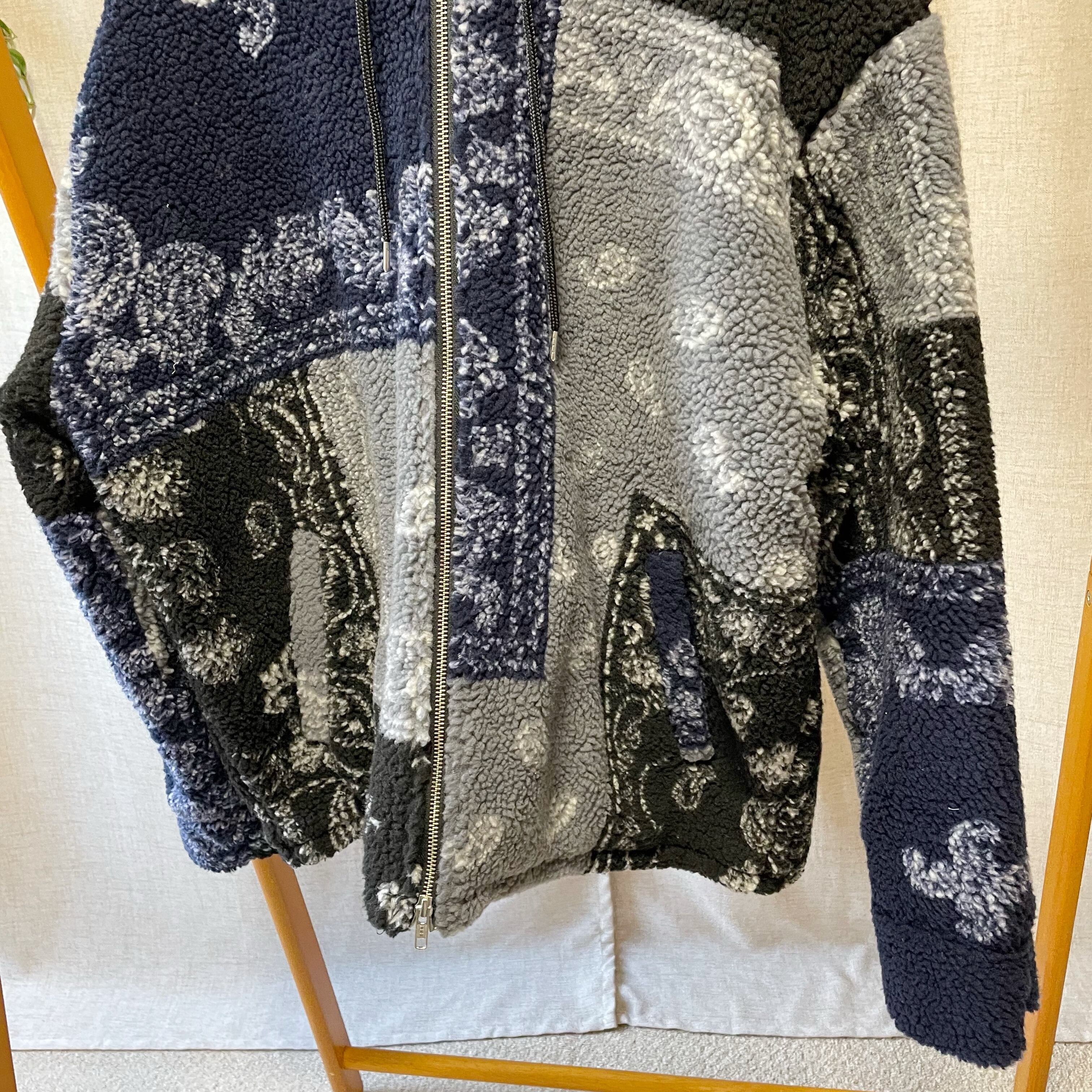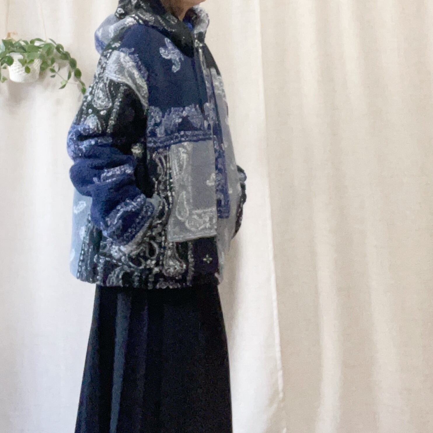バンダナ柄でパッチワーク風にジャガードしたオリジナルジャガードボアを使用