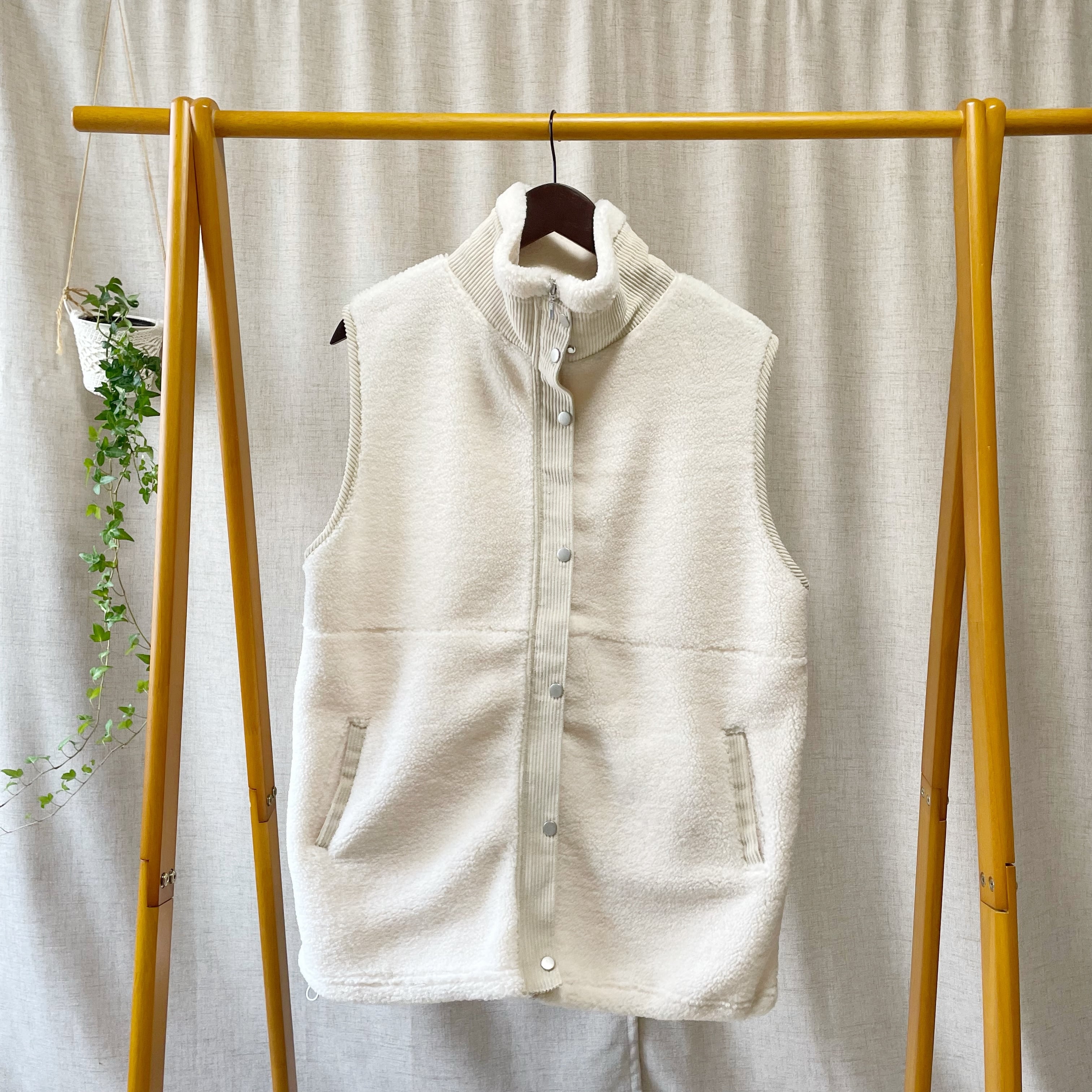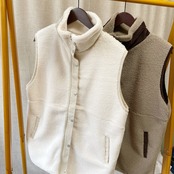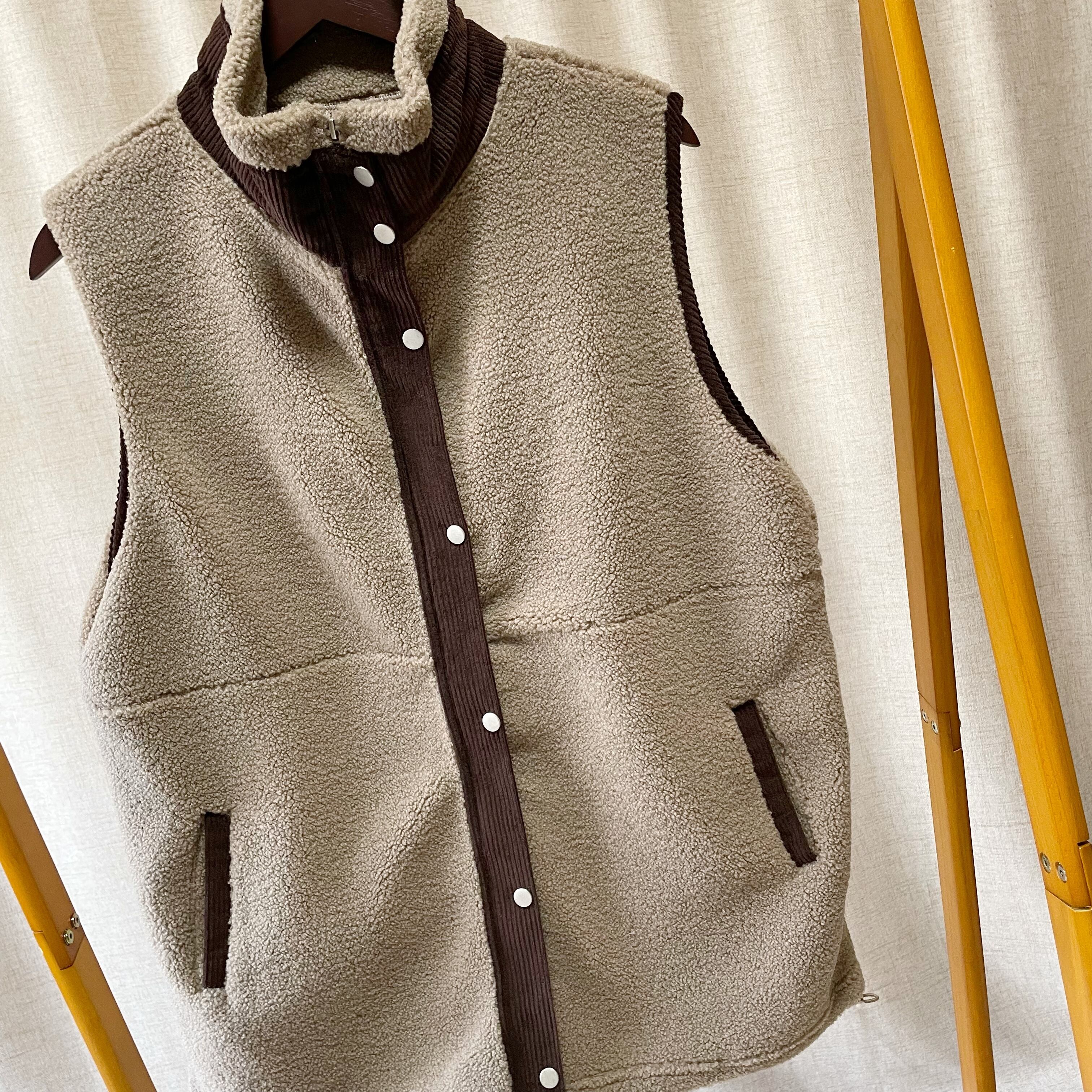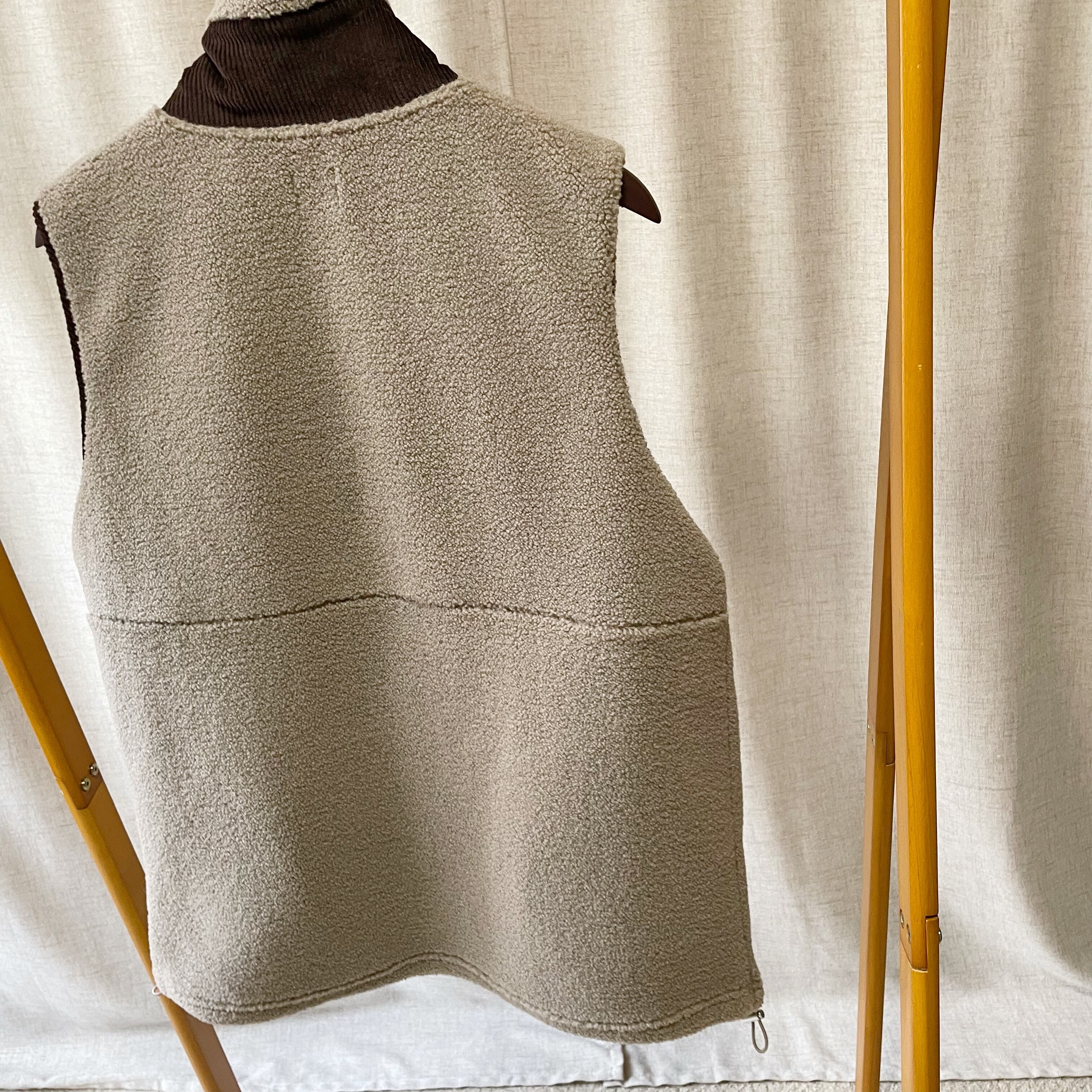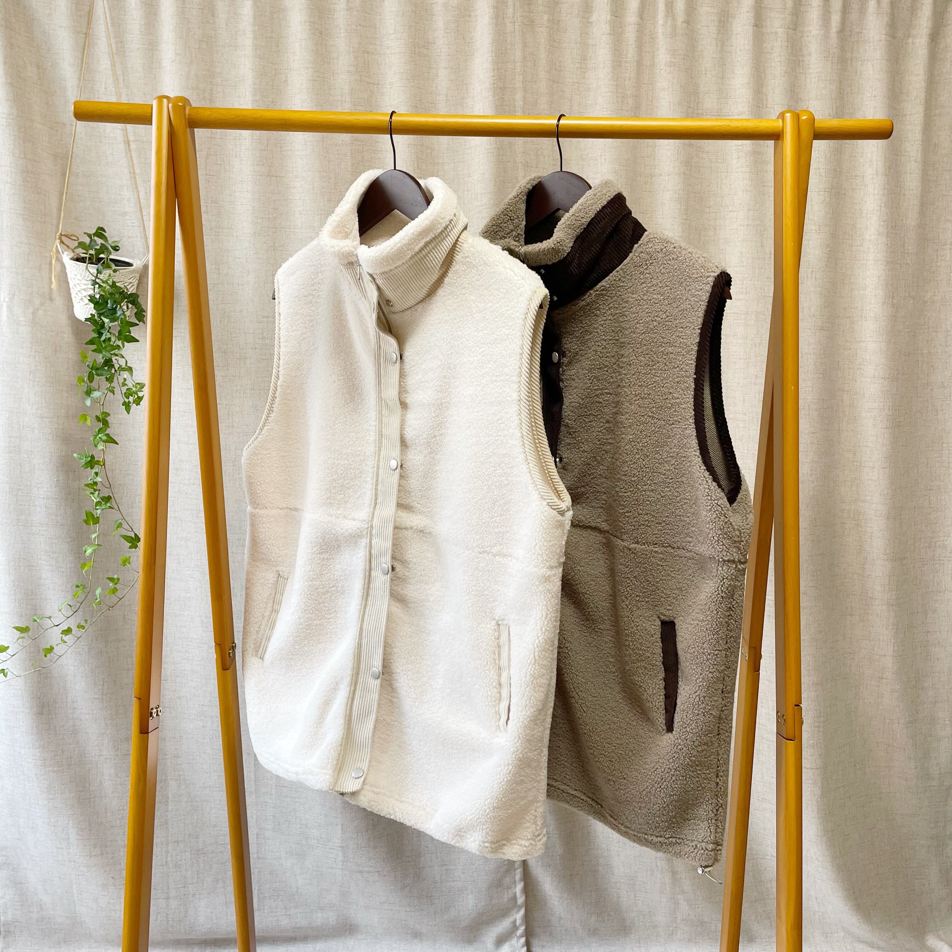 ふんわりした肌触りが特徴のボア。前立てがコーデュロイ素材を使用。