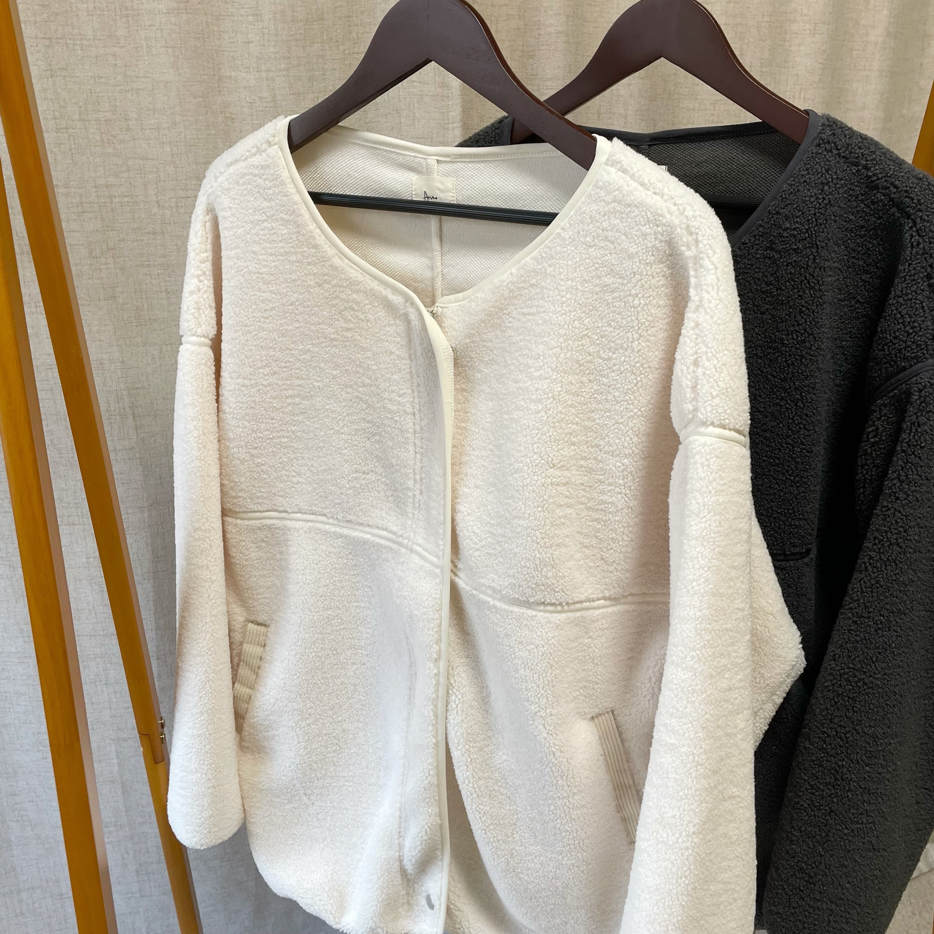 ふんわりした肌触りが特徴のボア。パイピングデザイン。
