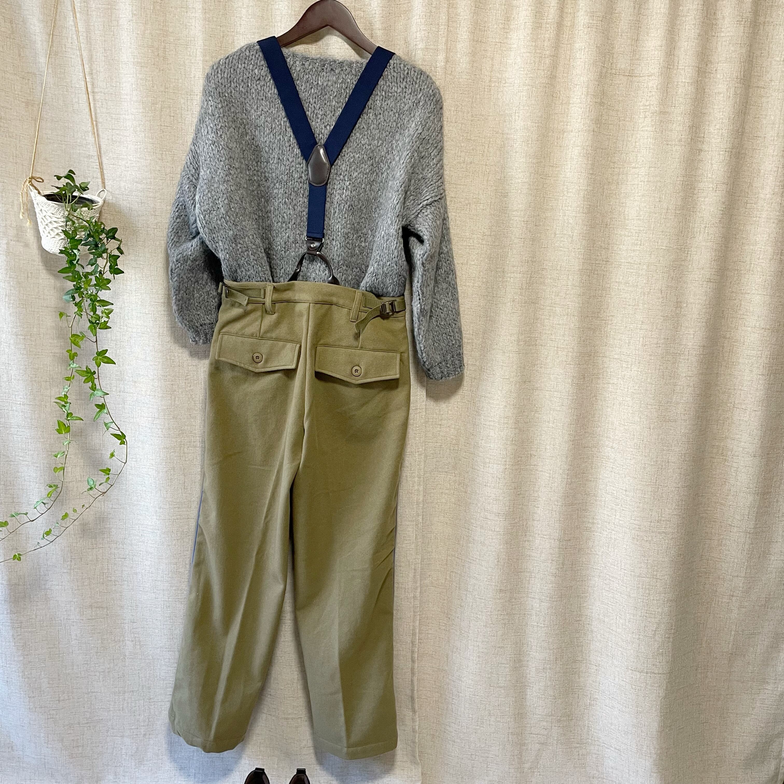柔らかいサージ素材を使用し、快適さとスタイルを両立させる一着。ミリタリー感を感じさせるデザインは、軍パンをベースにしており、普段使いから特別な日まで幅広いシーンで活躍します。