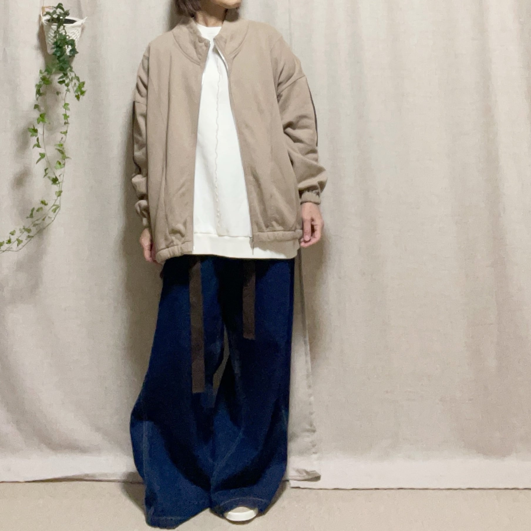 スポーティなライン使いがアクセントになり、カジュアルにもモードにも映える一枚。