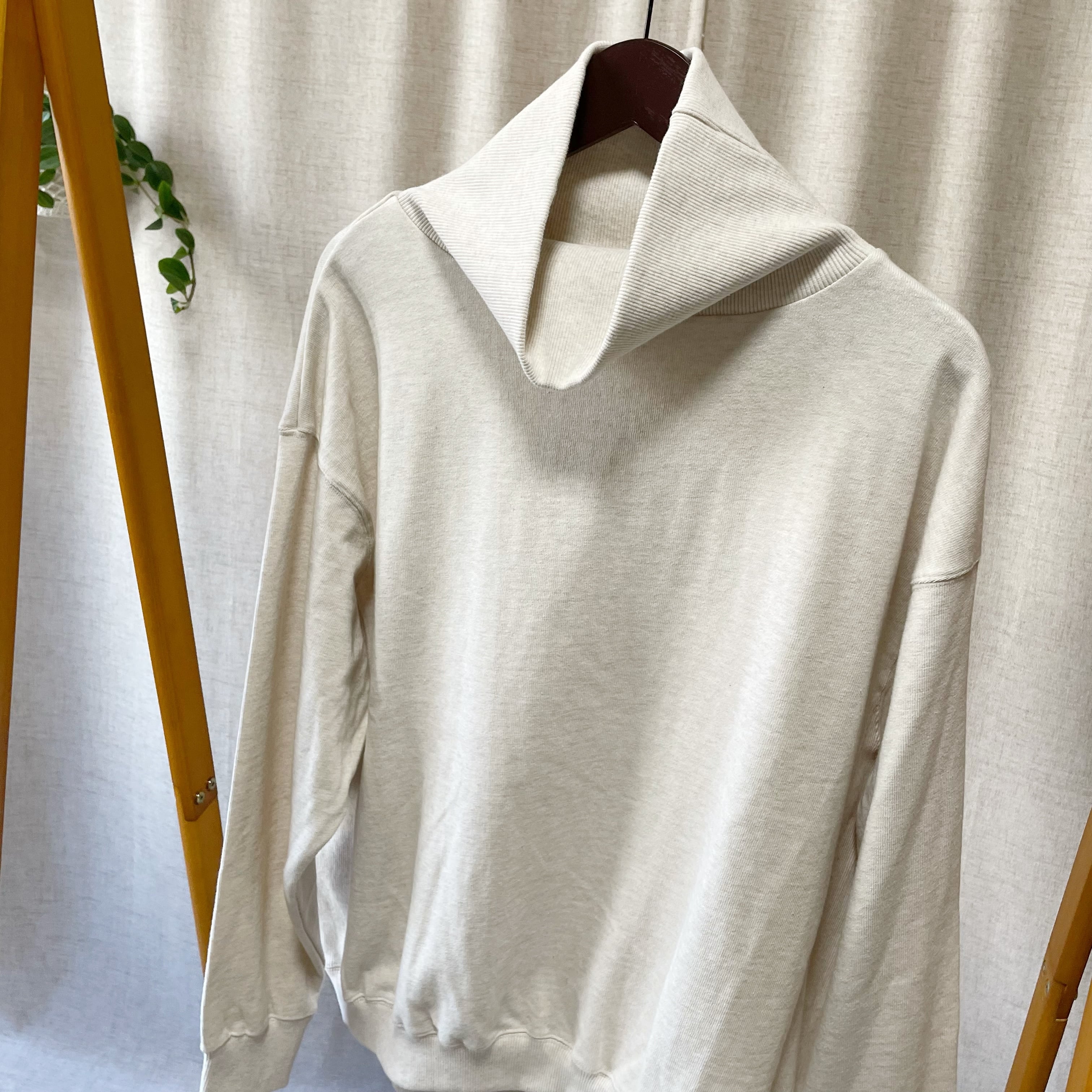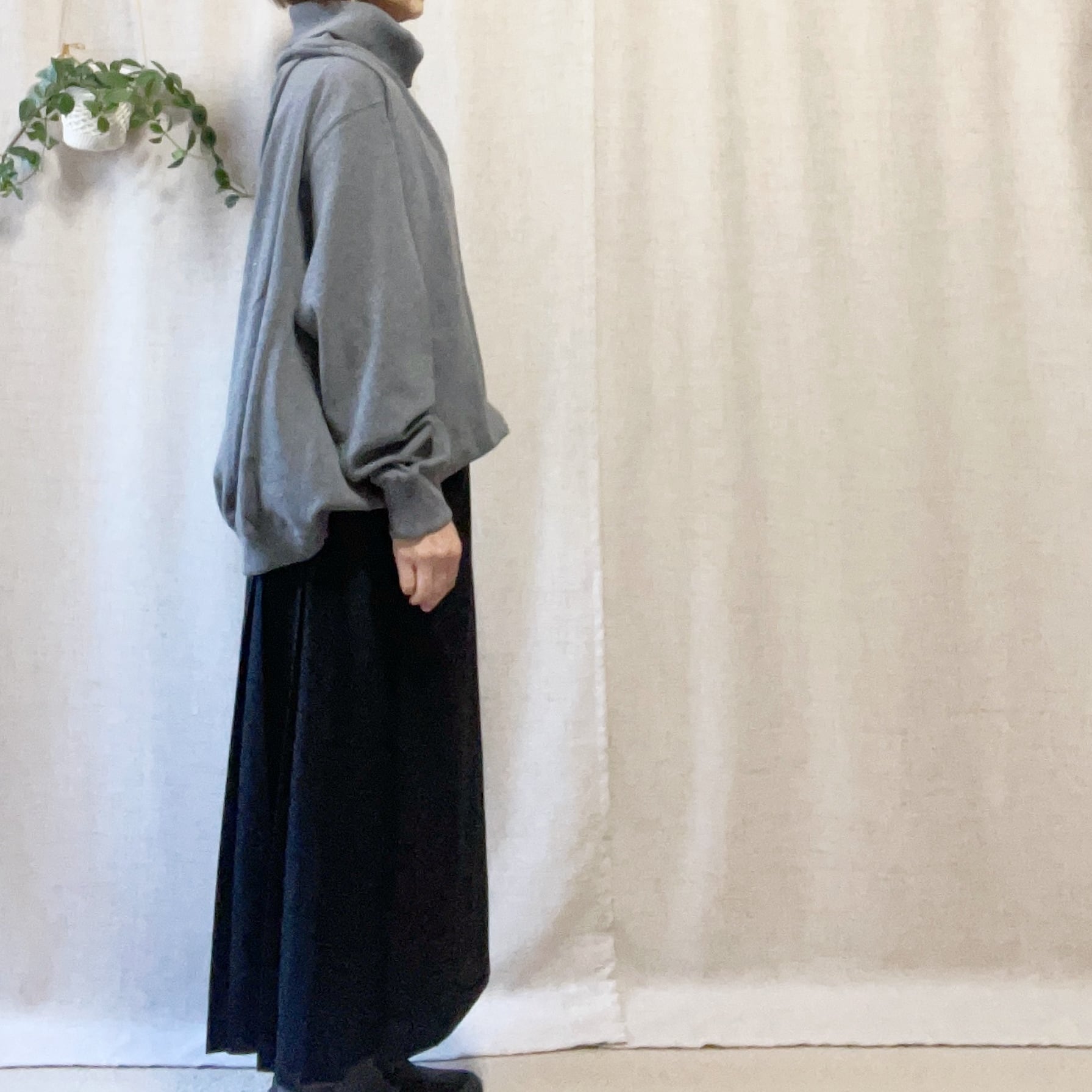 厚地の天竺素材で保温性もあり、秋冬にぴったり。裾のバルーンシルエットが自然な抜け感を演出。