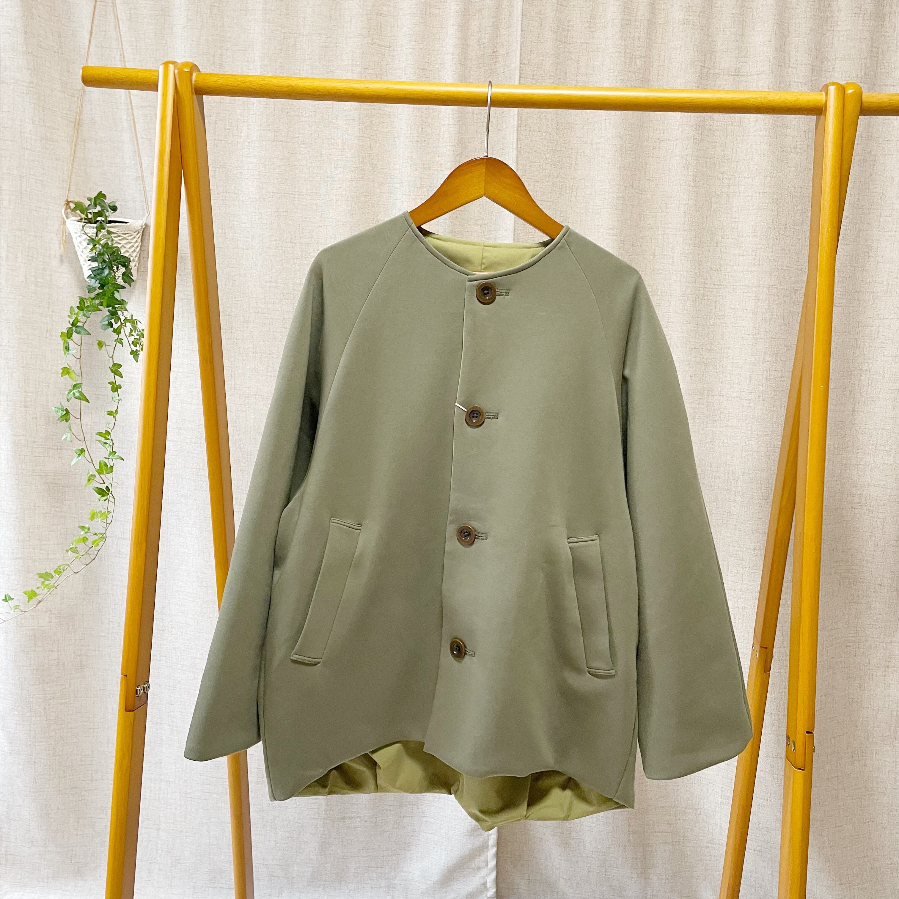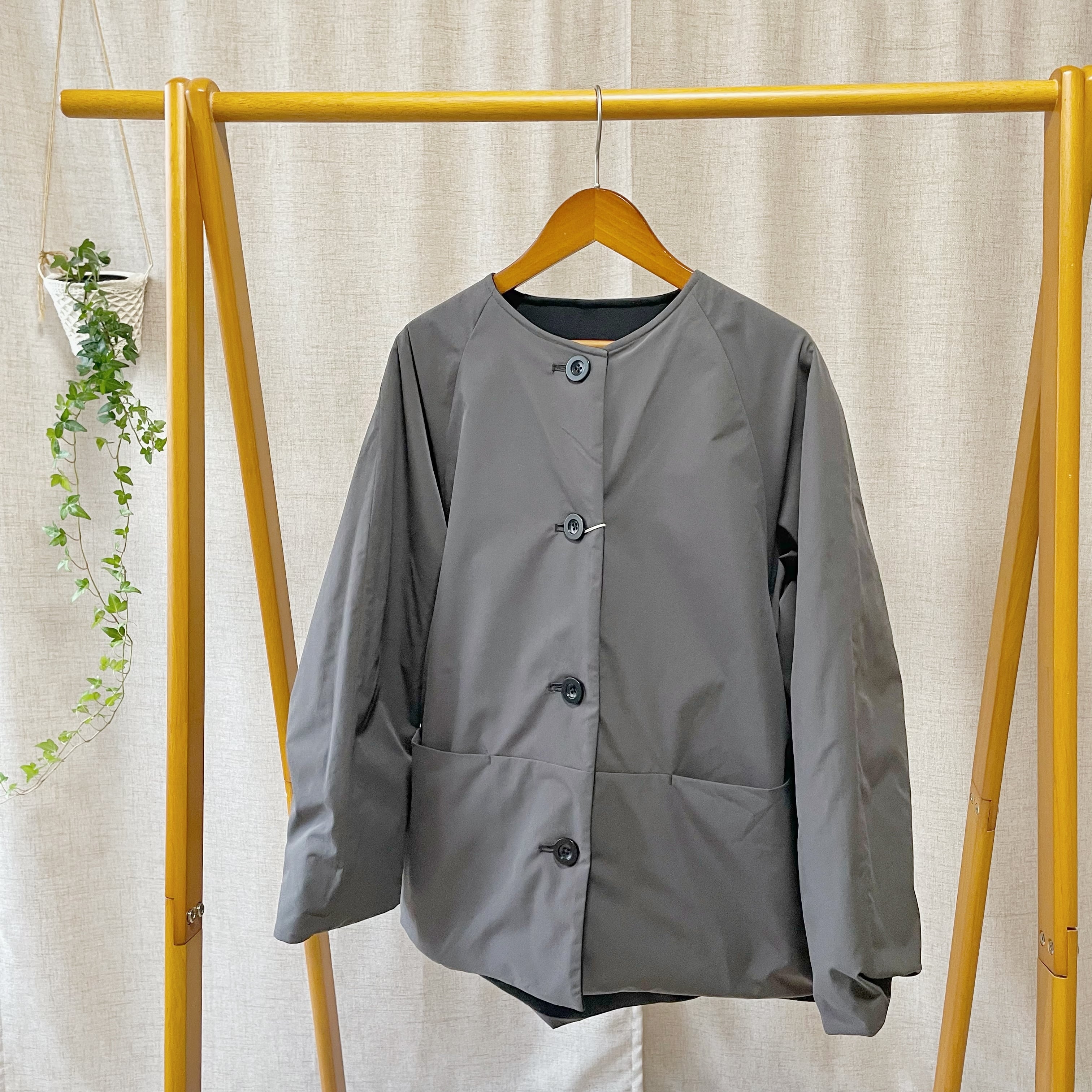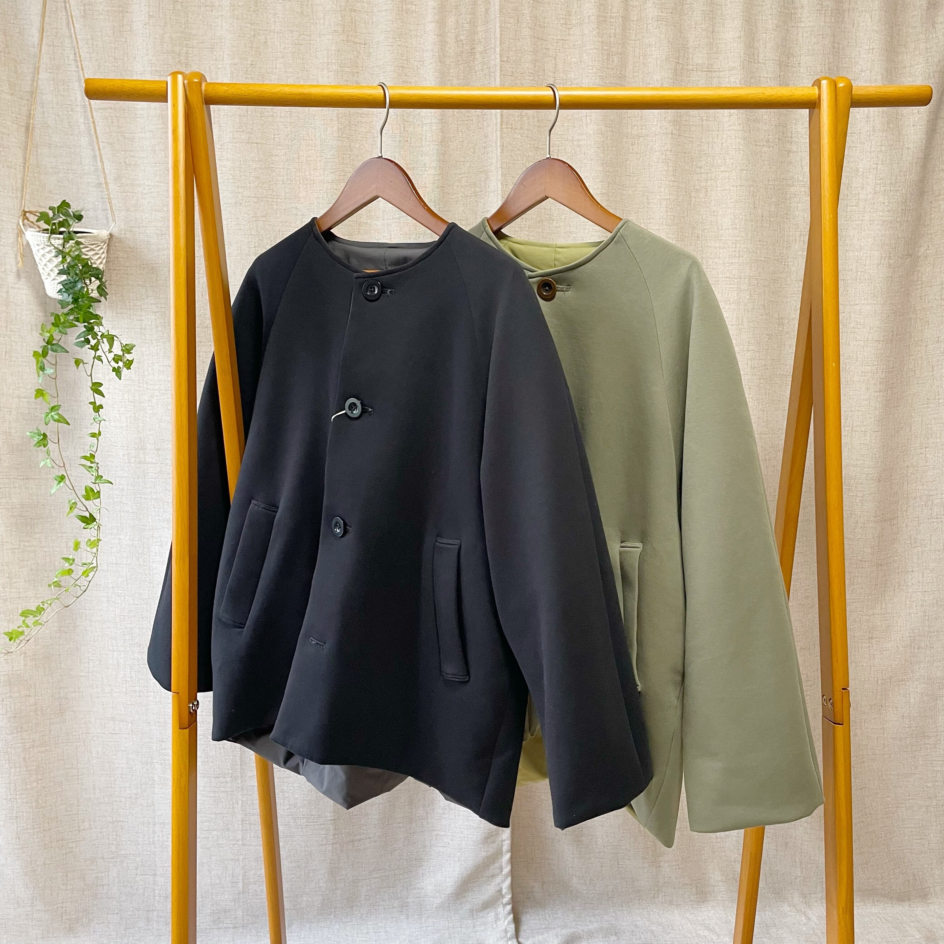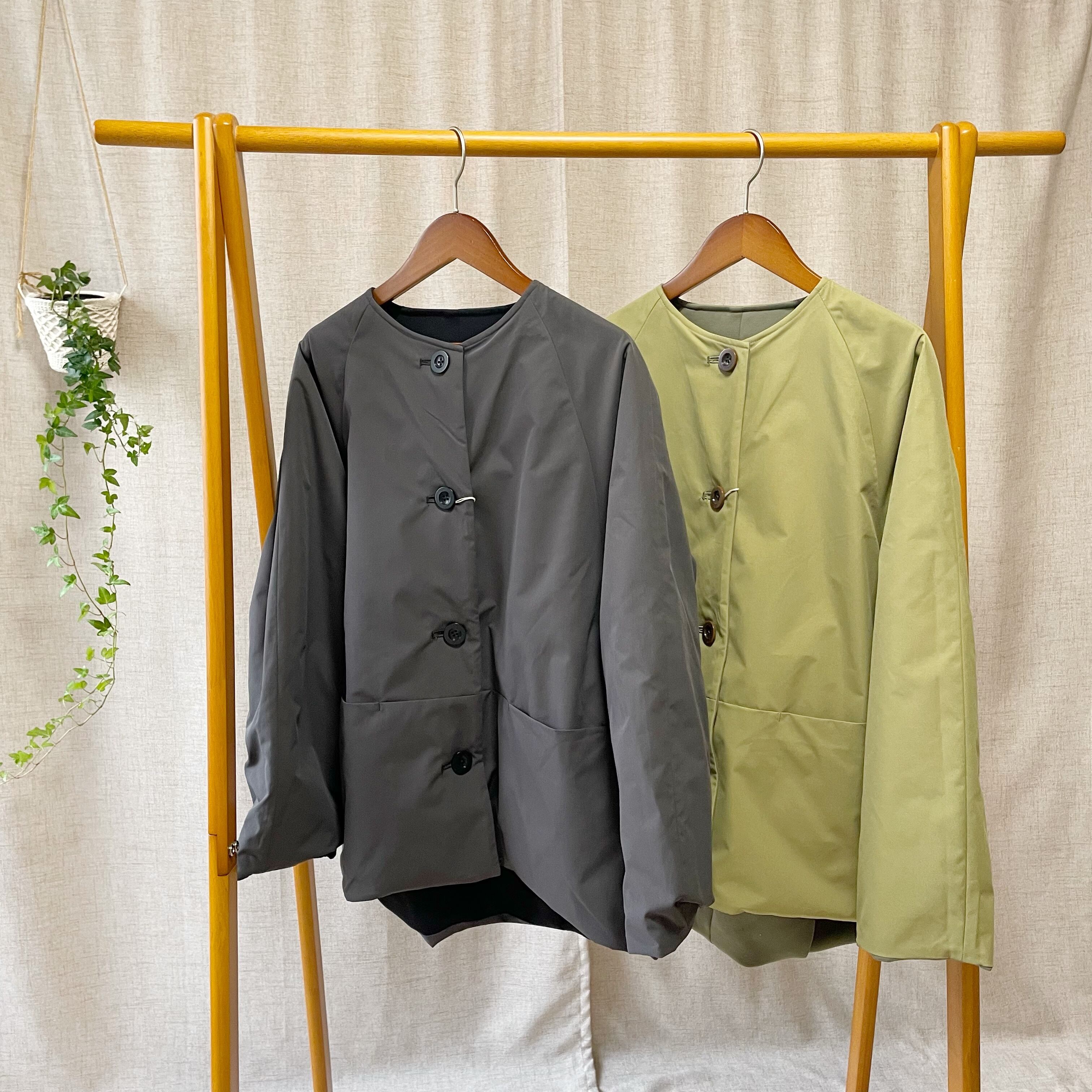 コットンのようなポリエステル素材の裏地との2通りをお楽しみいただけるリバーシブルコートです。