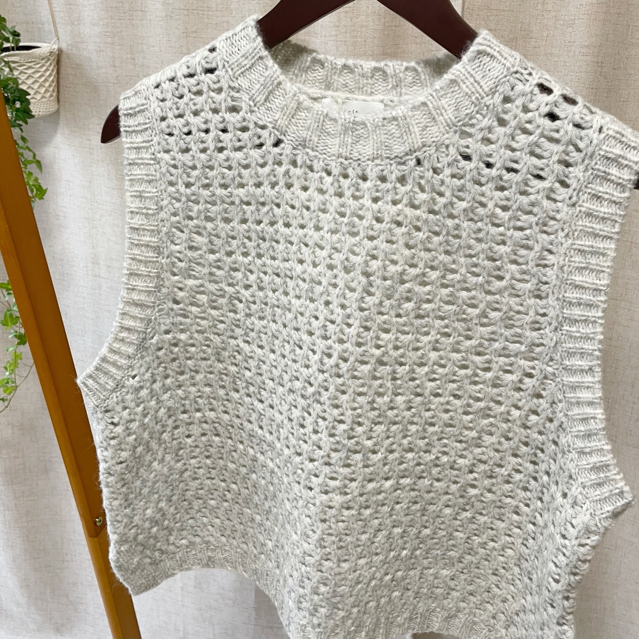 prit 1/3ファインメリノウールナイロン3Gワッフル編み クルーネックベスト P906103