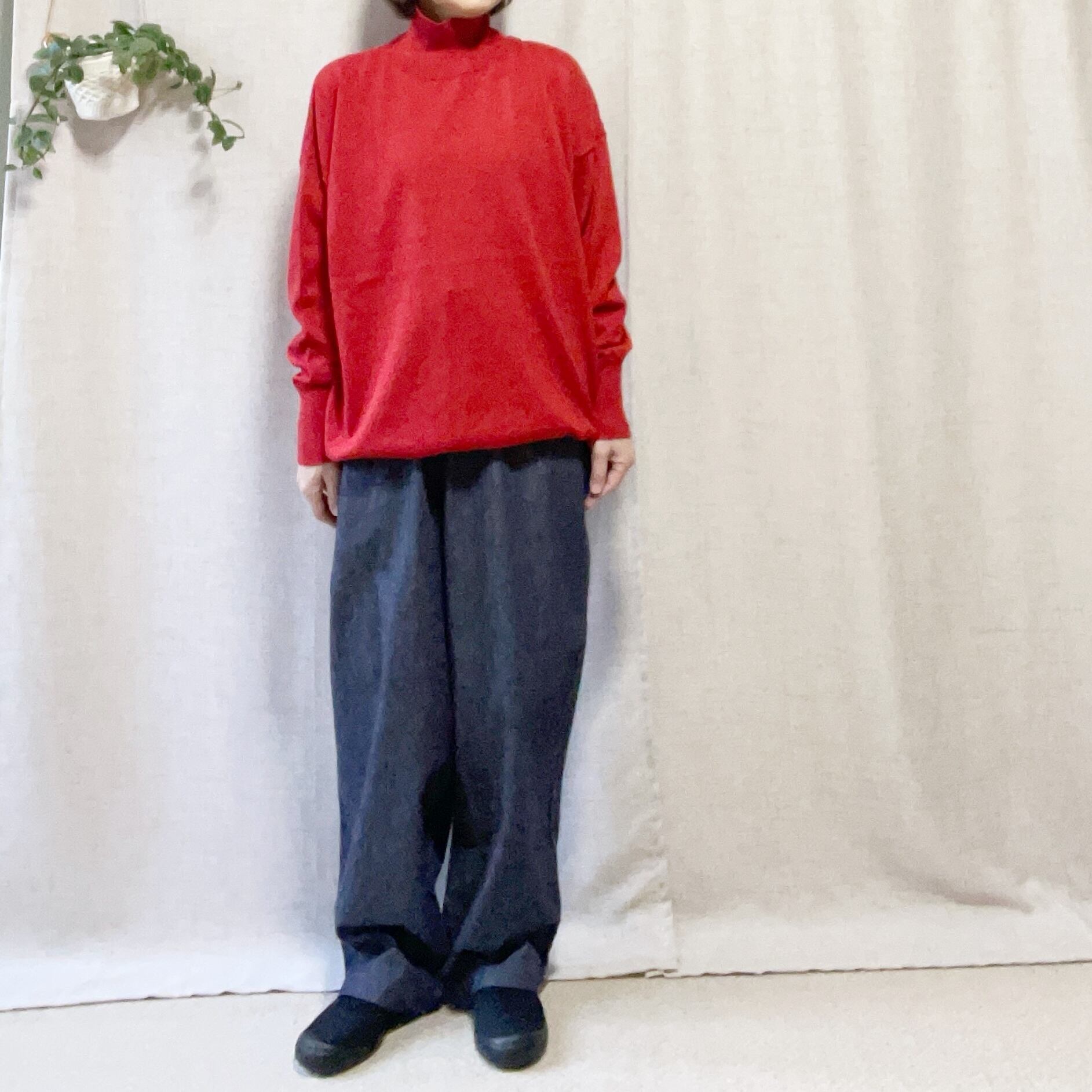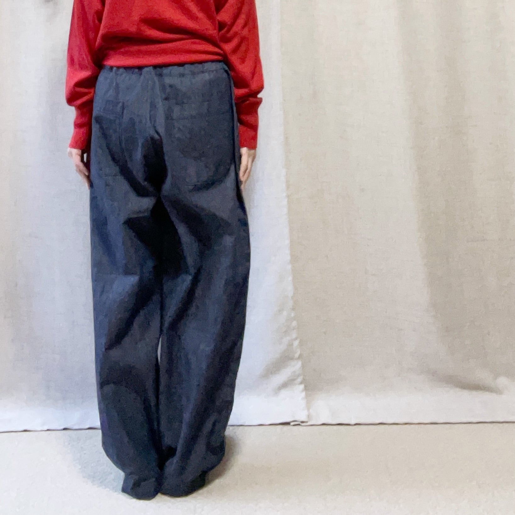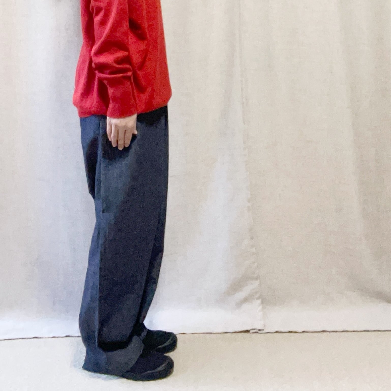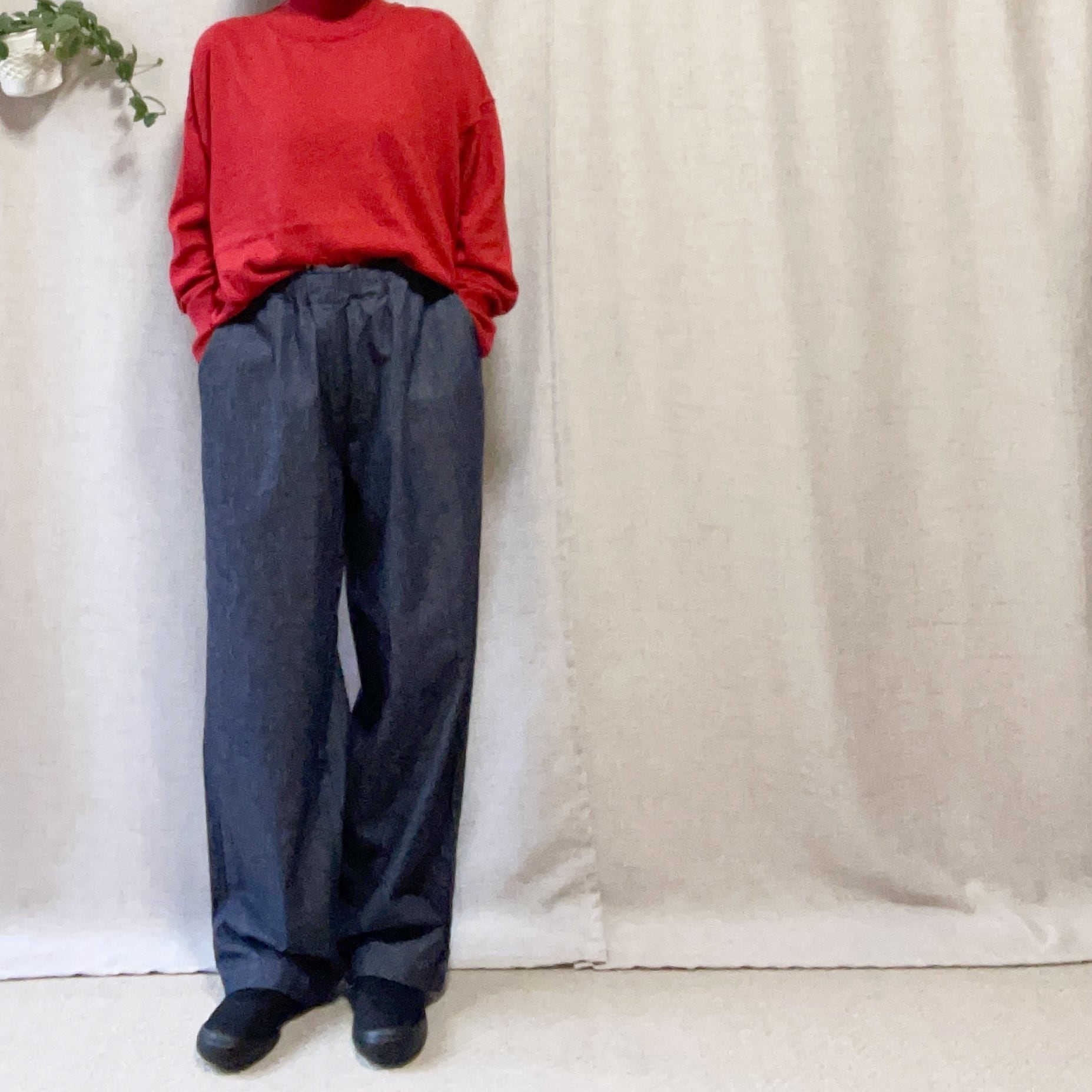 ヒップから太ももにかけてはゆとりのあるサイジングながら、裾にかけては細くなるように収めているので、どなたでも心地よく履くことができて、自然とスタイリングのバランスがとりやすいです。