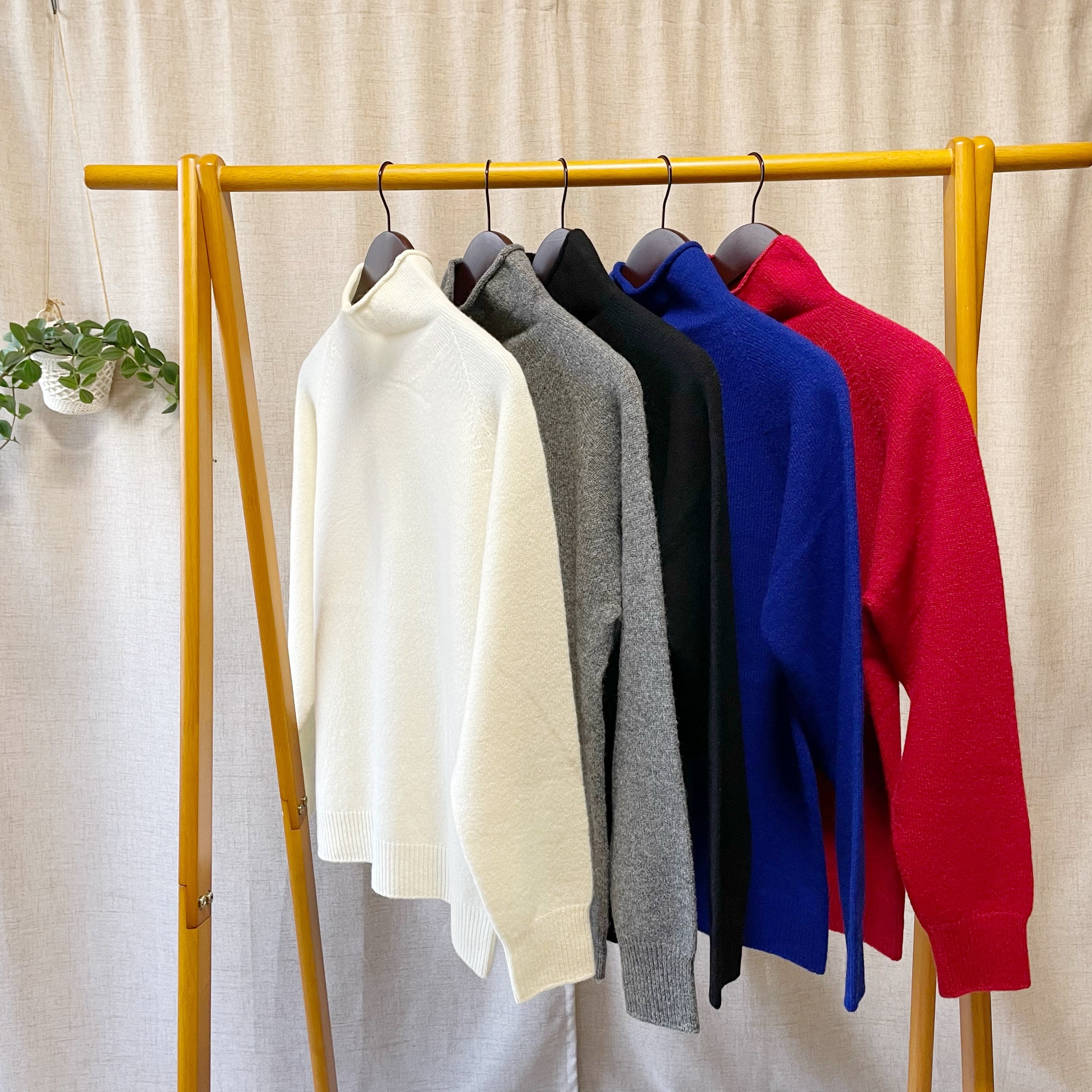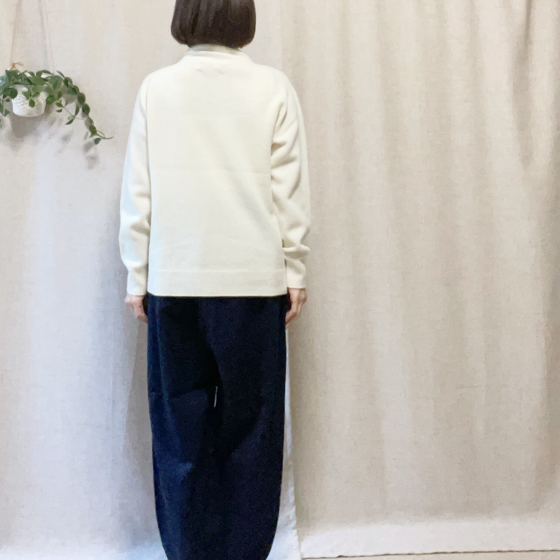 ウール100%で暖かくゆるめのタートルデザインがポイントになります。