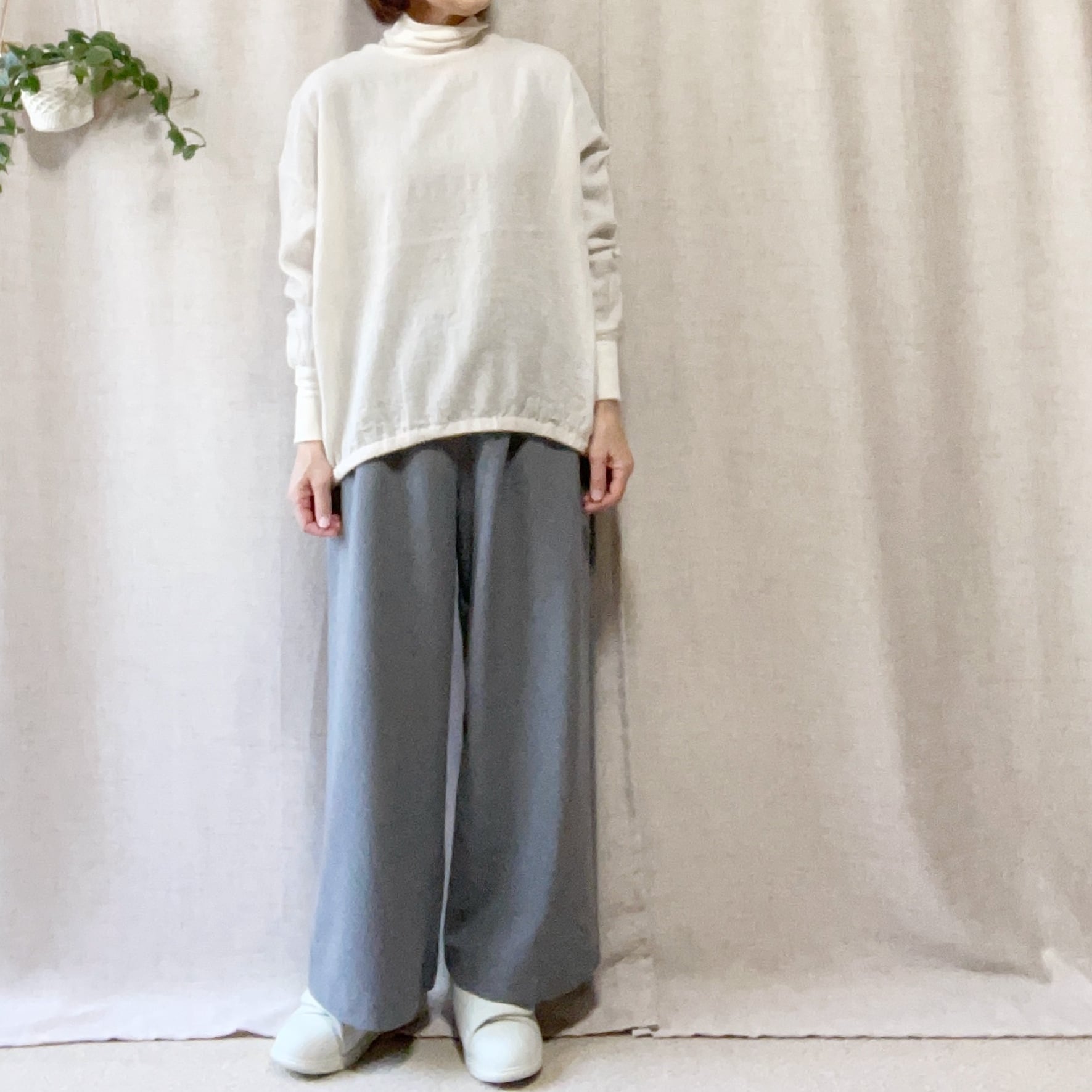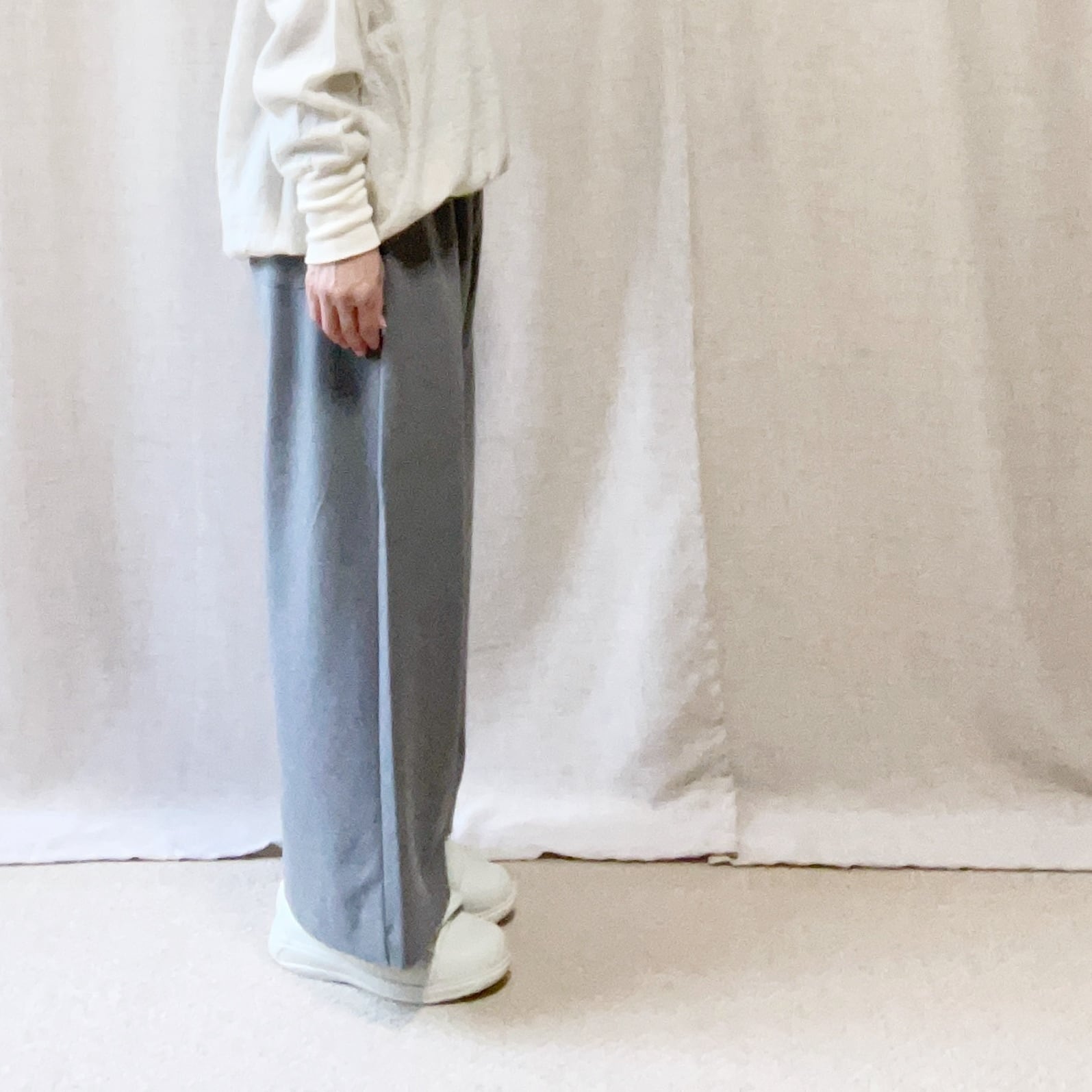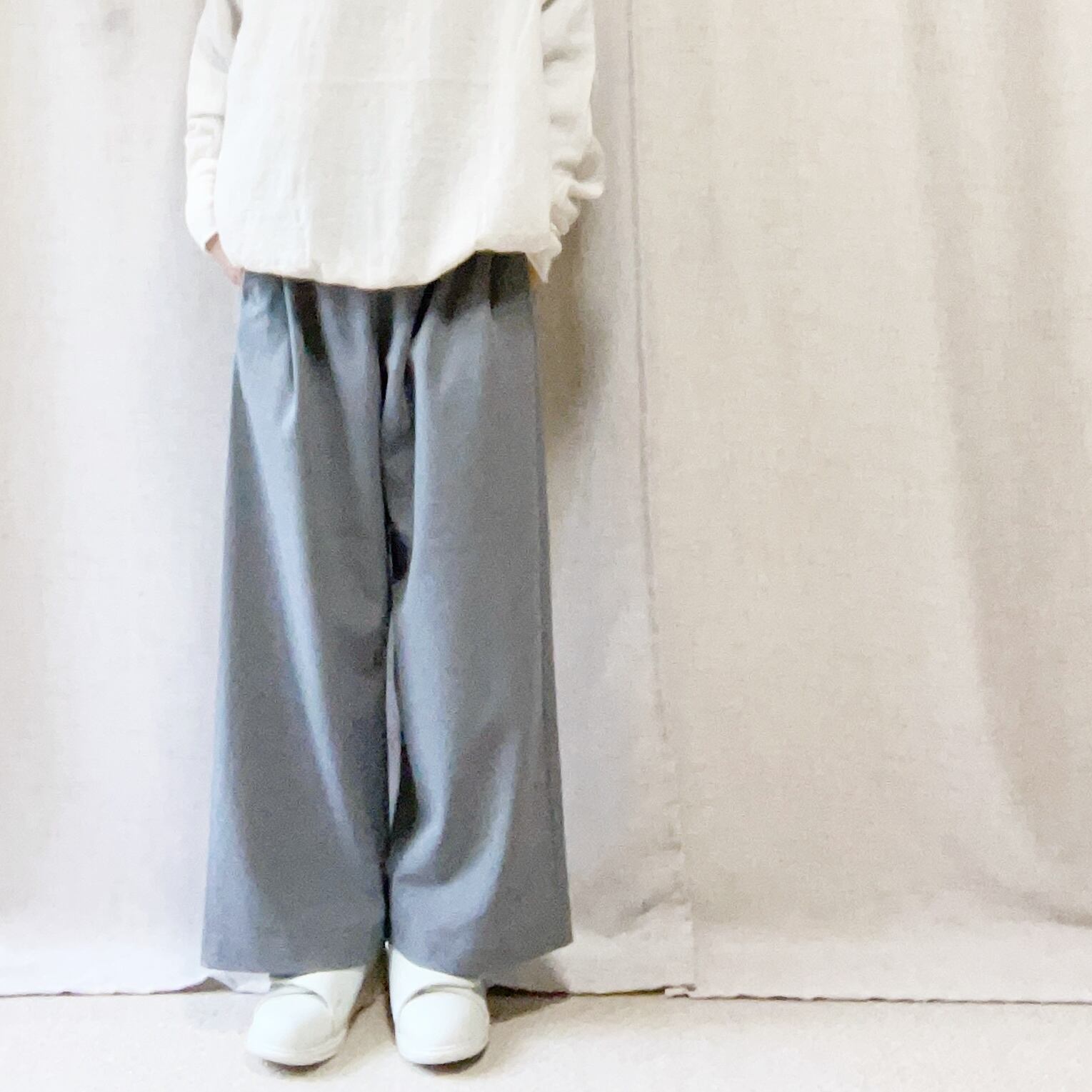 ヒップやワタリにゆとりがあり、裾にかけて少し広がるシルエットのきれいなパンツです。