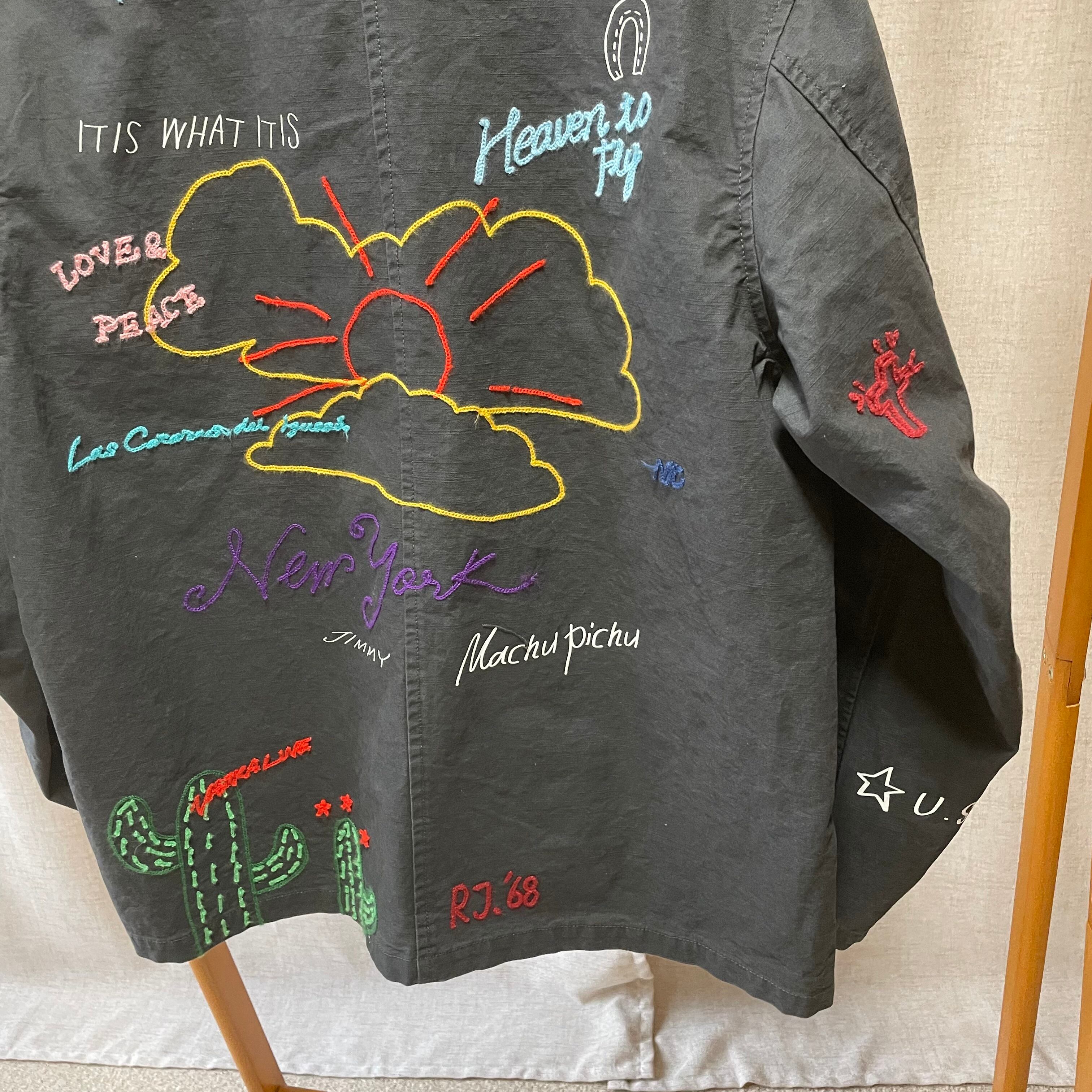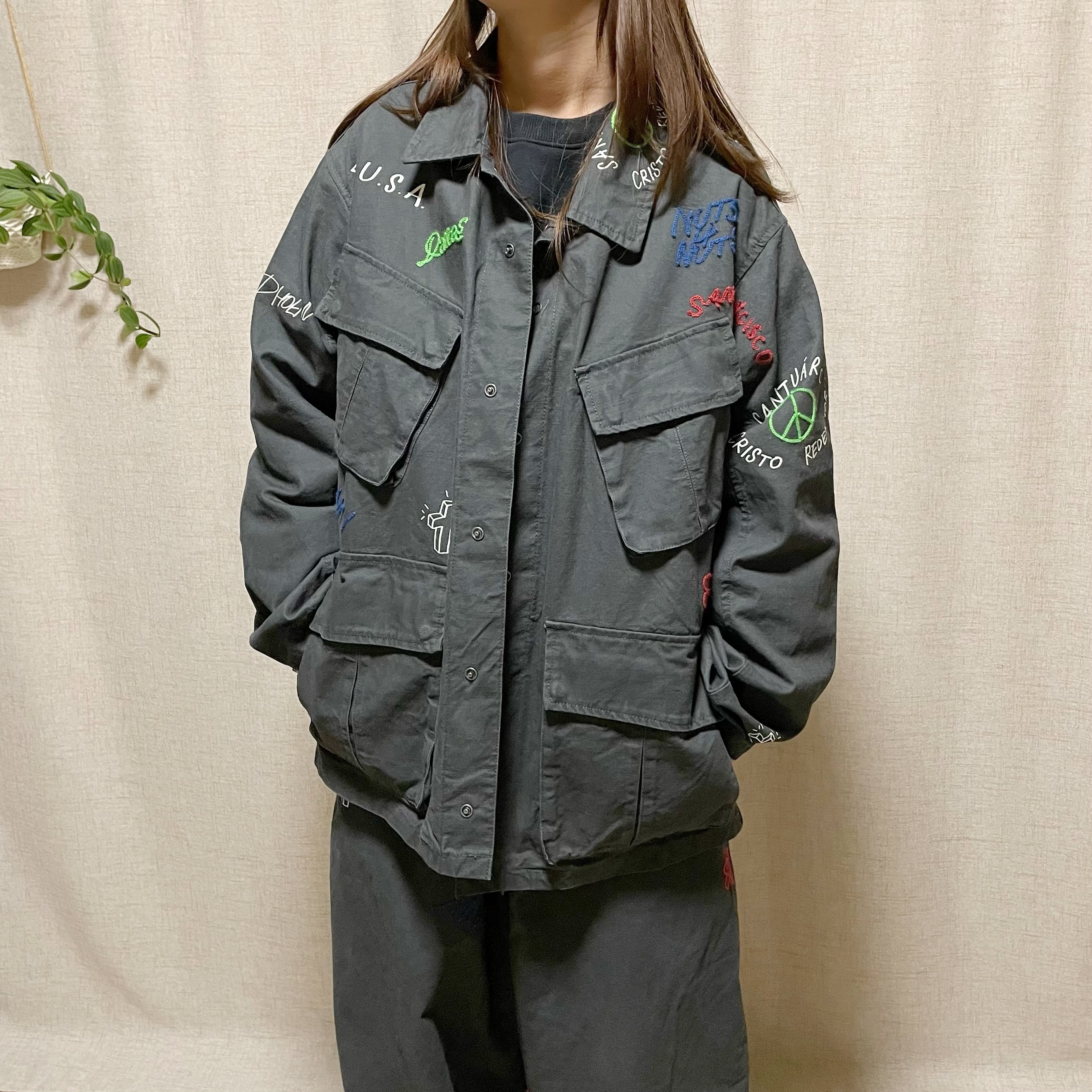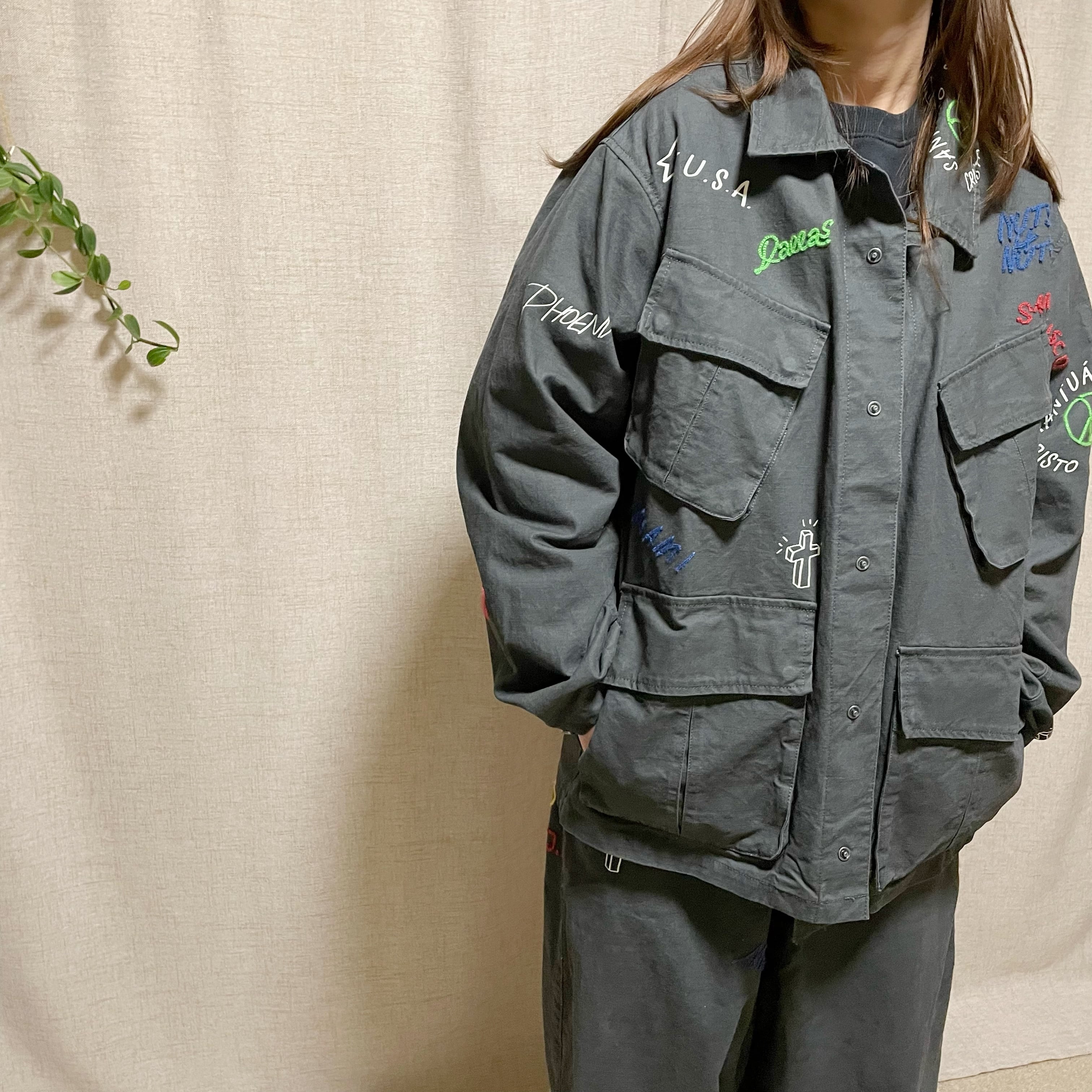 オリジナルのリメイク刺繍が特徴的なファティーグジャケット。