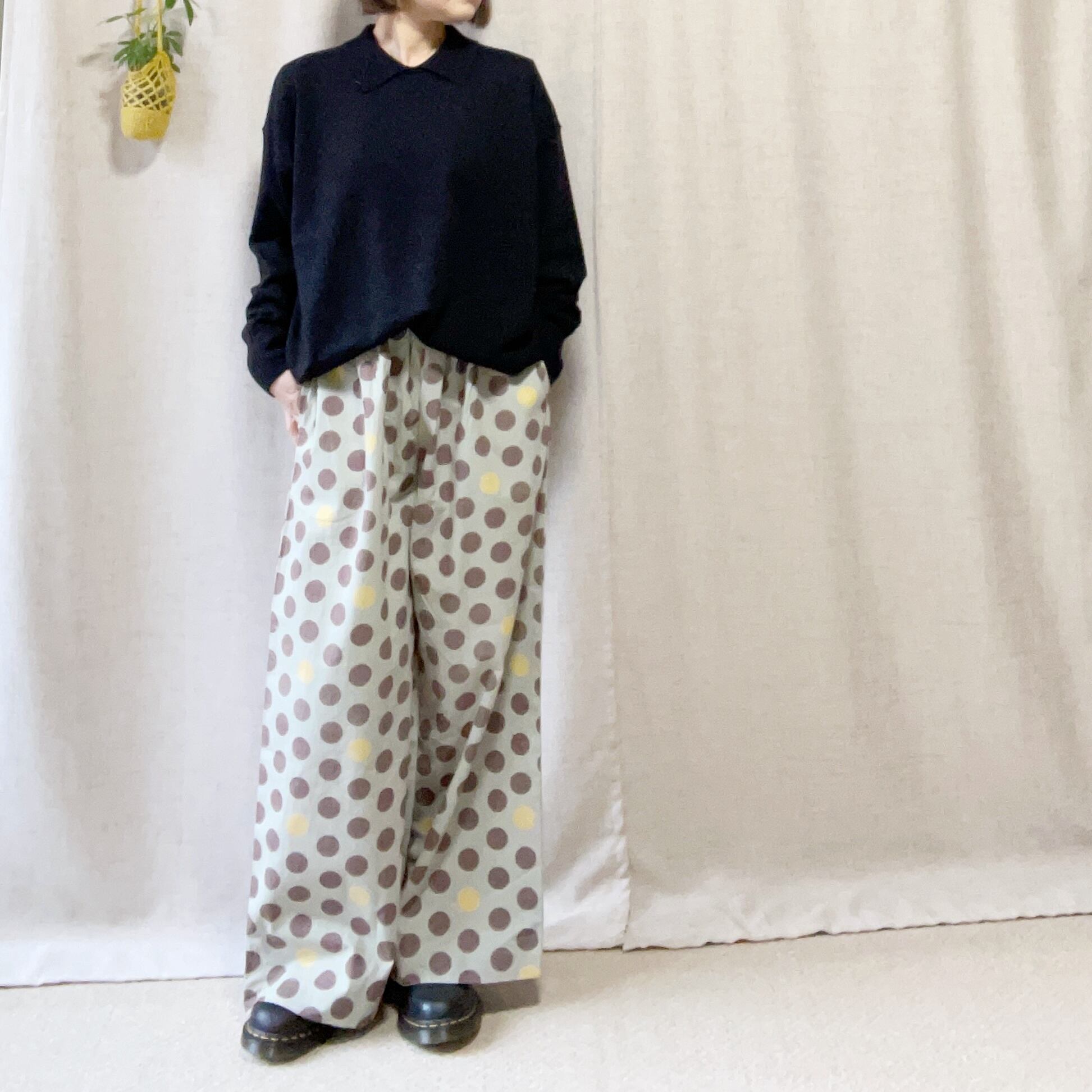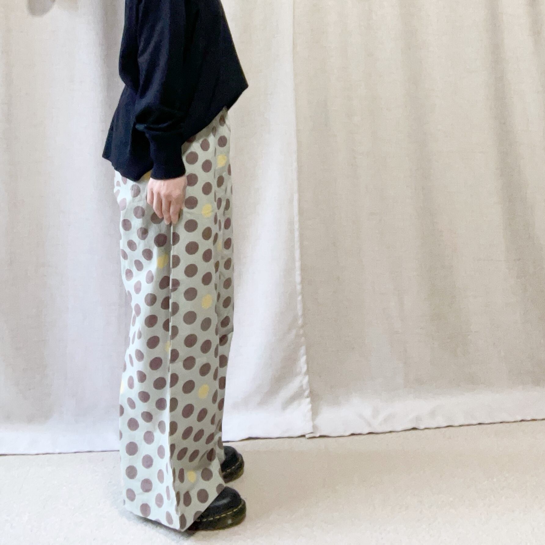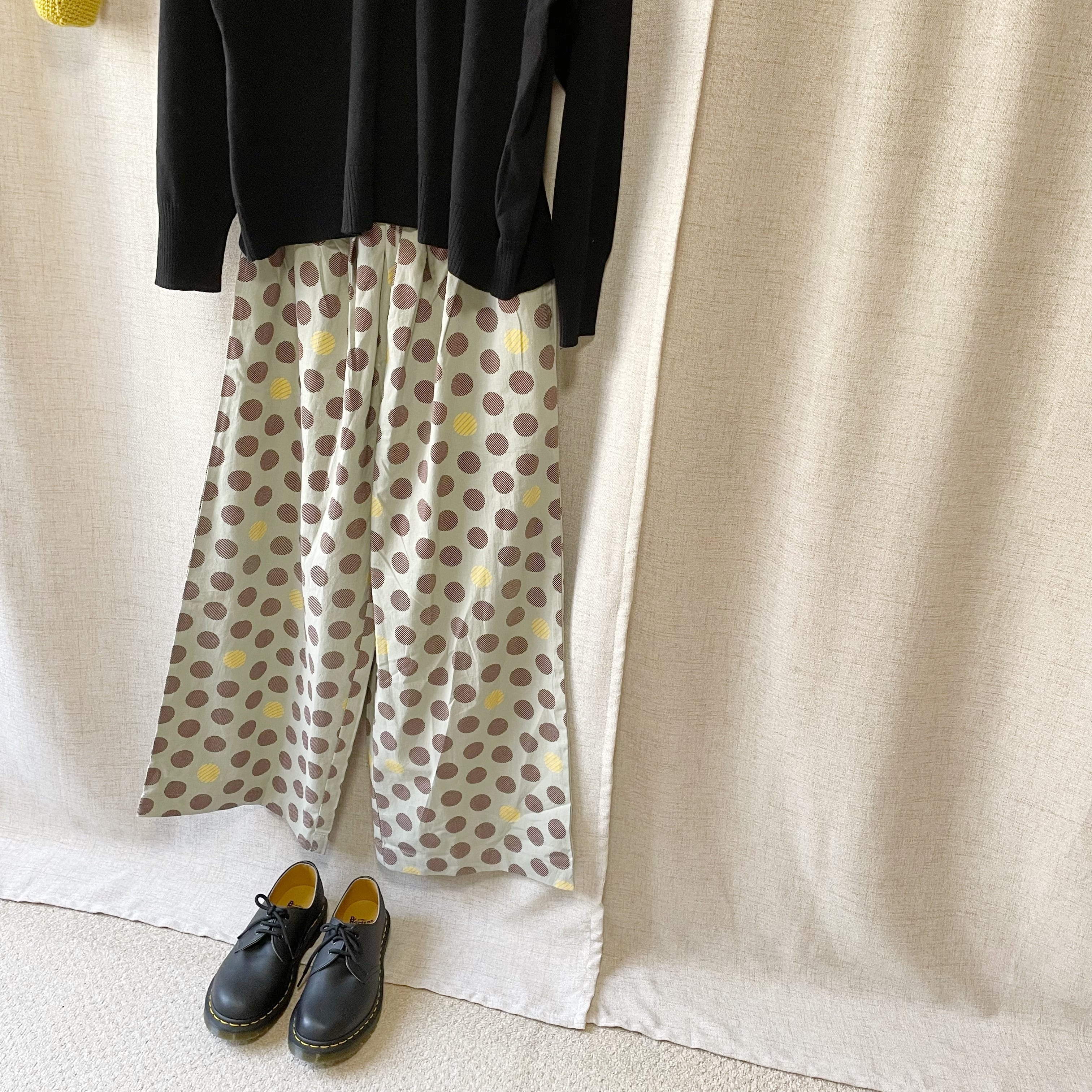 fu_dueka:: シーチングドットプリントワイドパンツ 1722387