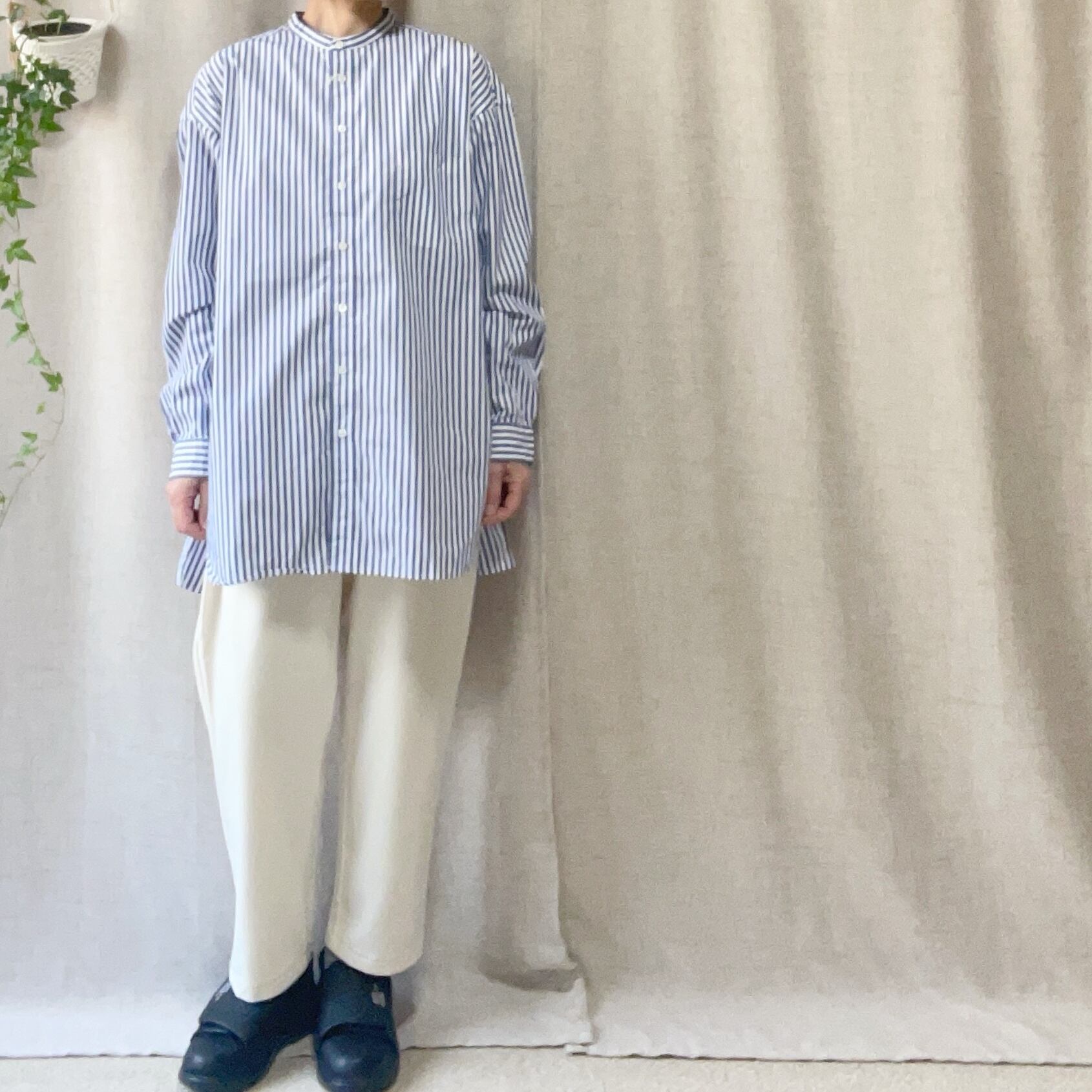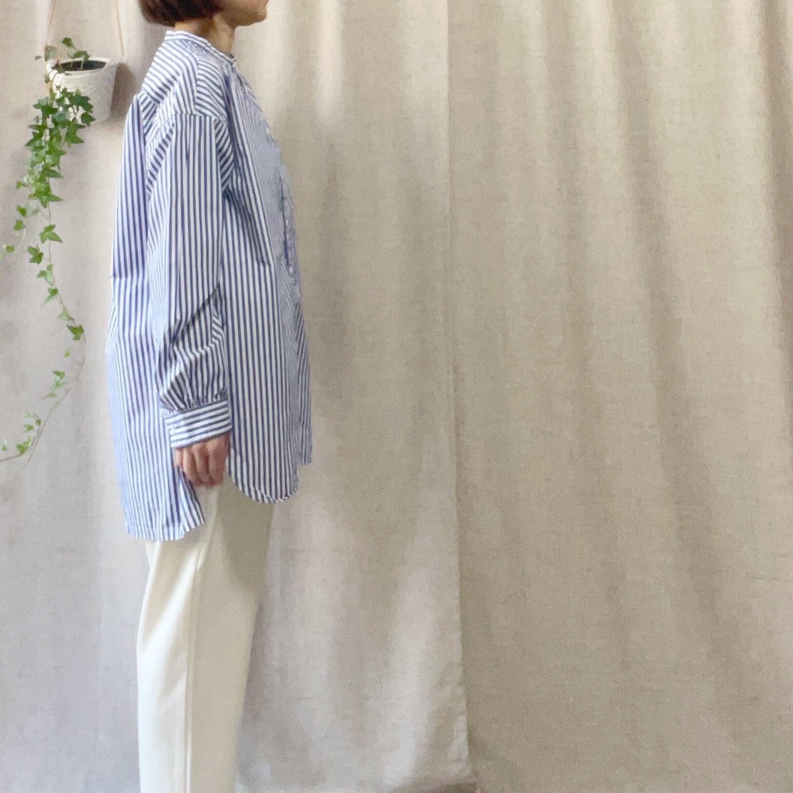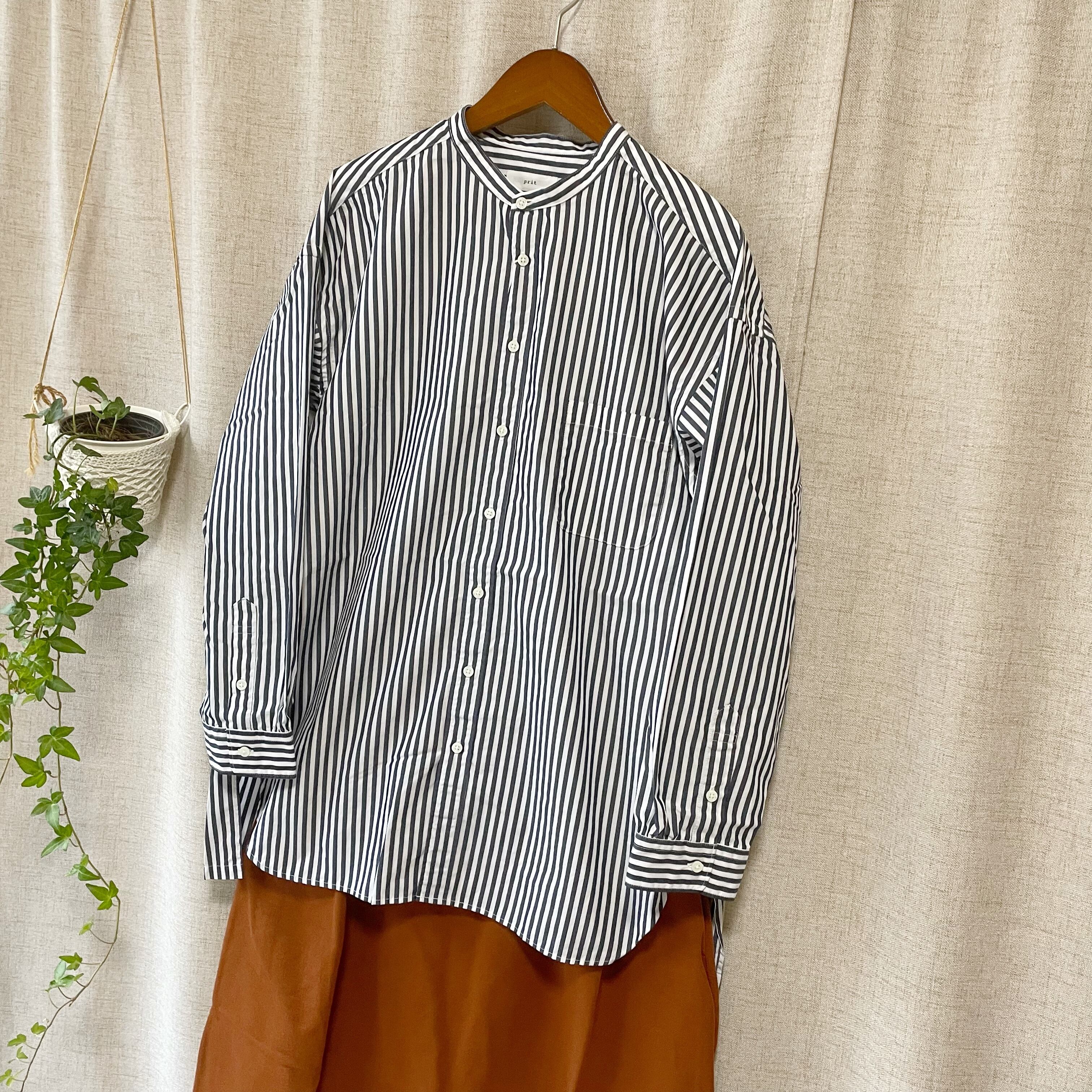 prit 40/1ブロードストライプ スタンドカラービッグシャツ P80651