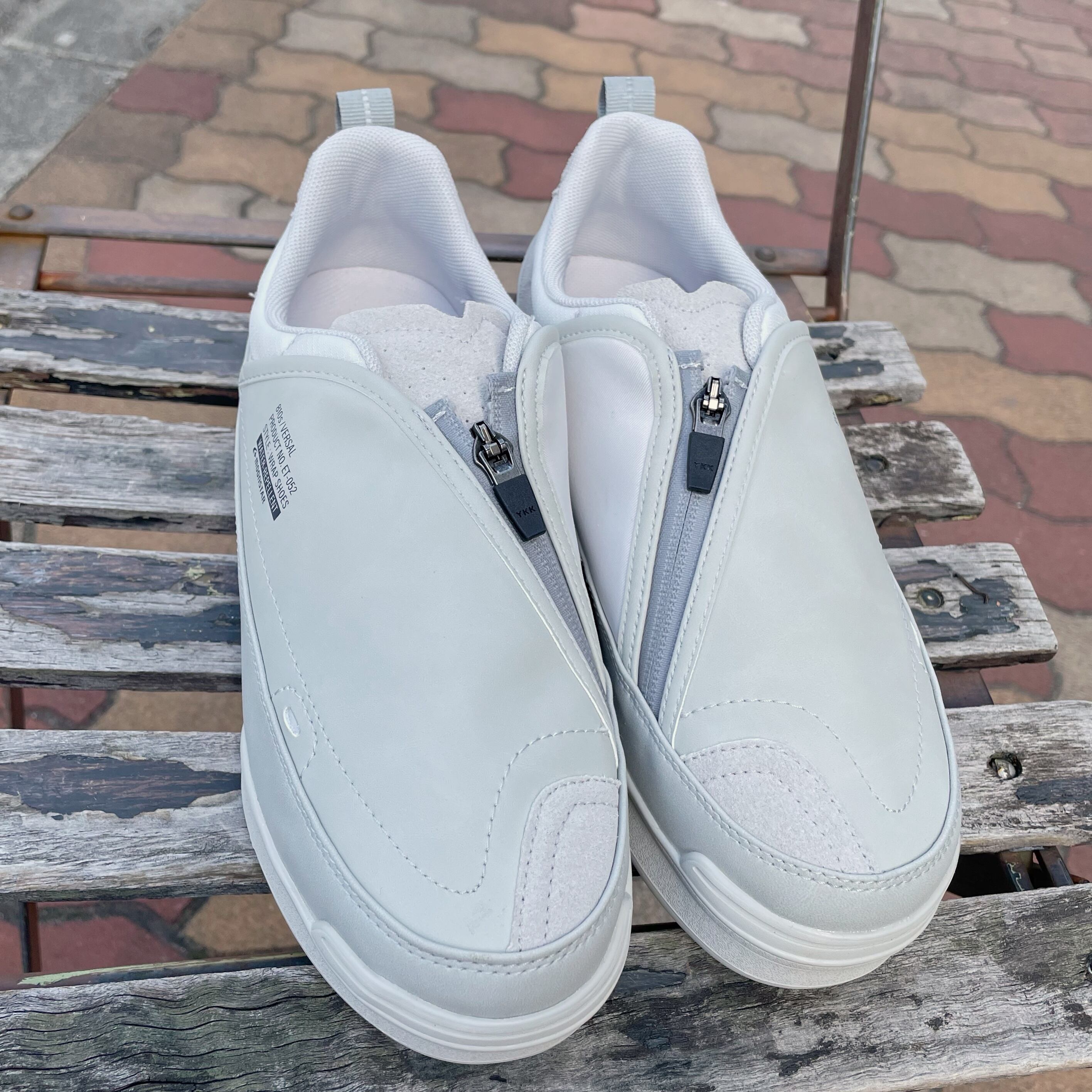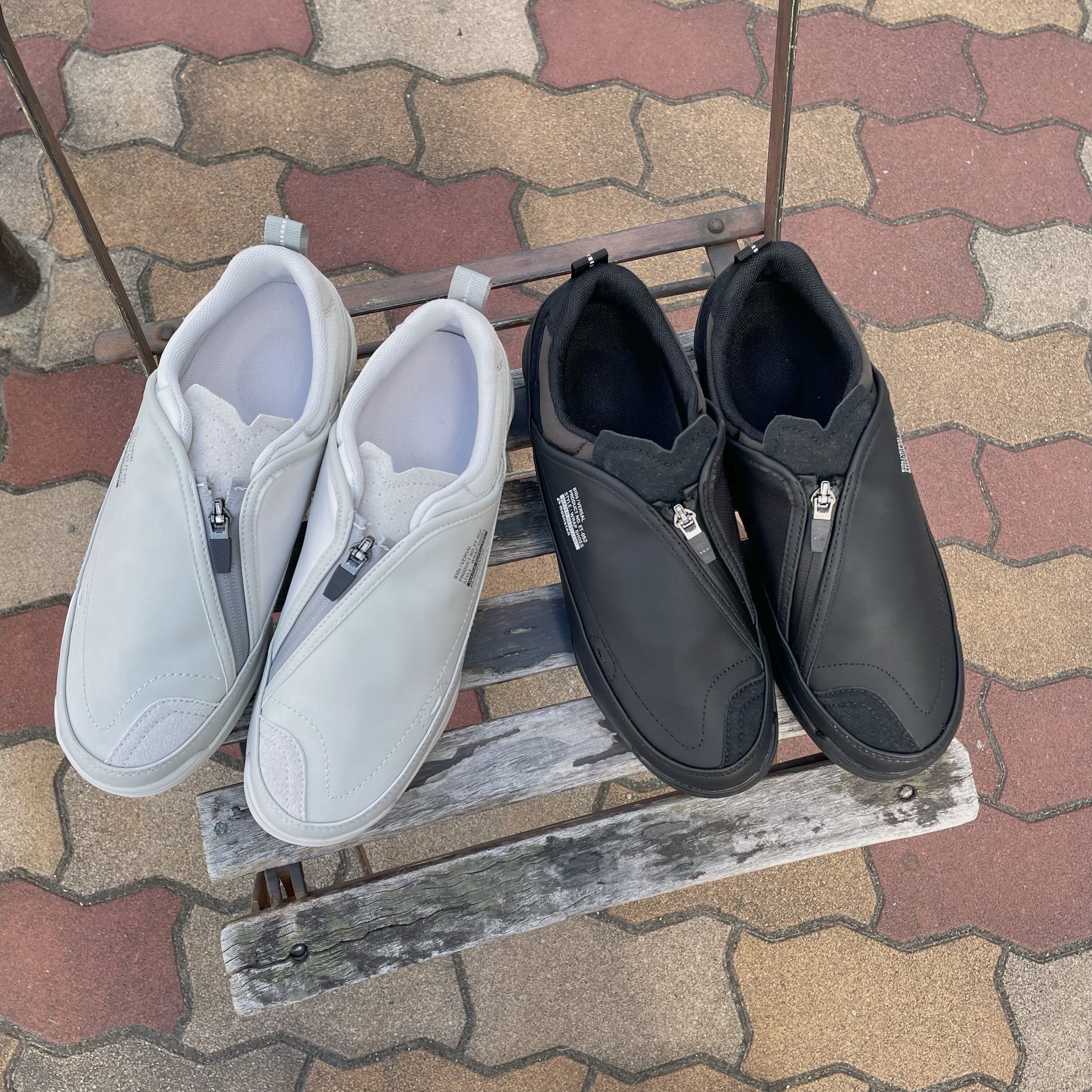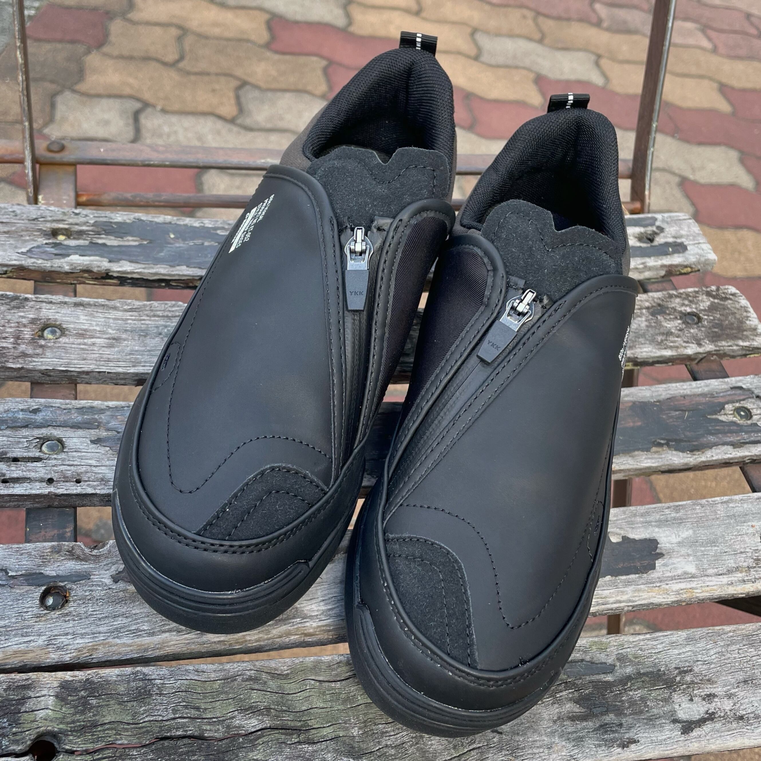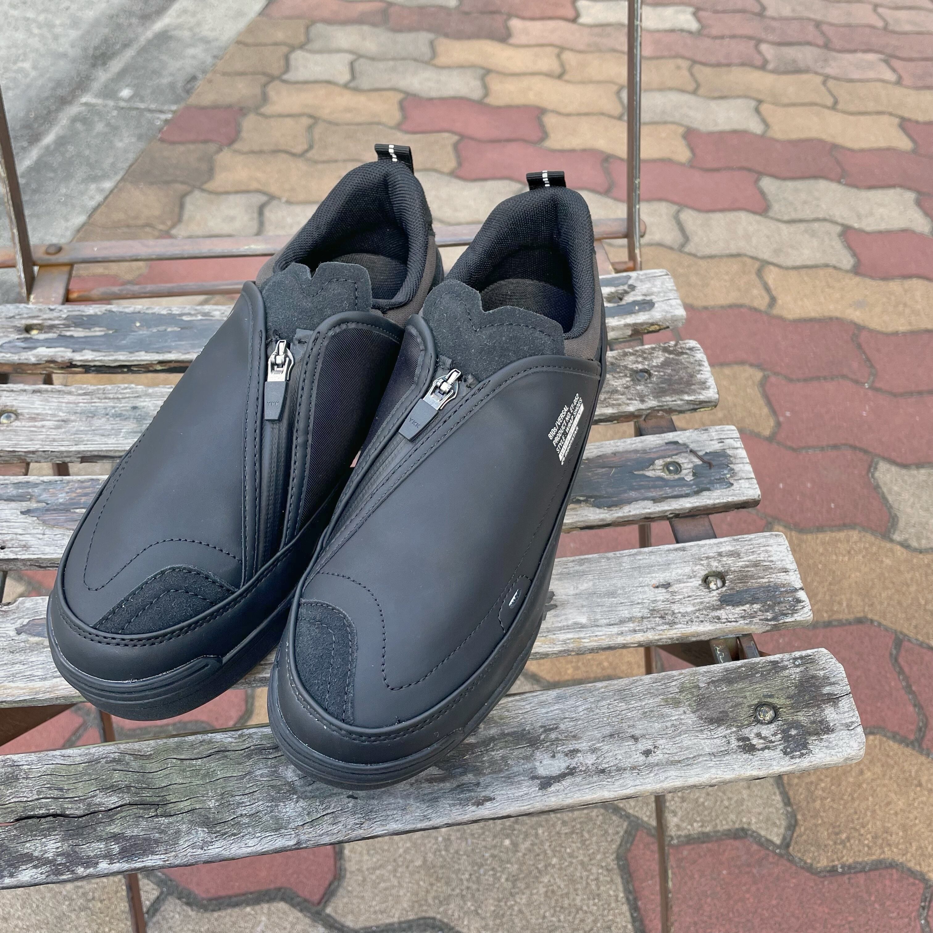 ユニバーサルデザインの心地良さをデイリーユースに。防水フィルムを用いたアッパーとスムーズな脱ぎ履きを可能にする構造で、日々の動作を快適にサポート。靴内部は通気性の高いメッシュ材で構成されたスリッポン構造で、足を包み込み適度なフィット感を実現。薄型ながら優れたクッション性を備えたソールユニットが足裏への負担を軽減し、軽快で快適な履き心地を提供。機能性をミニマルにまとめたジッパータイプ。*4cm4時間の防水設計