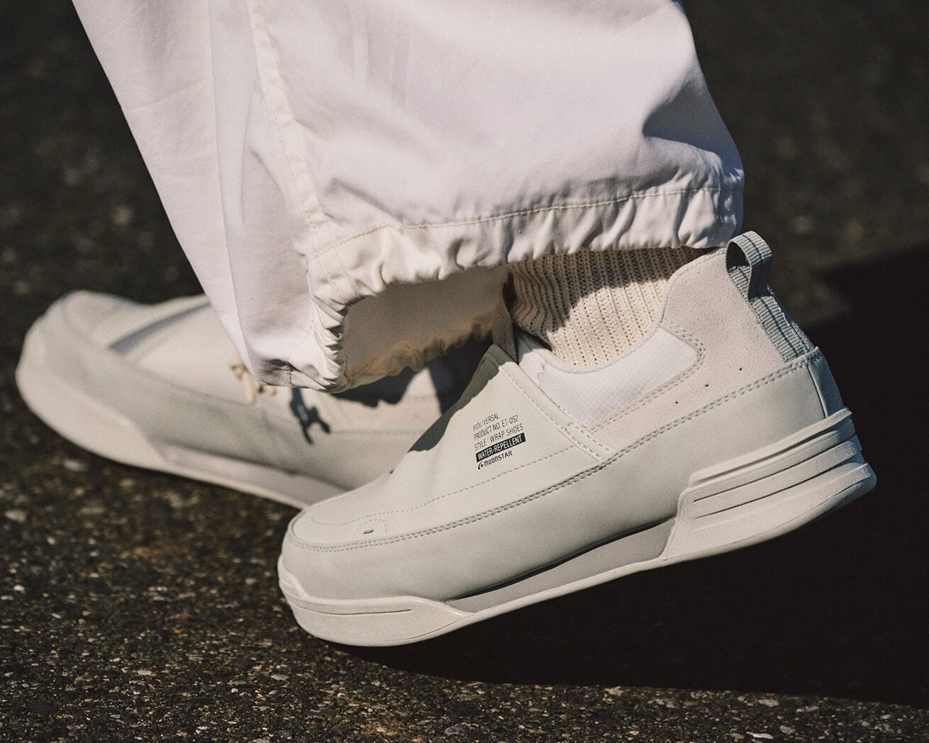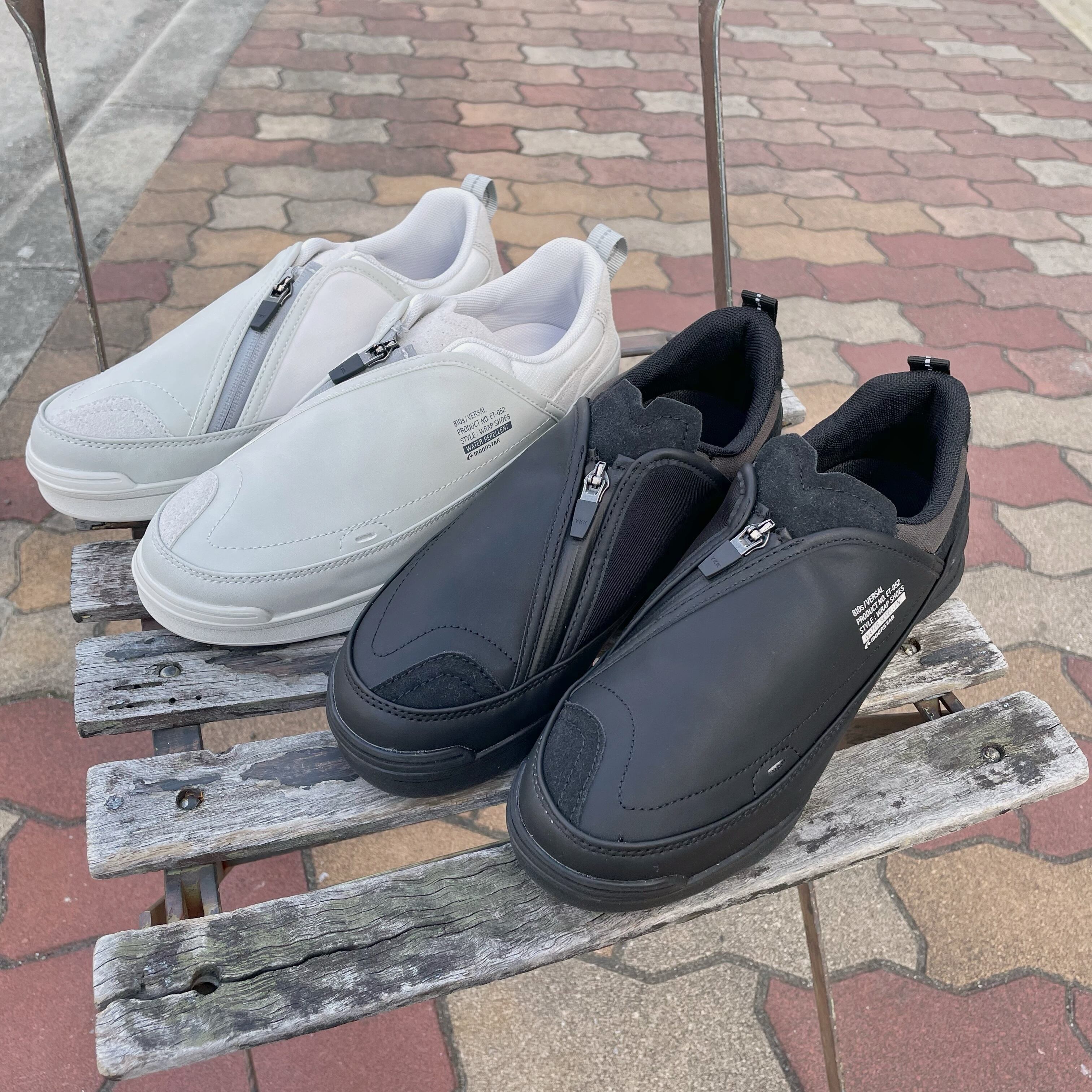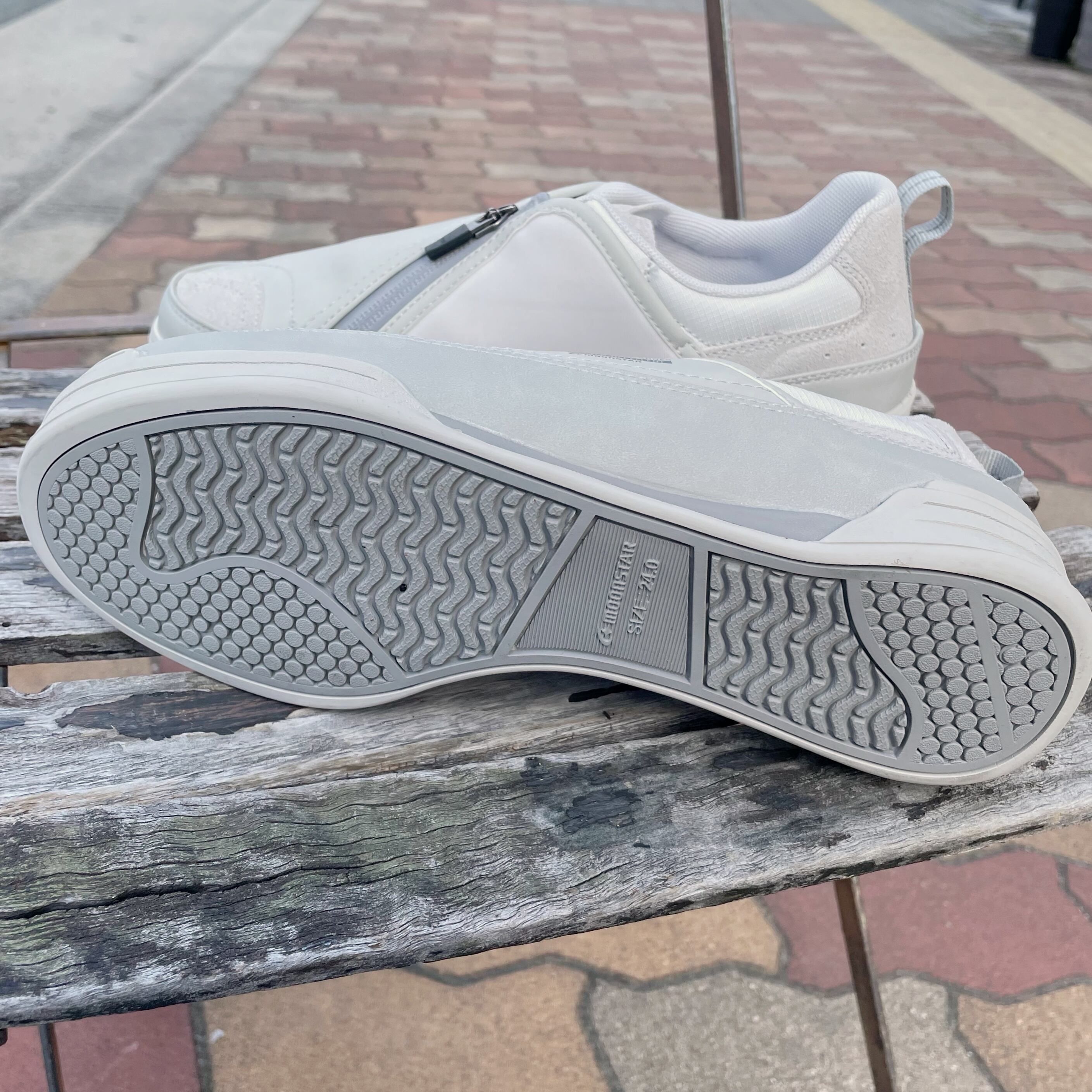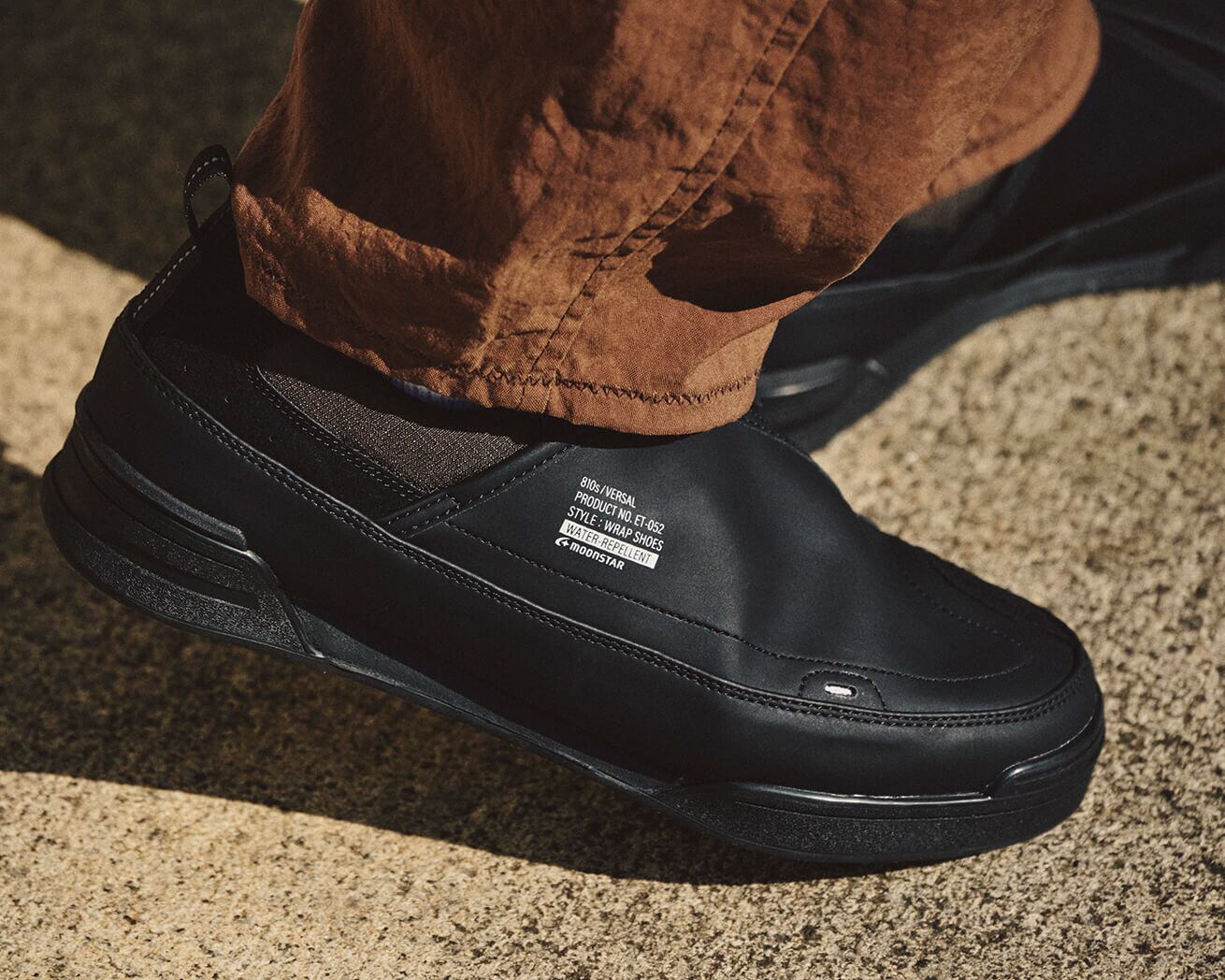 ユニバーサルデザインの心地良さをデイリーユースに。防水フィルムを用いたアッパーとスムーズな脱ぎ履きを可能にする構造で、日々の動作を快適にサポート。靴内部は通気性の高いメッシュ材で構成されたスリッポン構造で、足を包み込み適度なフィット感を実現。薄型ながら優れたクッション性を備えたソールユニットが足裏への負担を軽減し、軽快で快適な履き心地を提供。機能性をミニマルにまとめたジッパータイプ。*4cm4時間の防水設計