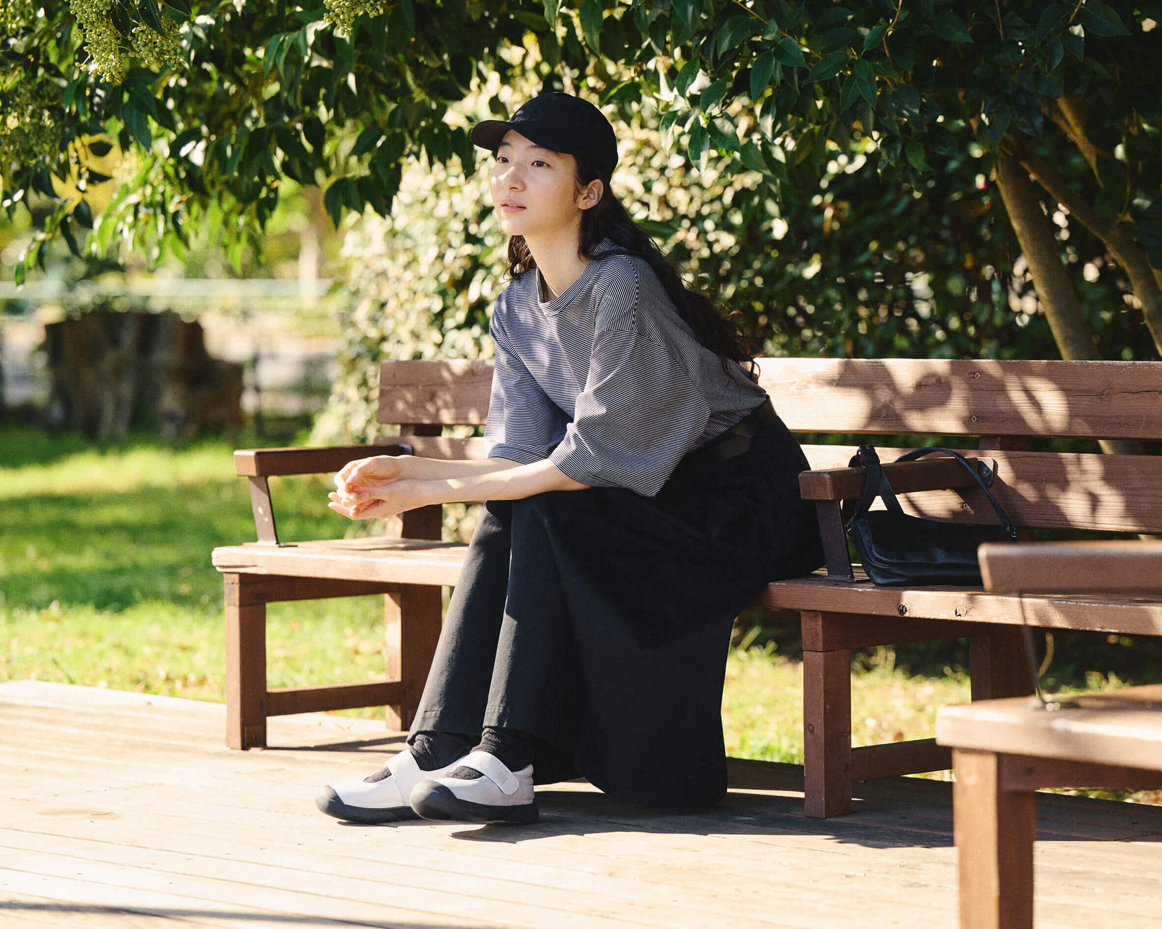 学生用の上履きをデイリーユースに。着用時のホールド感を考慮し、フィッティングベルトを搭載。ソールは床に色や跡が残るのを防ぐノンマーキング仕様。クッション性とグリップ性にも配慮した室内/屋外兼用のワンストラップタイプ。