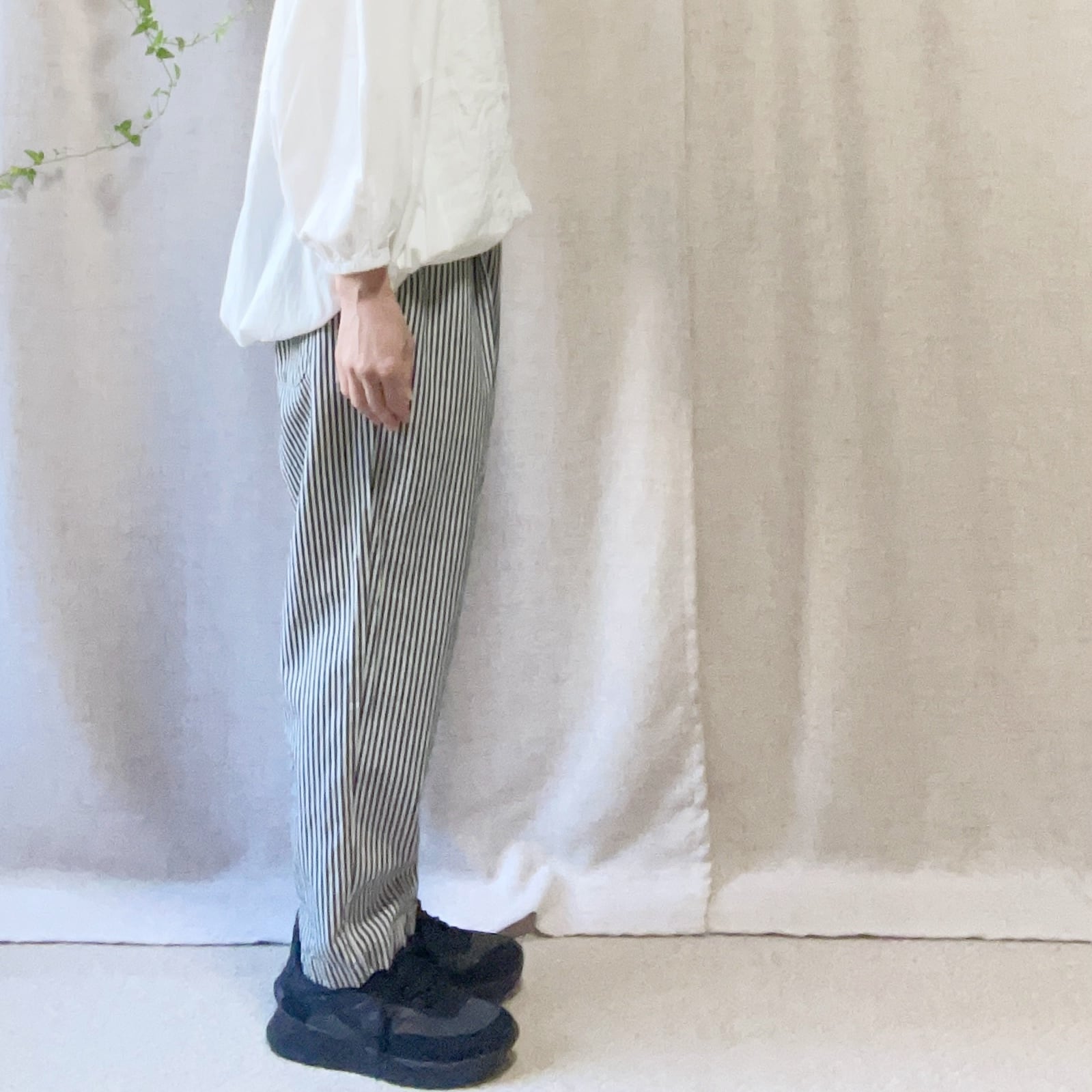 腰回りがすっきりと見えるワンタック仕様です。