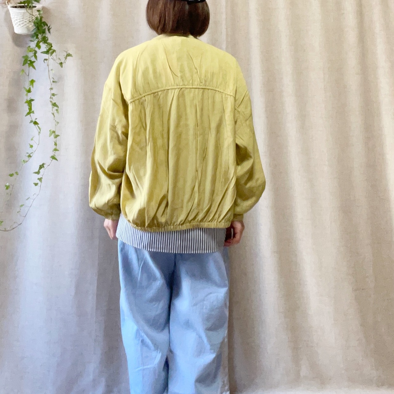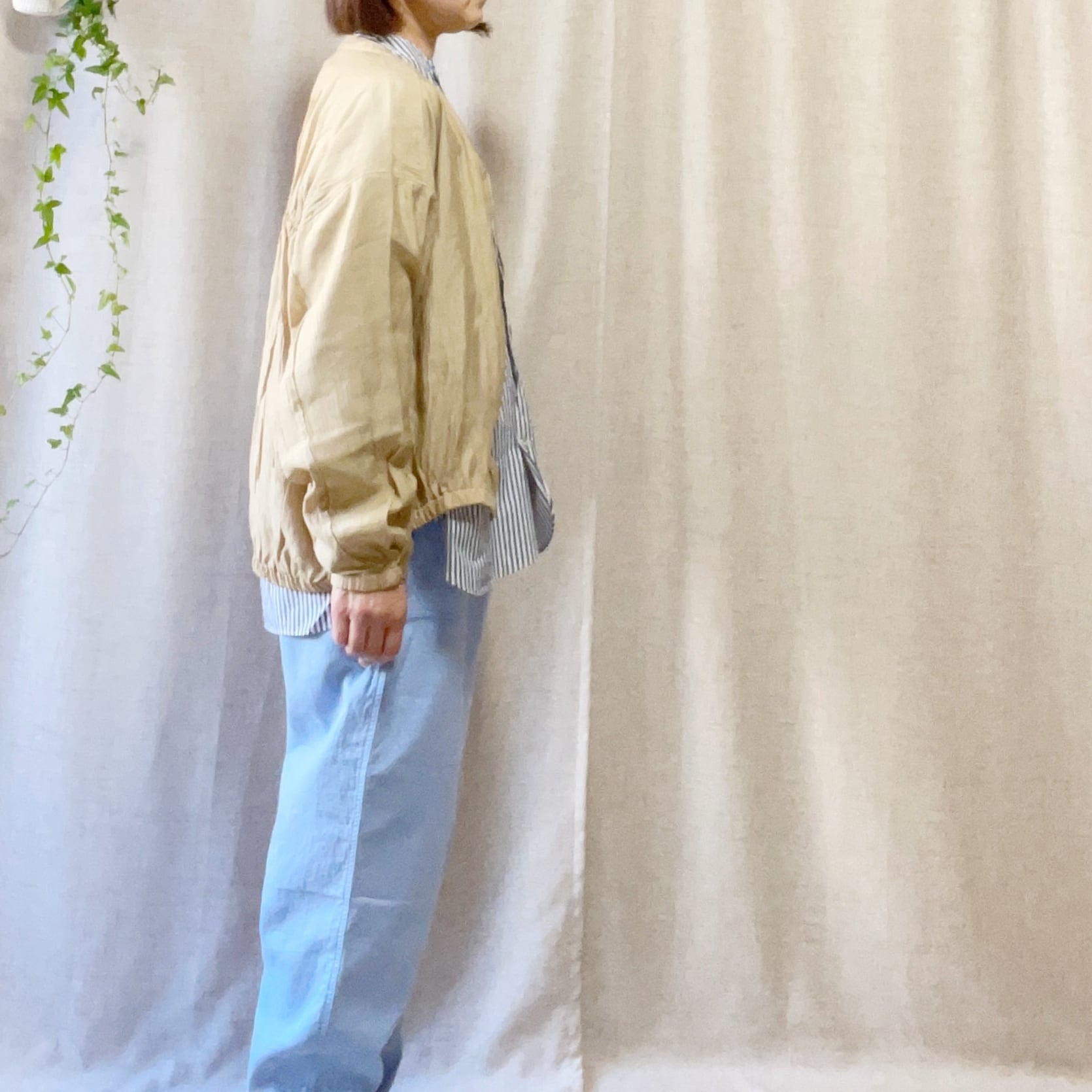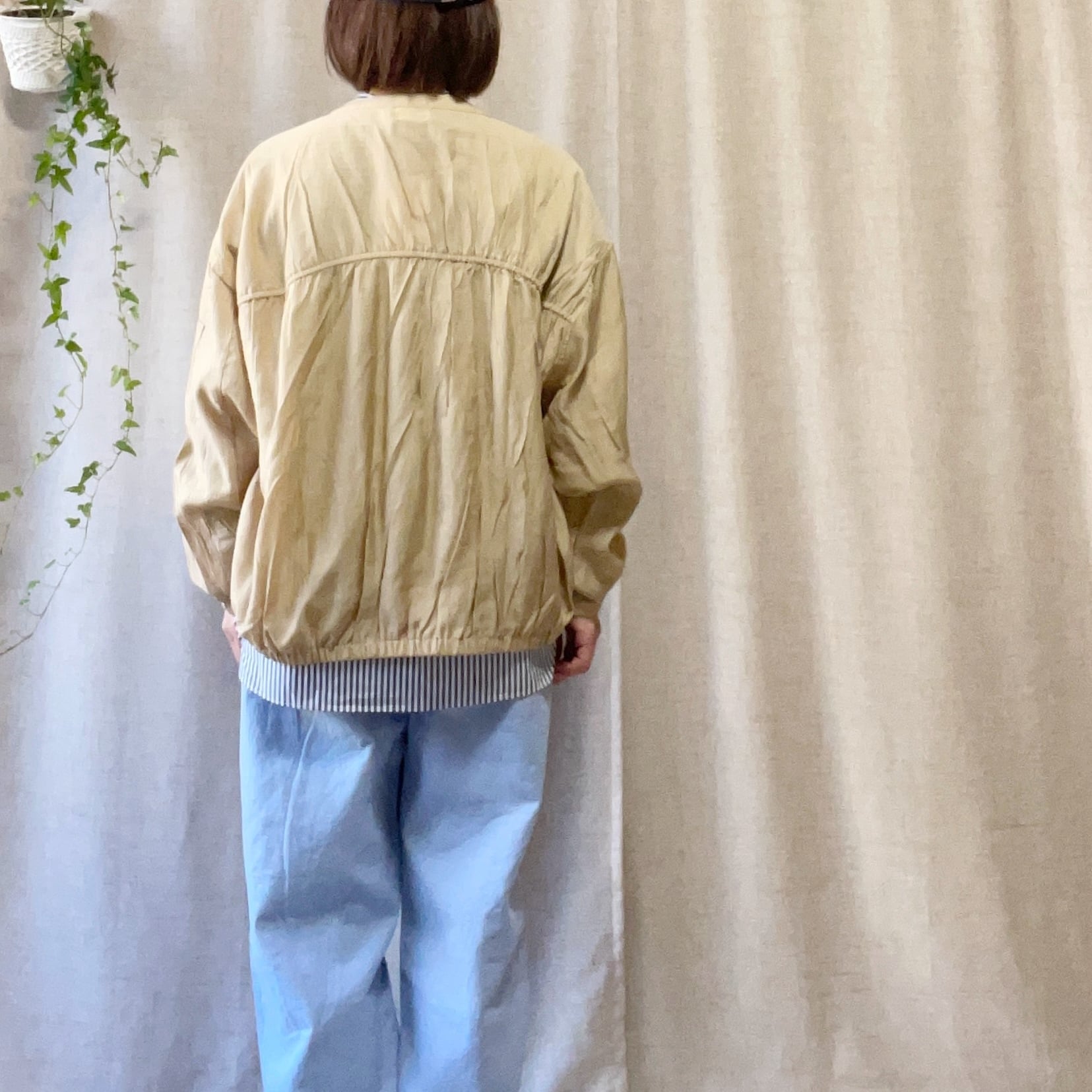 カジュアルにもきれいめにも合わせやすい、着回し力の高いライトアウターです。