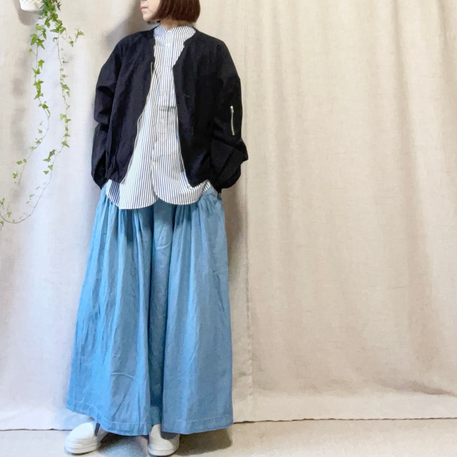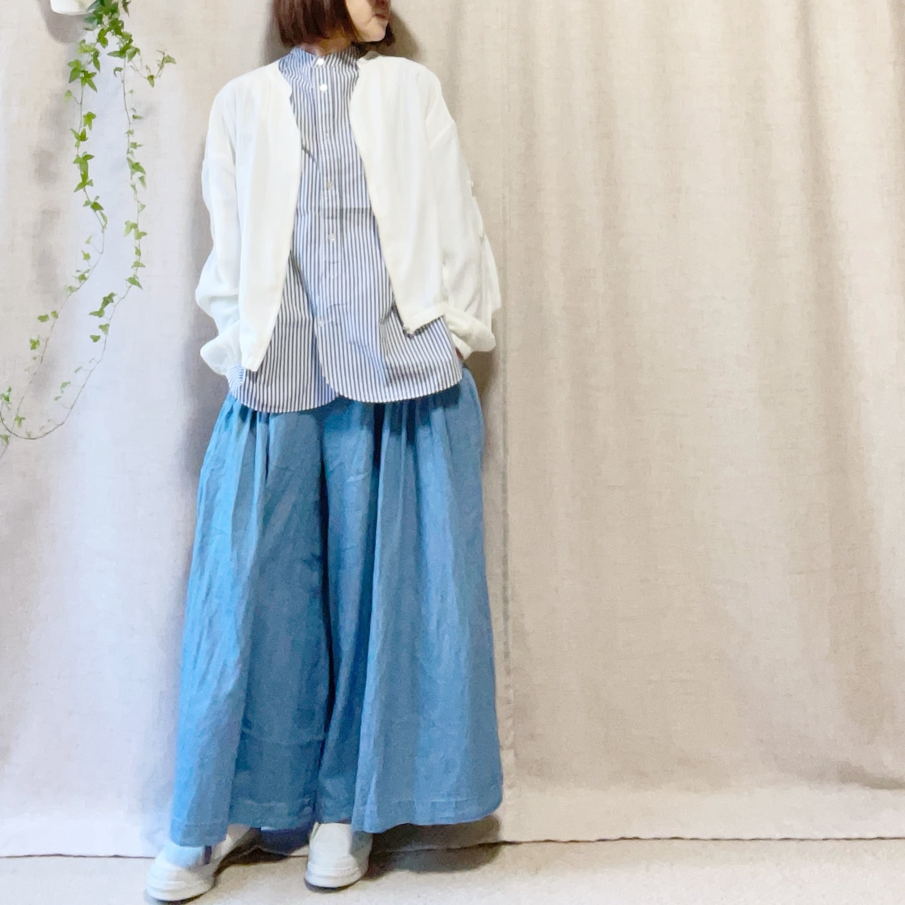 レーヨン混ならではの落ち感と、上品な透け感が大人のスタイリングに馴染みます。