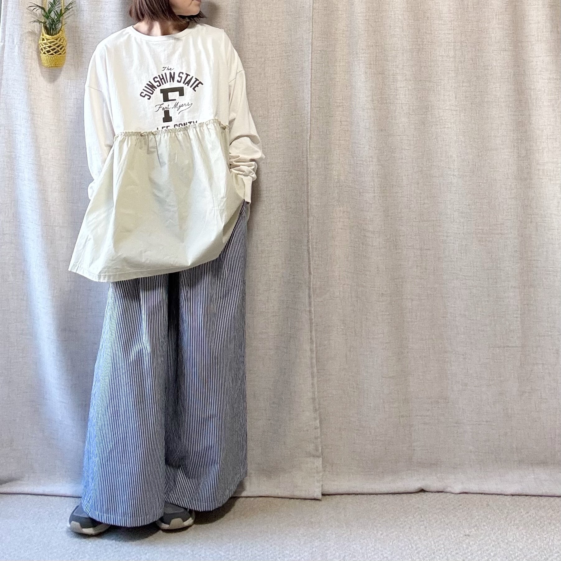 一枚でコーディネートが決まる、+Arinomamaらしいカジュアルデザイントップスです。